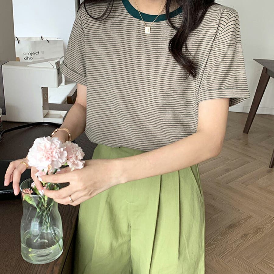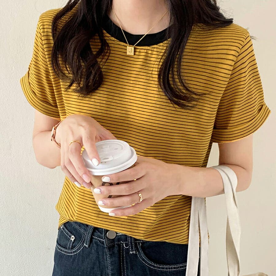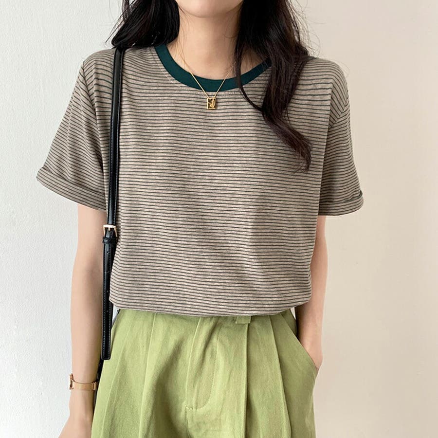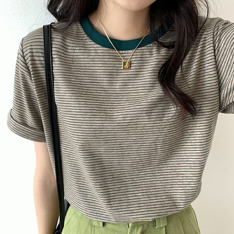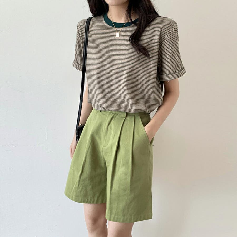 韓国風 シャツ カジュアル 夏ファッション おしゃれ 可愛い シンプル スポーティ 大人 重ね着 ママコーデ 緑 黒 黄 春服 夏服 秋服 春 夏 秋