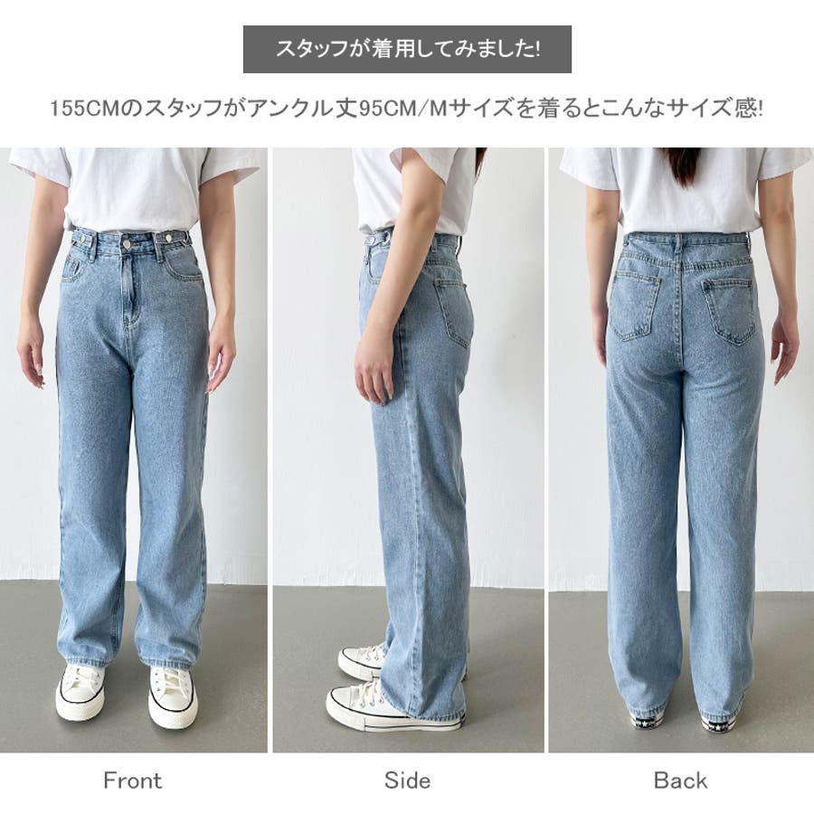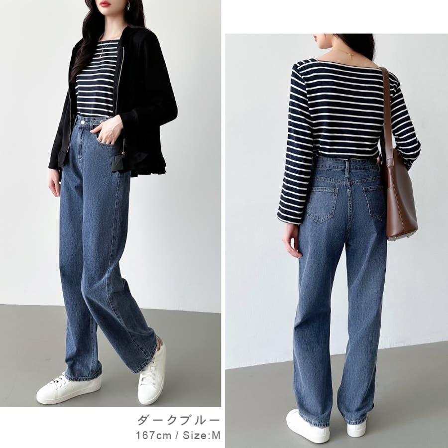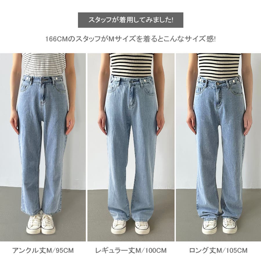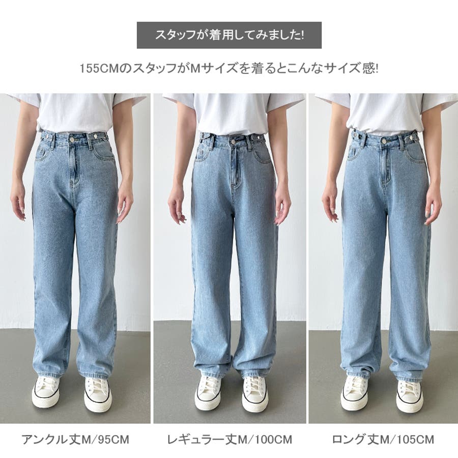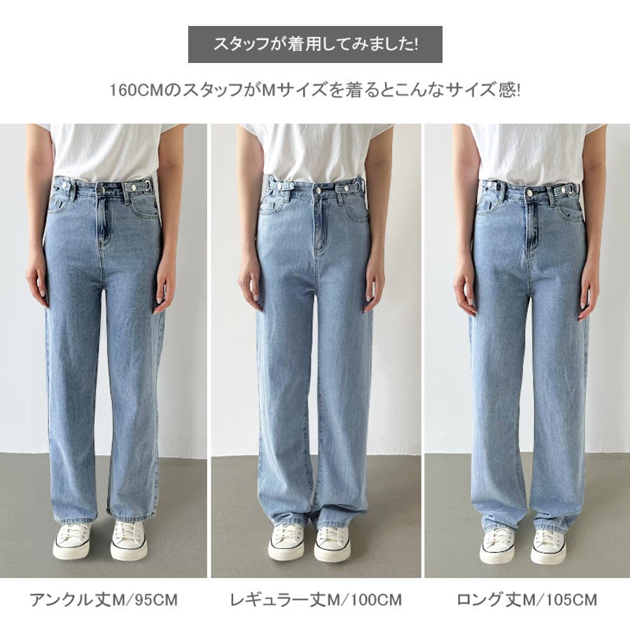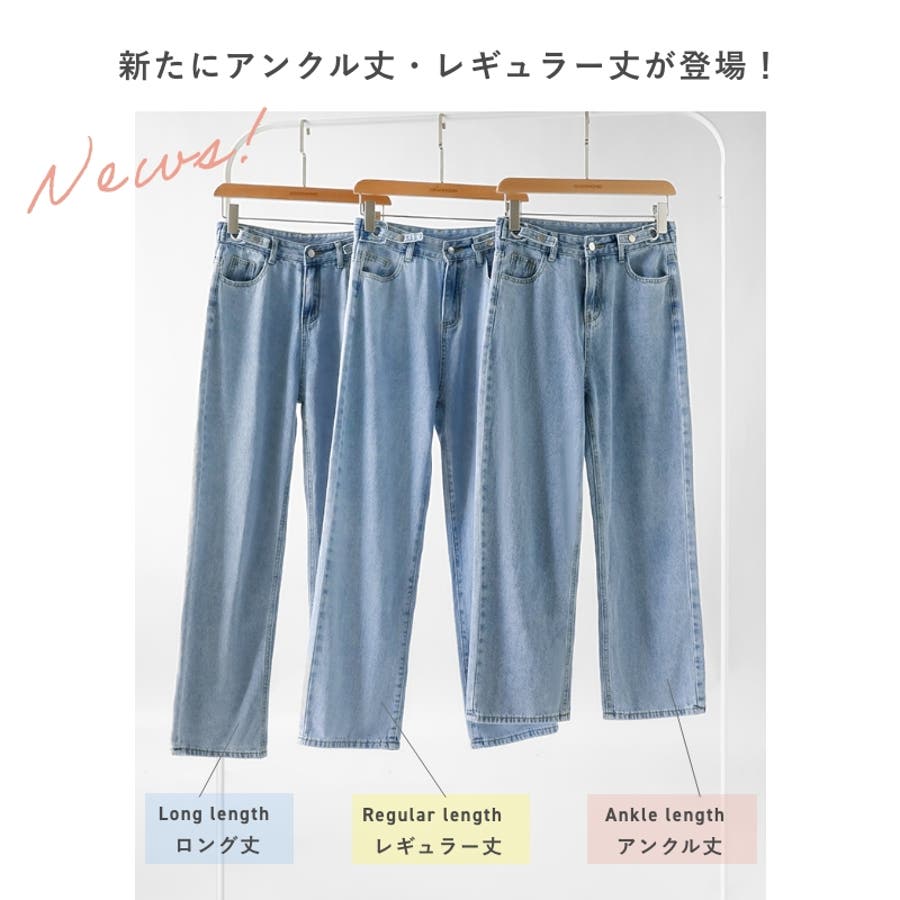 \\NEW!// XS S M L XL 5つのサイズ展開に加え、 アンクル丈、レギュラー丈、ロング丈の 選べる3つの長さから好みが選べる! 広がり過ぎず、 ゆったりセミワイドな ストレートデニムパンツ。 ウエスト調整できる ボタン付きで 機能性も抜群! シンプルで幅広いコーデに 合わせやすいおすすめジーンズです。