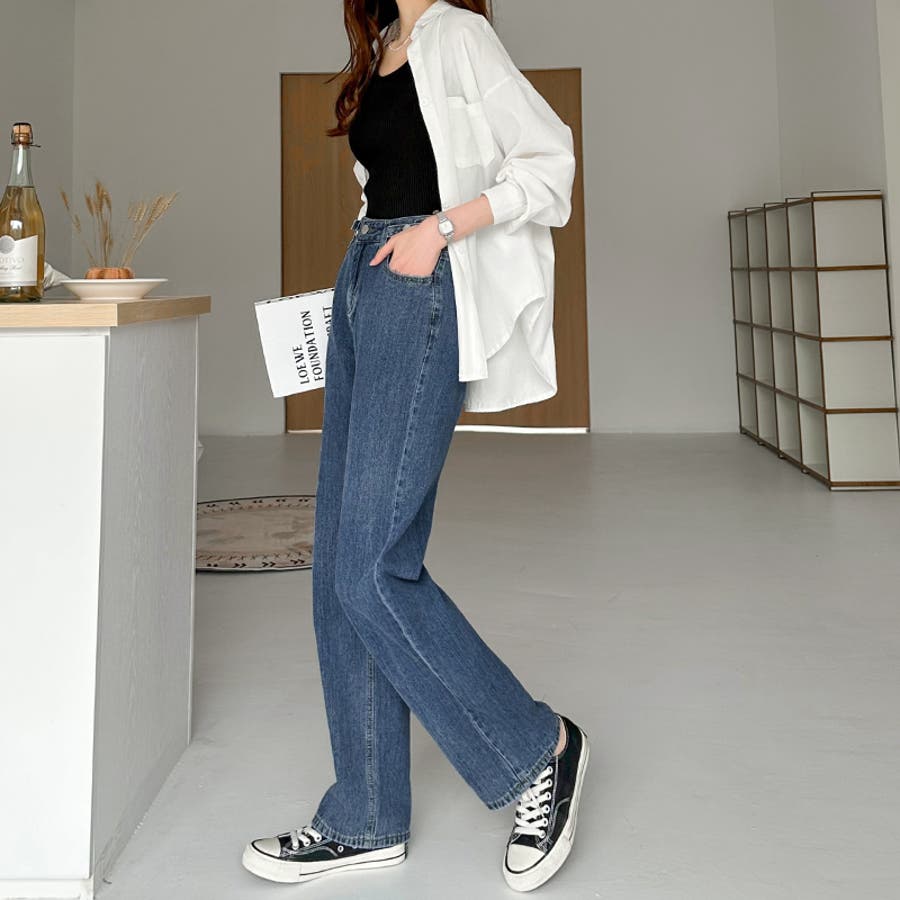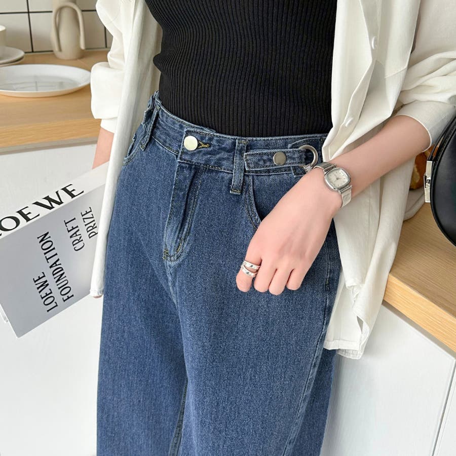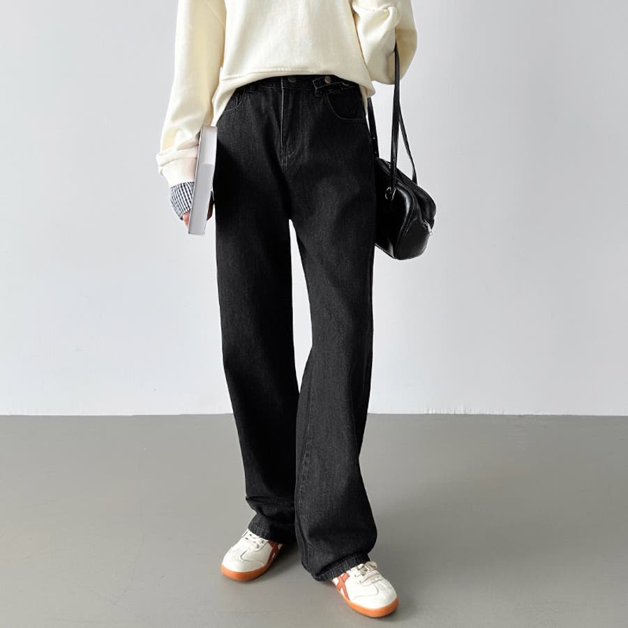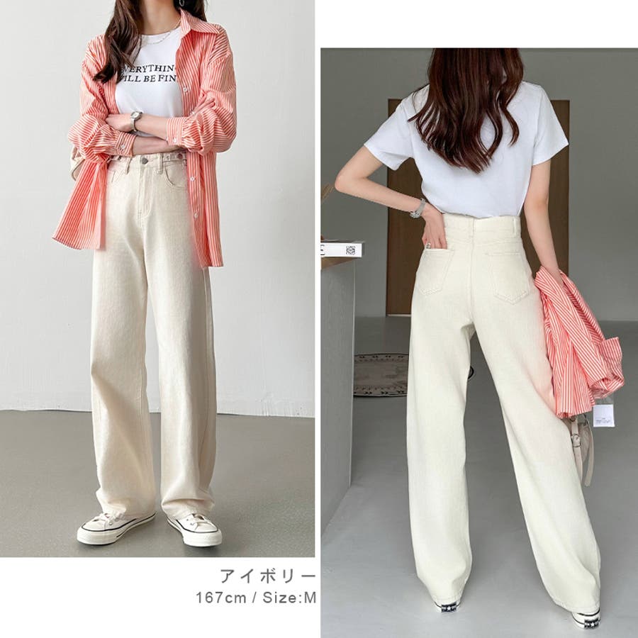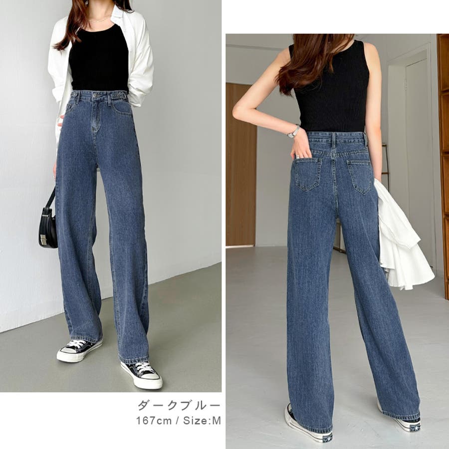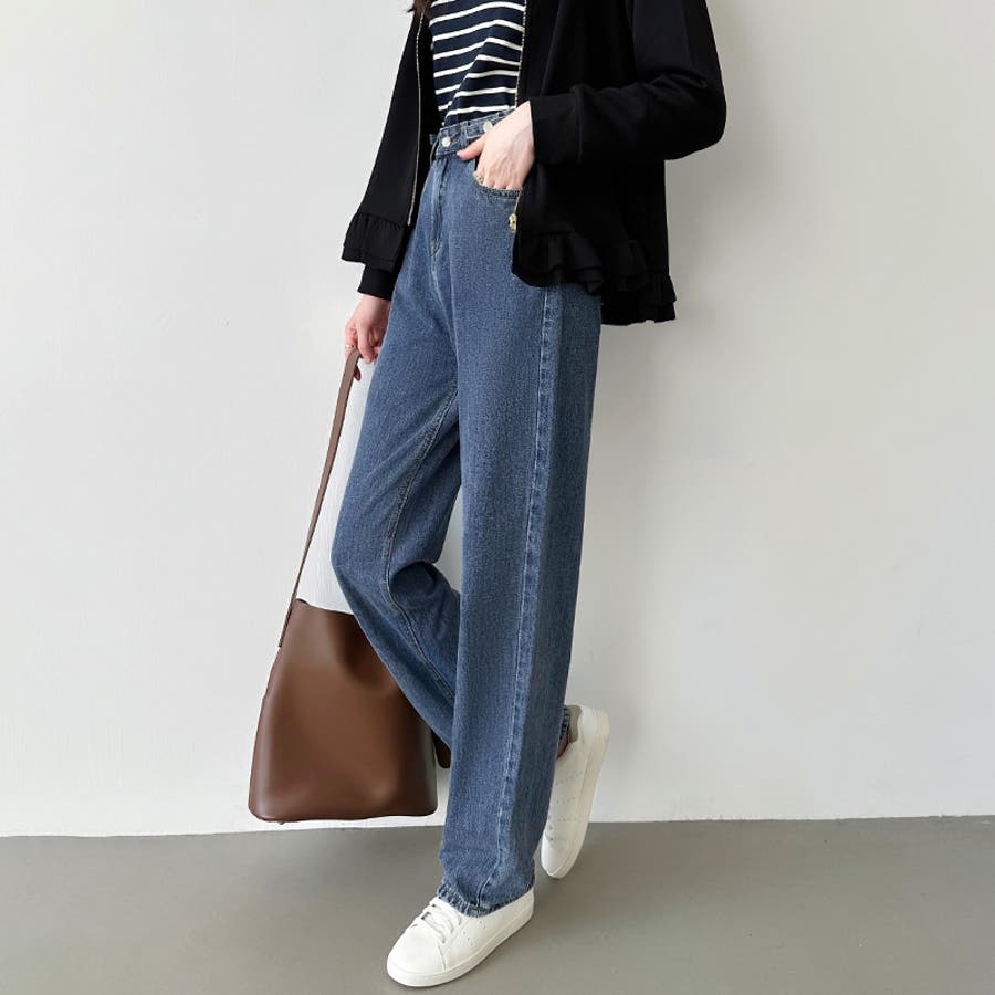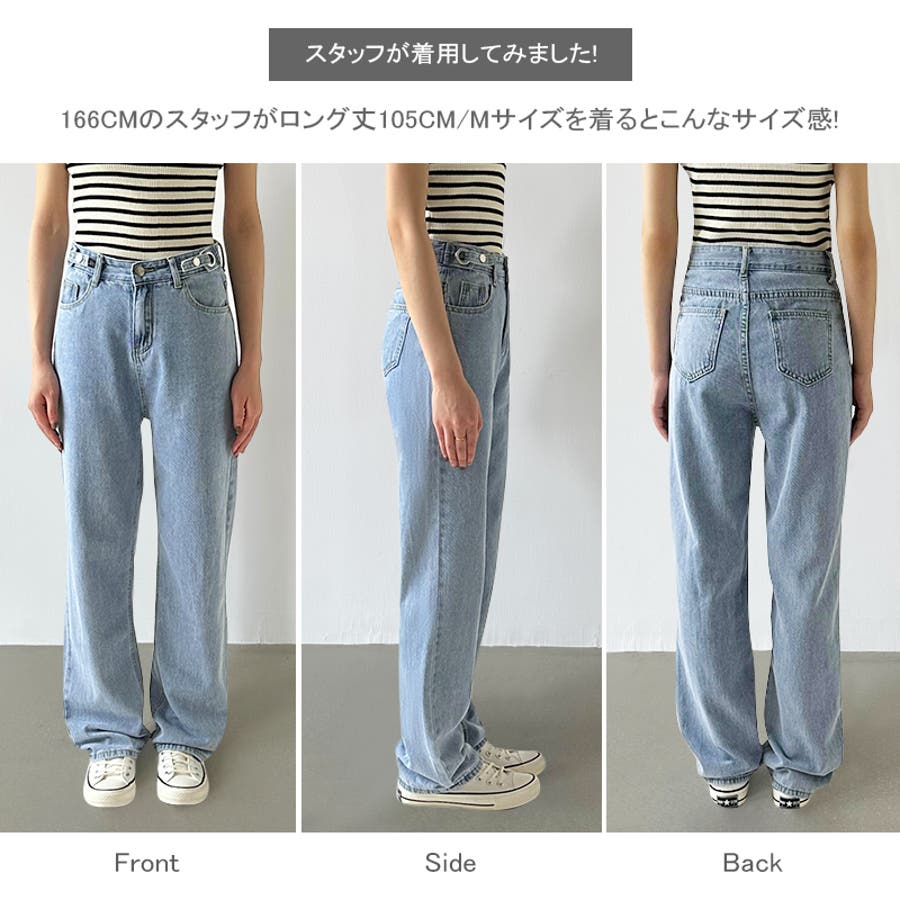 \\NEW!// XS S M L XL 5つのサイズ展開に加え、 アンクル丈、レギュラー丈、ロング丈の 選べる3つの長さから好みが選べる! 広がり過ぎず、 ゆったりセミワイドな ストレートデニムパンツ。 ウエスト調整できる ボタン付きで 機能性も抜群! シンプルで幅広いコーデに 合わせやすいおすすめジーンズです。