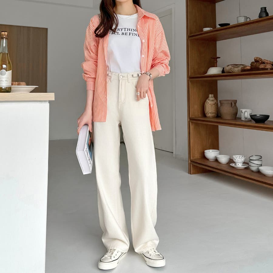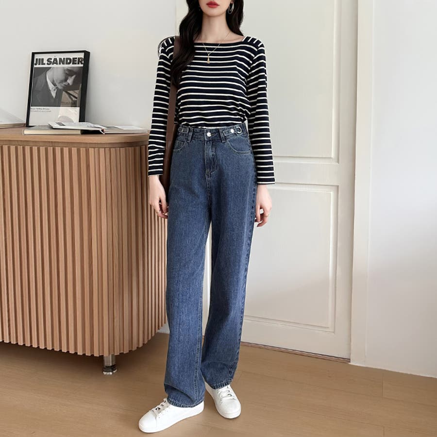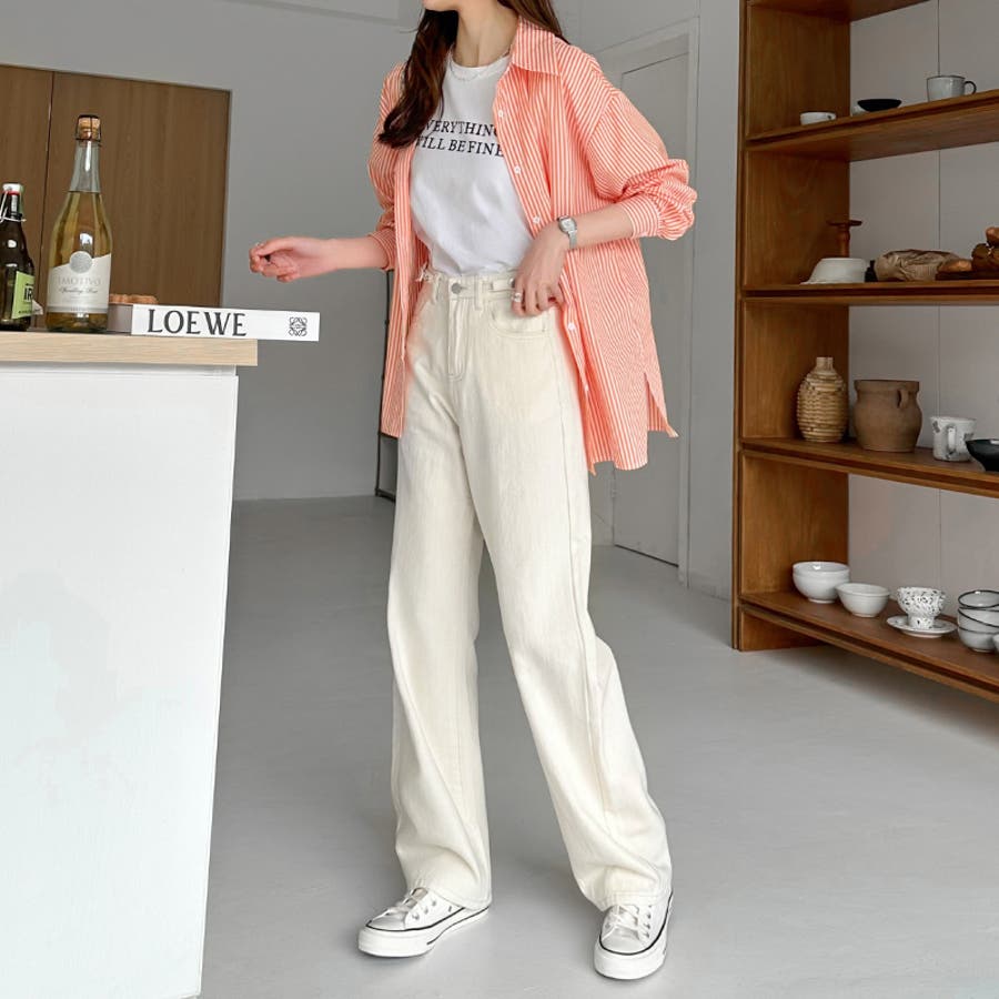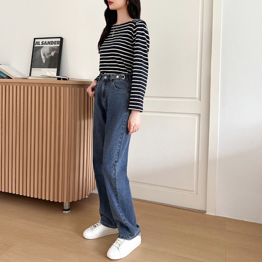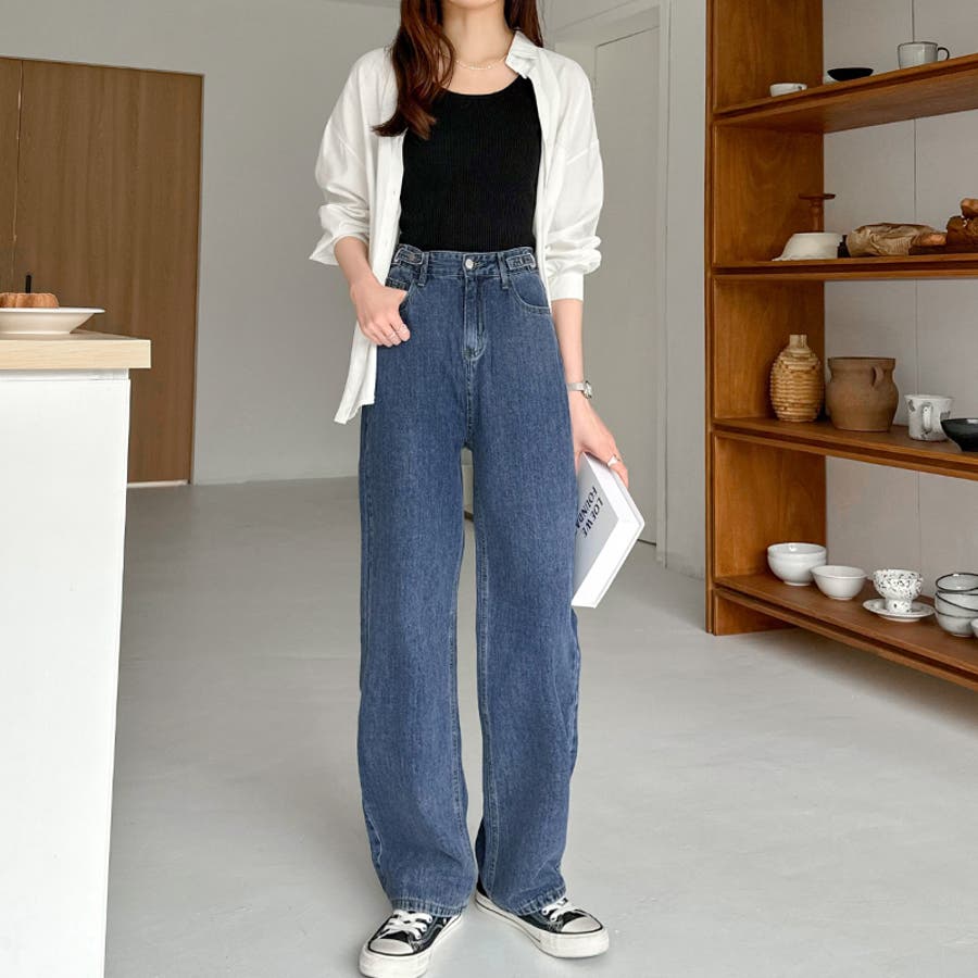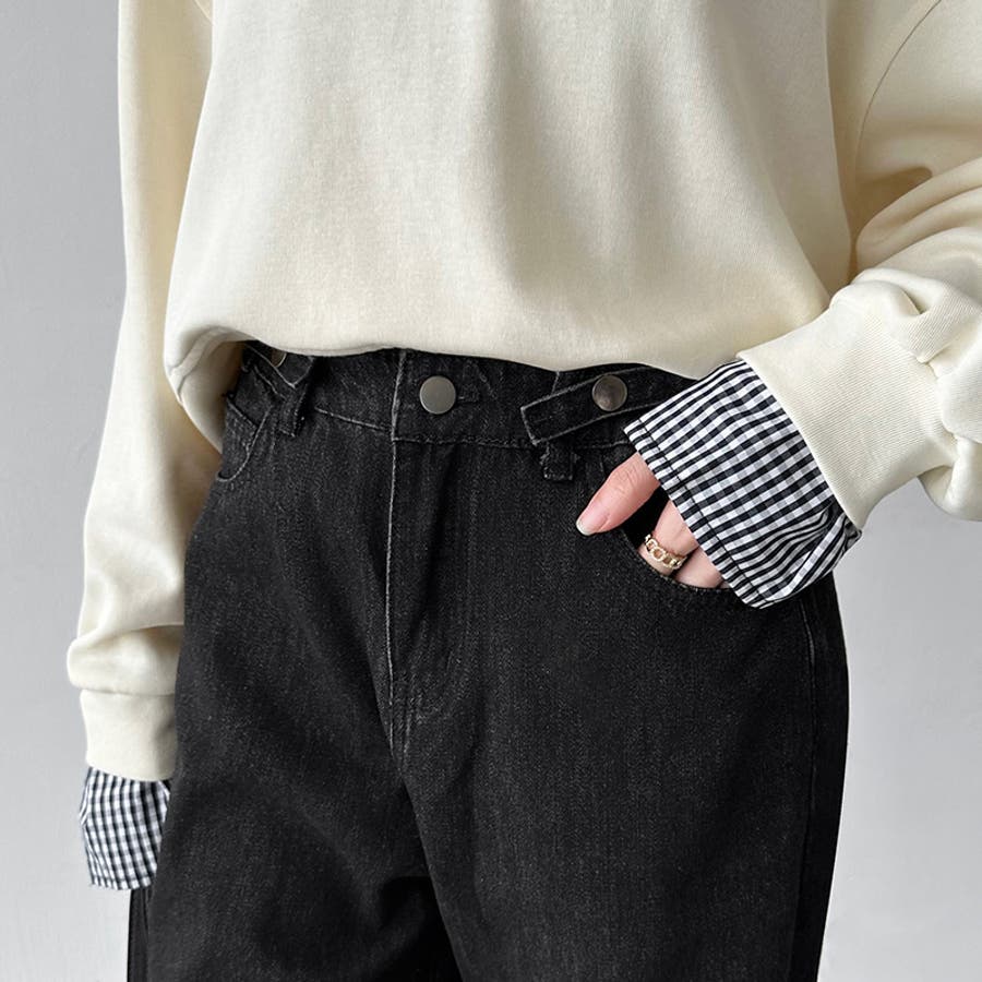 \\NEW!// XS S M L XL 5つのサイズ展開に加え、 アンクル丈、レギュラー丈、ロング丈の 選べる3つの長さから好みが選べる! 広がり過ぎず、 ゆったりセミワイドな ストレートデニムパンツ。 ウエスト調整できる ボタン付きで 機能性も抜群! シンプルで幅広いコーデに 合わせやすいおすすめジーンズです。