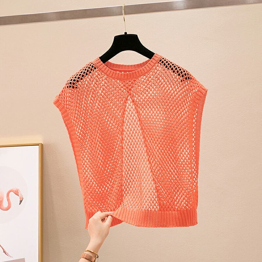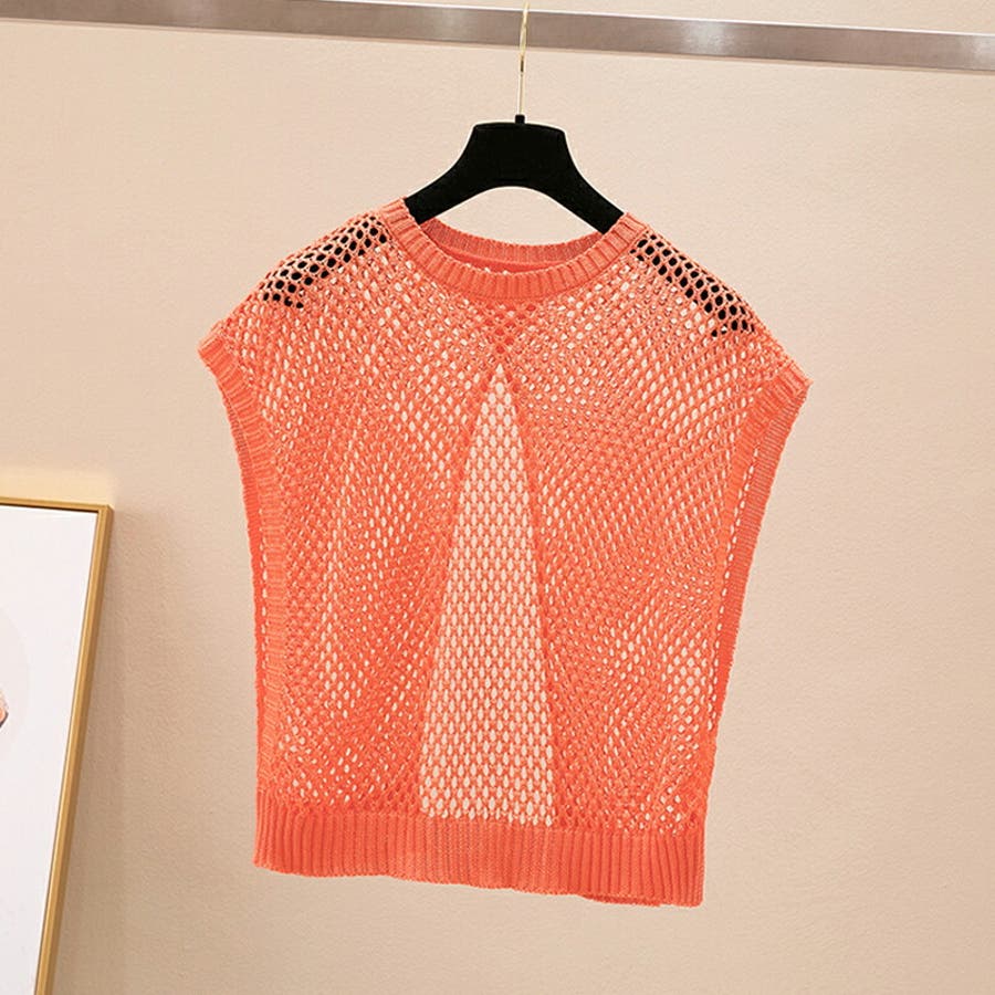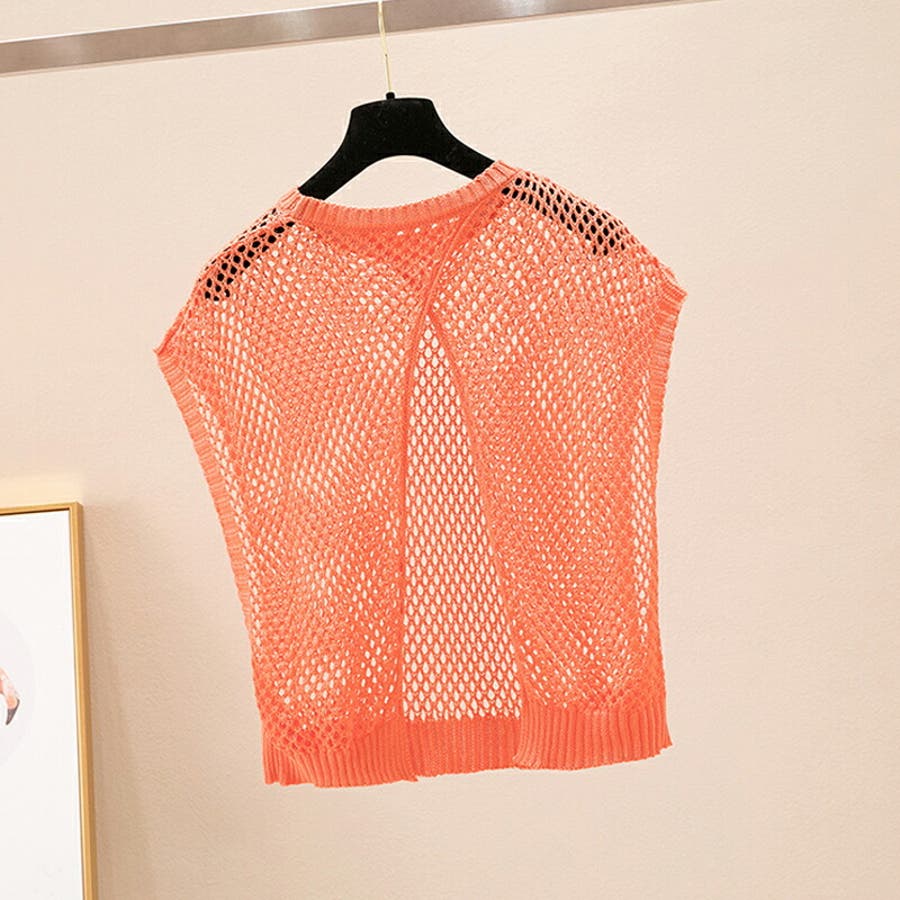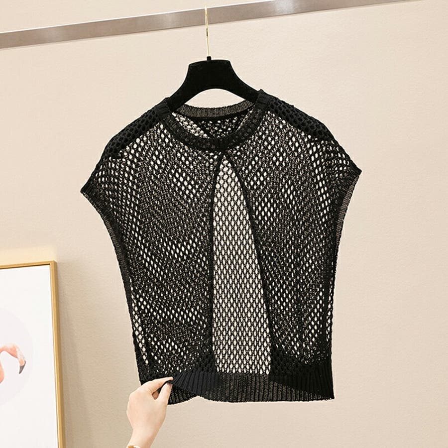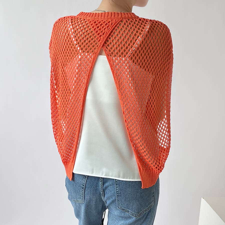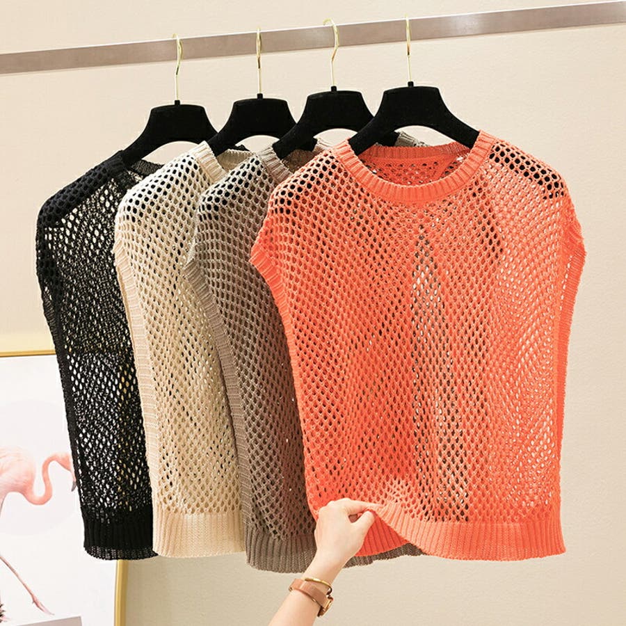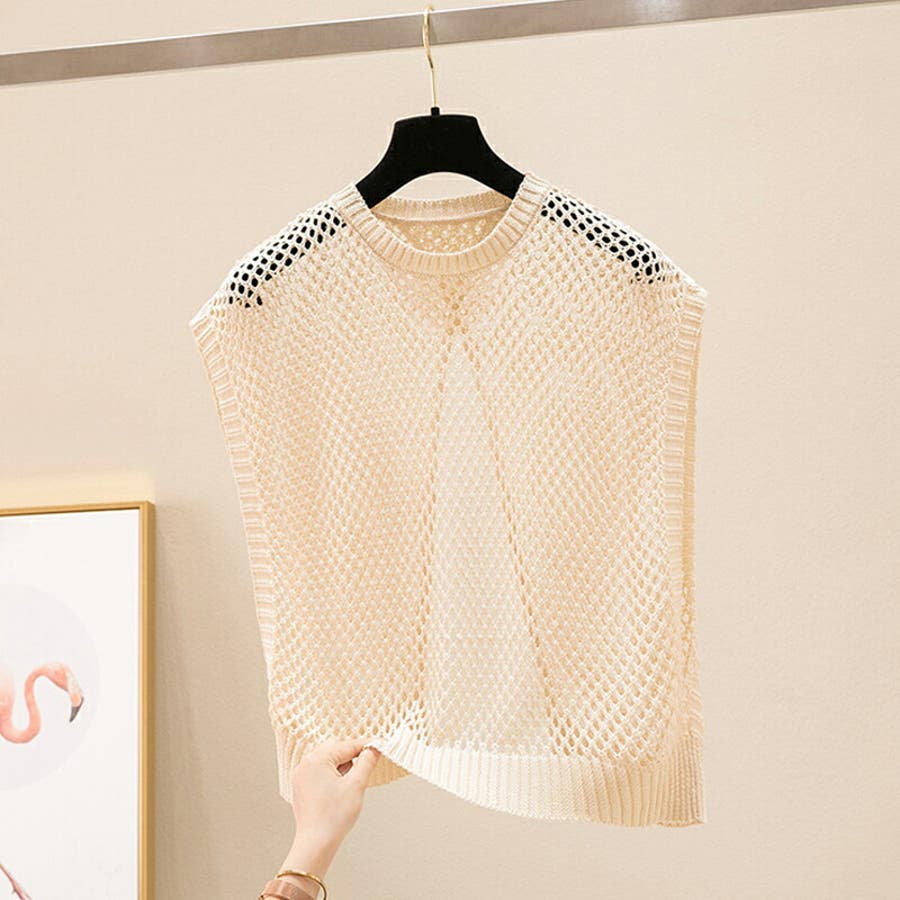 ノースリーブ 透かし編みバックスリットトップス 2wayメッシュニットベスト