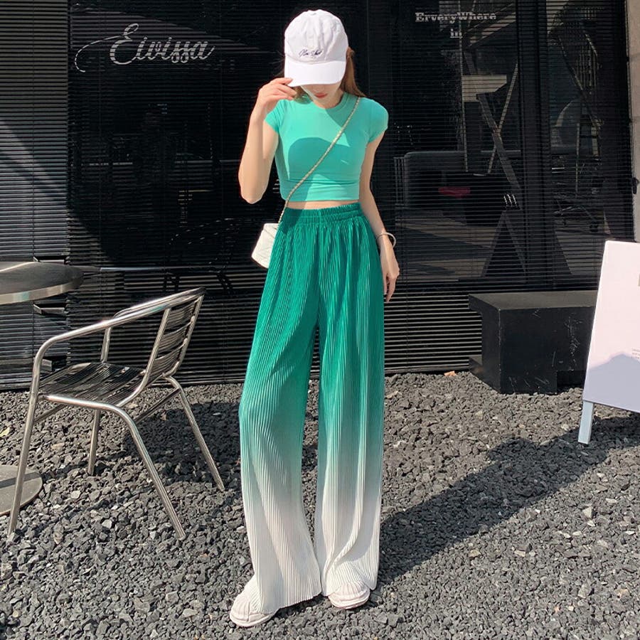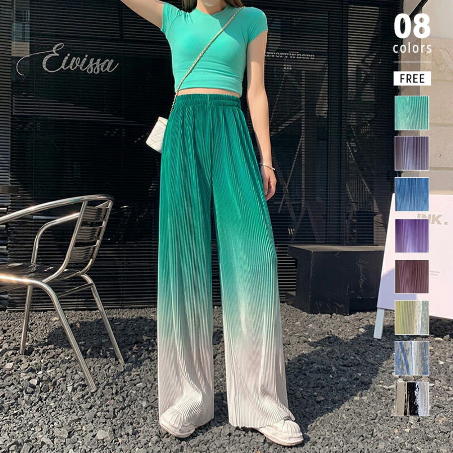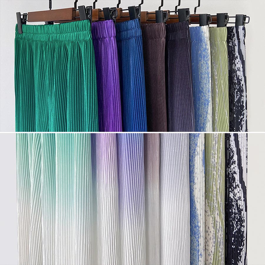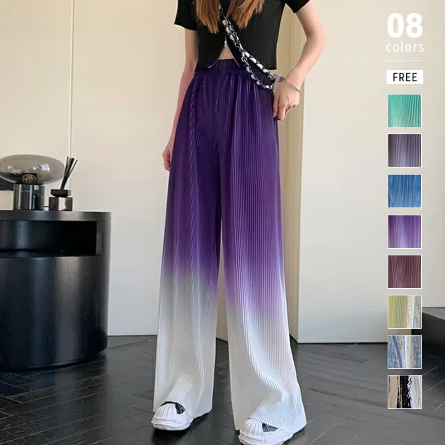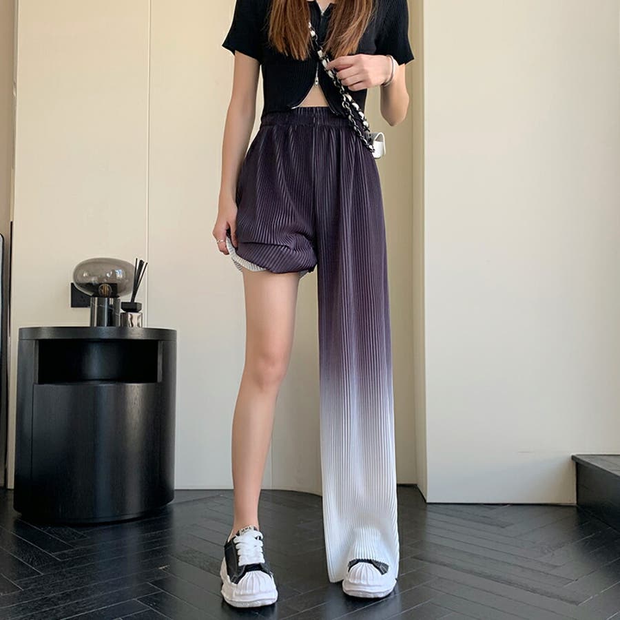 ボトムス ワイドパンツ グラデーションパンツ ストレートパンツ パンツ ズボン レディース ロングパンツ プリーツ ハイウエスト