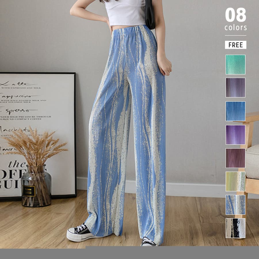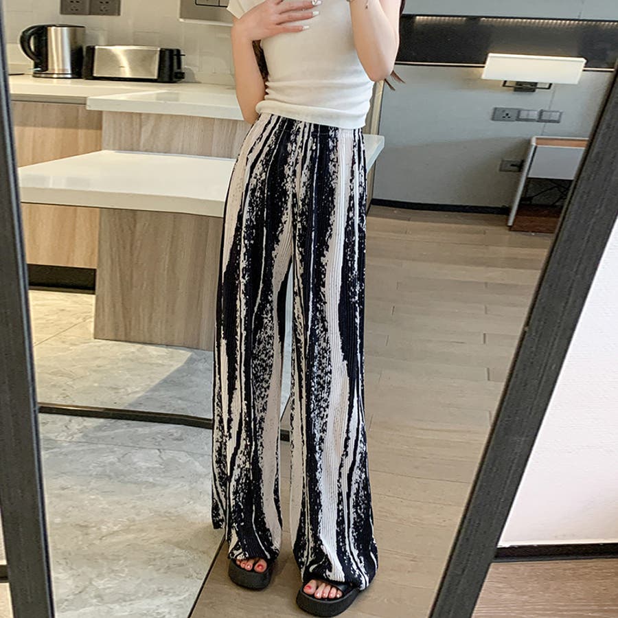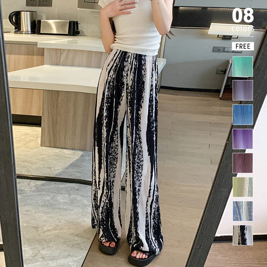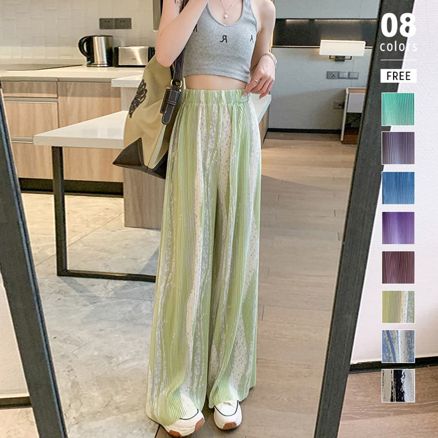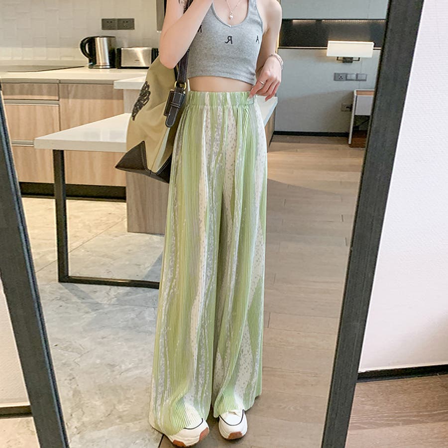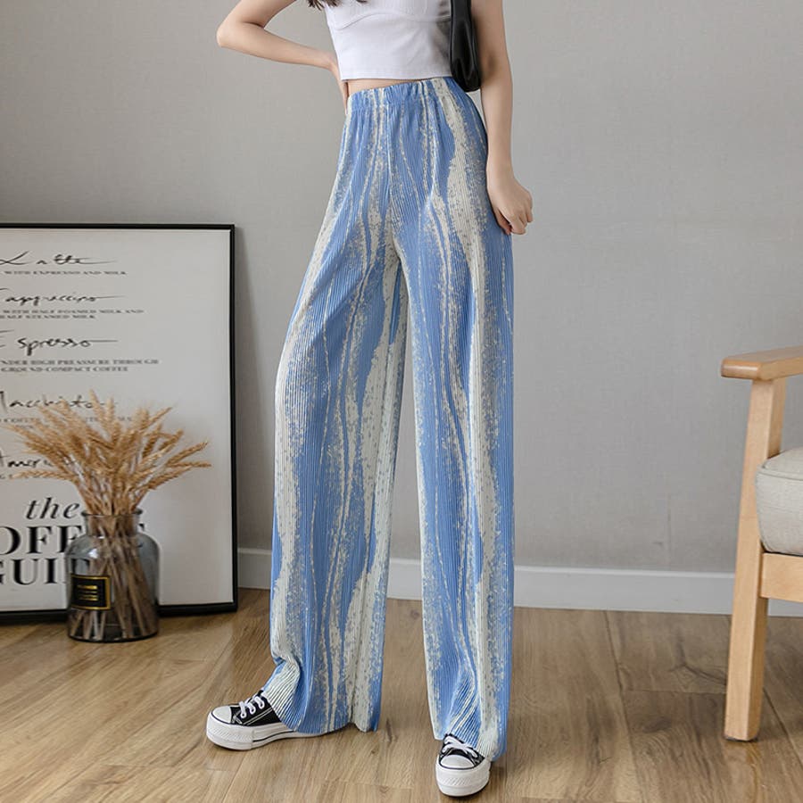 ボトムス ワイドパンツ グラデーションパンツ ストレートパンツ パンツ ズボン レディース ロングパンツ プリーツ ハイウエスト