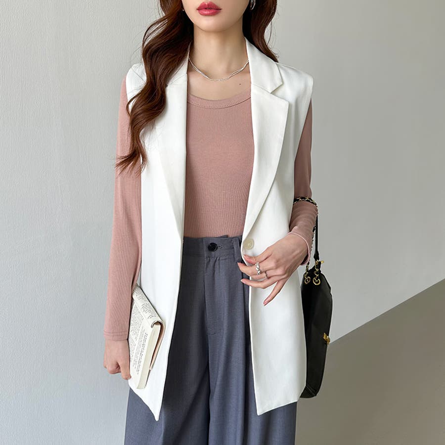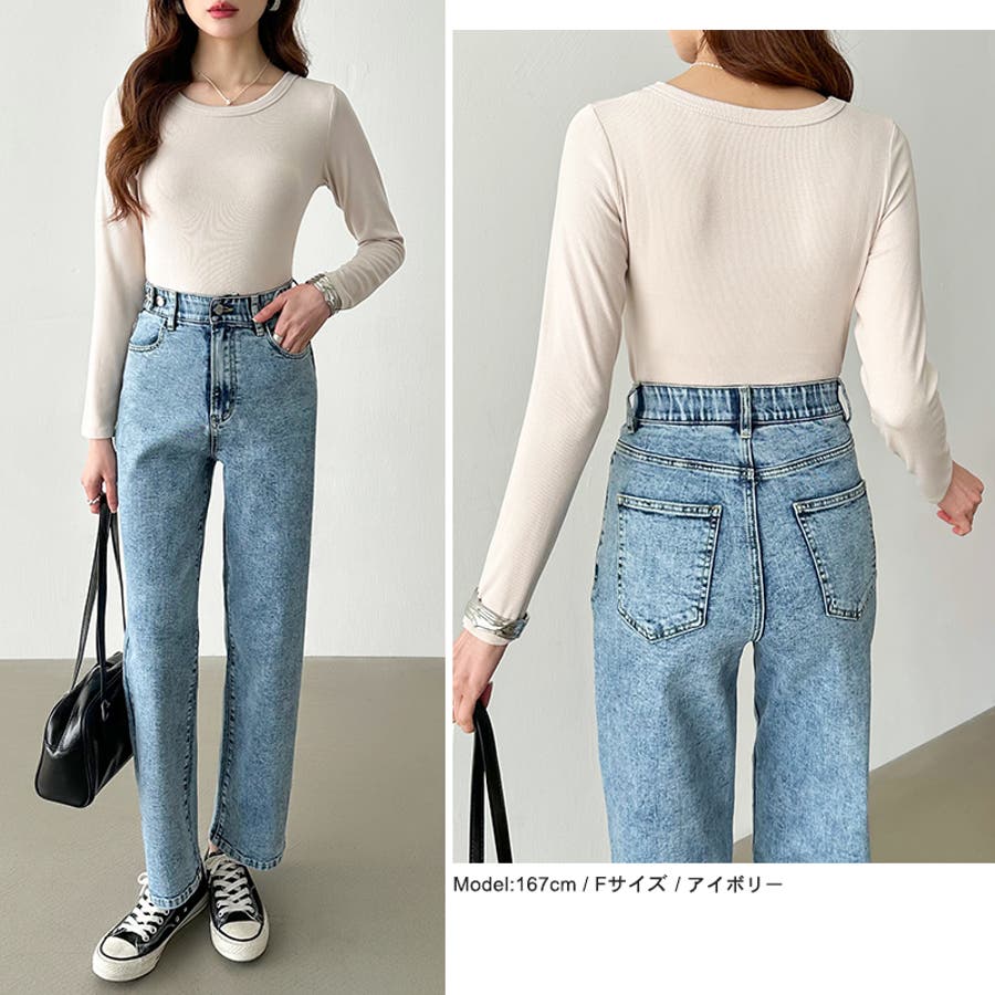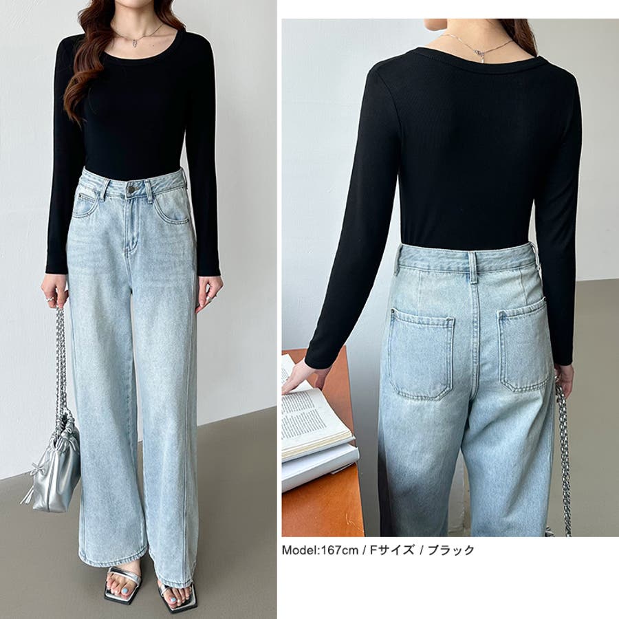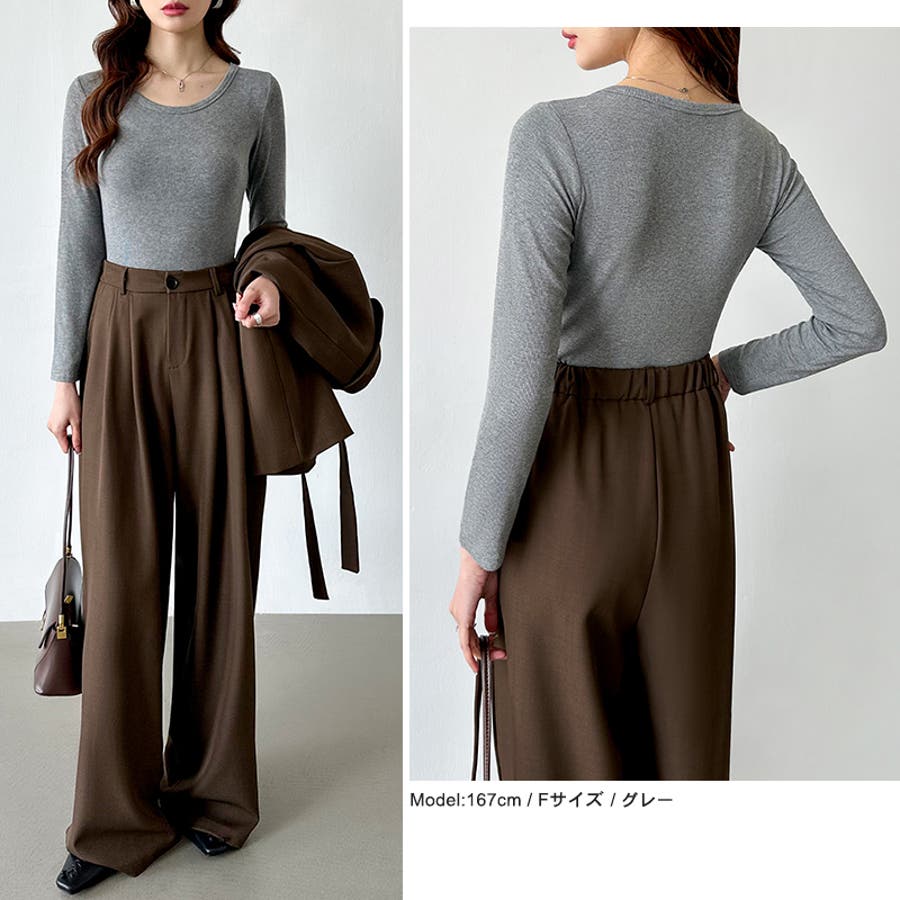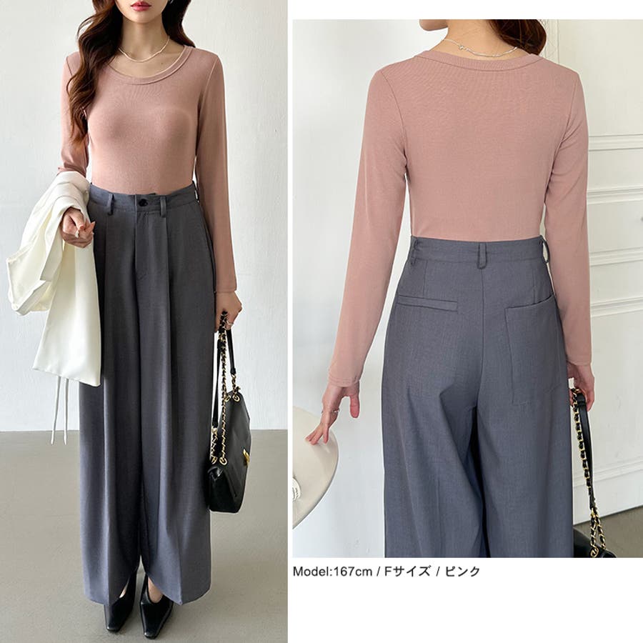 ピタッと感や首の開き具合が絶妙で可愛いです!シンプルなので何にでも合わせやすそう!ただ丈がもう少し長さあった方がよかったかも。
