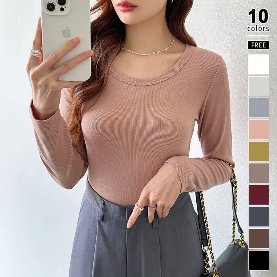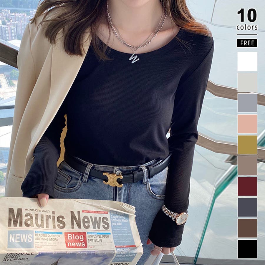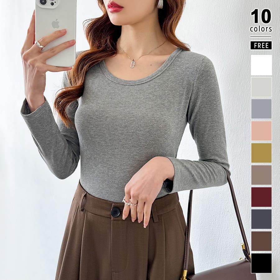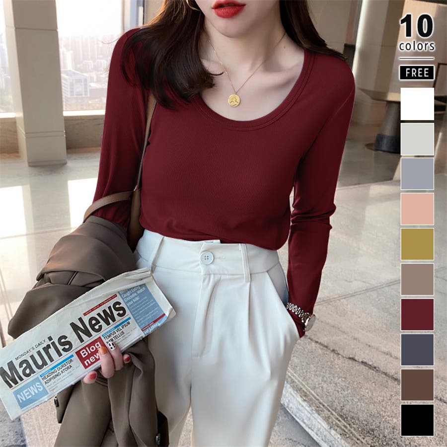 ロンT 長袖Tシャツ ロングTシャツ 長袖 トップス カットソー レディース スリムフィット ラウンドネック クルーネック セクシー タイト スリム 秋冬 長袖Tシャツ カジュアル かわいい 大人 シンプル 無地 おしゃれ インナー 春服 秋服 冬服 春 秋 冬 韓国 韓国ファッション 10代 20代 30代 40代 50代 cocomomo ココモモ 秋冬 トップス ロングtシャツ ロンt 長袖トップス ベーシック 定番 重ね 重ね着 レイヤード 着回し 着まわし ブラウン 茶色 ホワイト 白 グレー 灰色 アイボリー ブラック 黒 ピンク ワイン 赤 イエローグリーン ダークグレー グレージュ