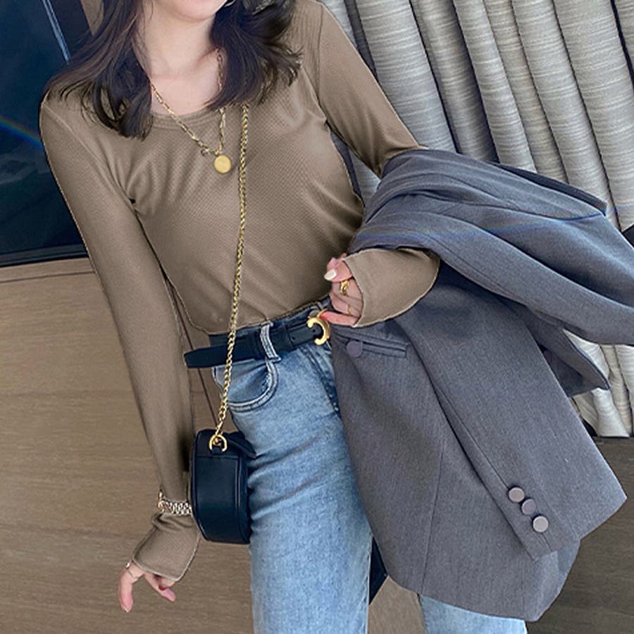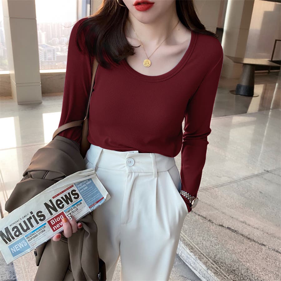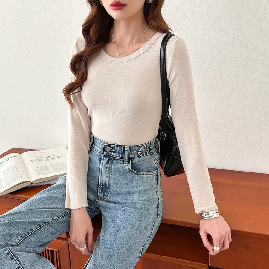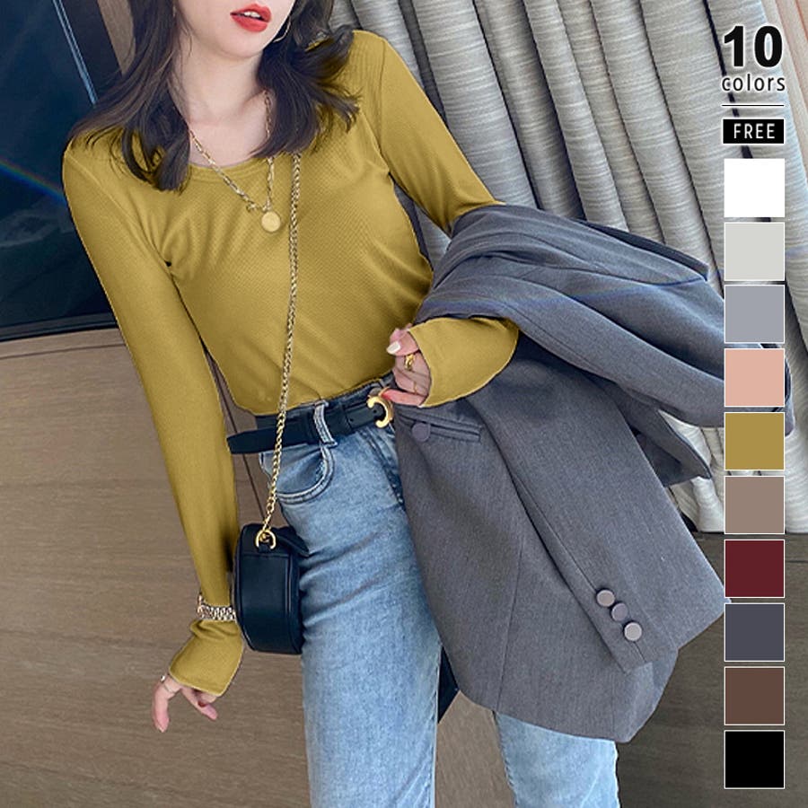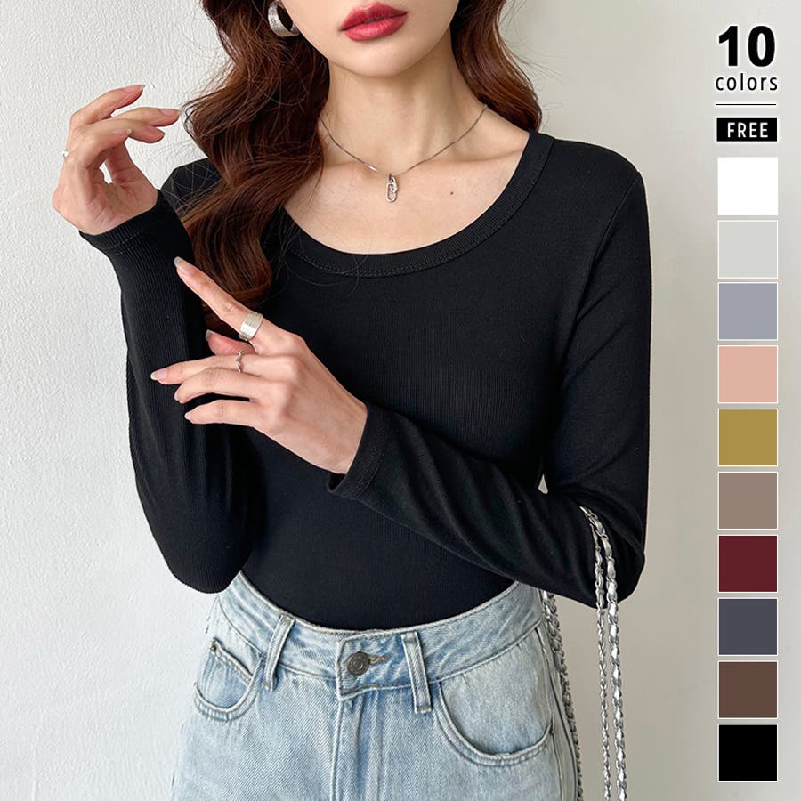 ロンT 長袖Tシャツ ロングTシャツ 長袖 トップス カットソー レディース スリムフィット ラウンドネック クルーネック セクシー タイト スリム 秋冬 長袖Tシャツ カジュアル かわいい 大人 シンプル 無地 おしゃれ インナー 春服 秋服 冬服 春 秋 冬 韓国 韓国ファッション 10代 20代 30代 40代 50代 cocomomo ココモモ 秋冬 トップス ロングtシャツ ロンt 長袖トップス ベーシック 定番 重ね 重ね着 レイヤード 着回し 着まわし ブラウン 茶色 ホワイト 白 グレー 灰色 アイボリー ブラック 黒 ピンク ワイン 赤 イエローグリーン ダークグレー グレージュ