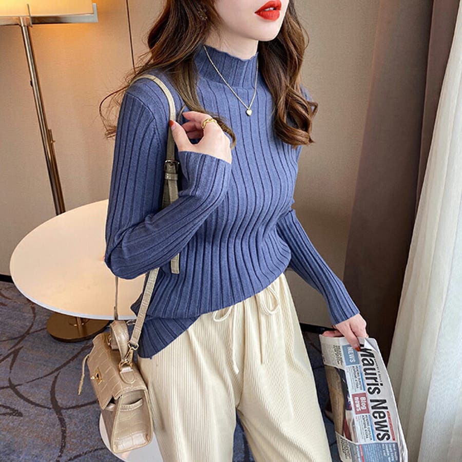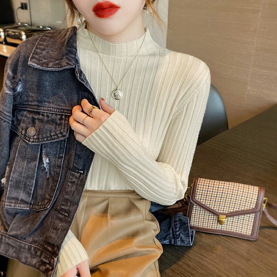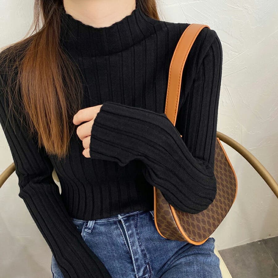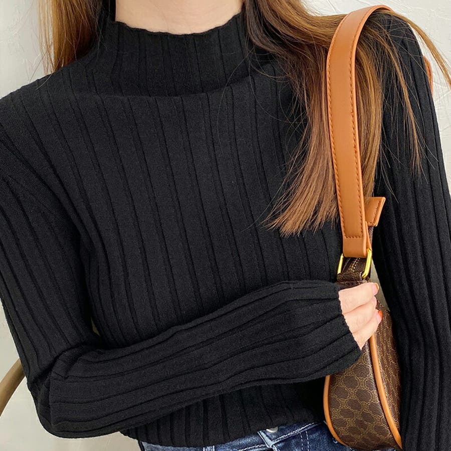 リブニット ハイネック 長袖ニット