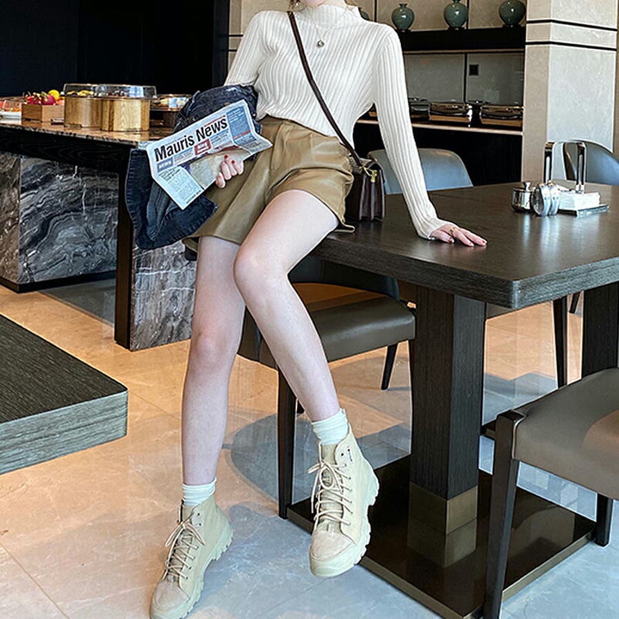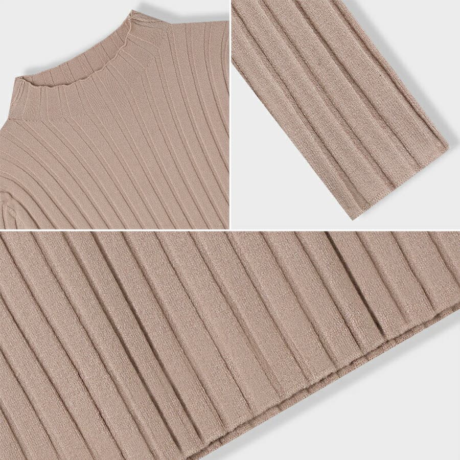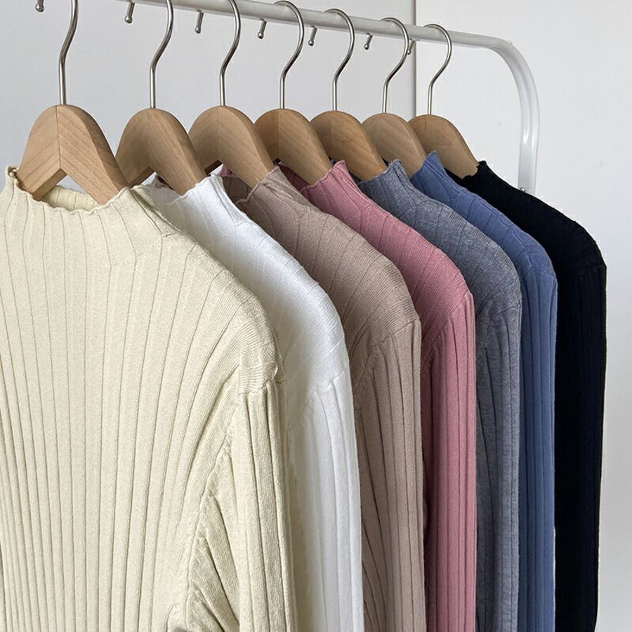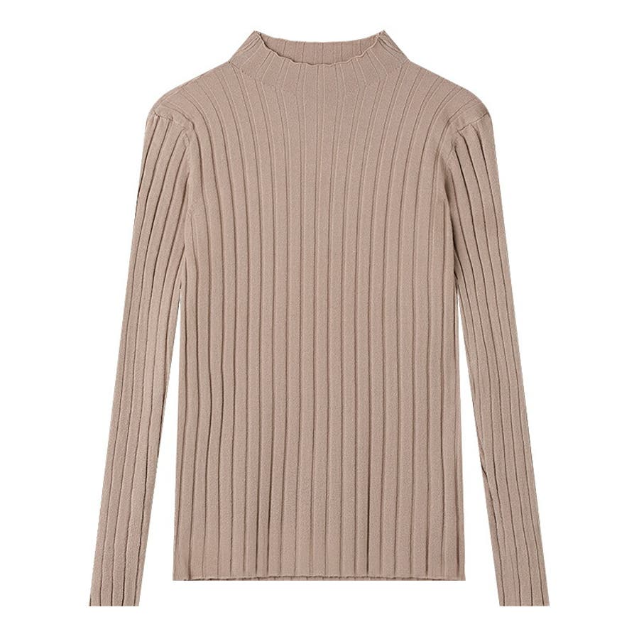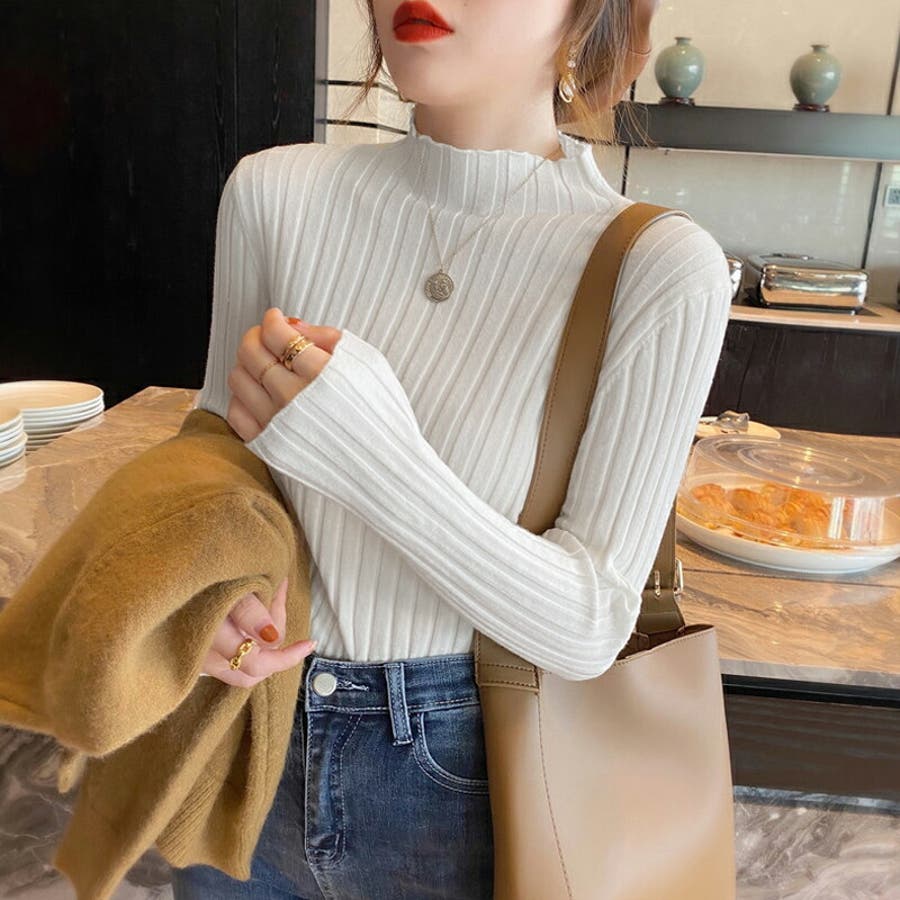 リブニット ハイネック 長袖ニット