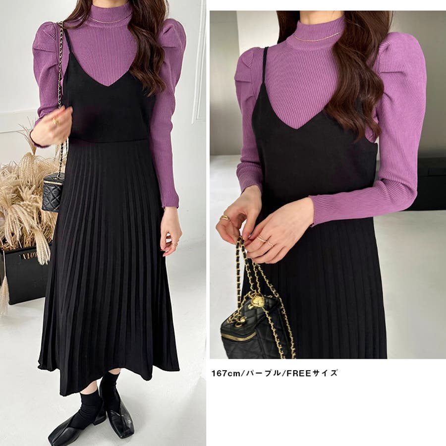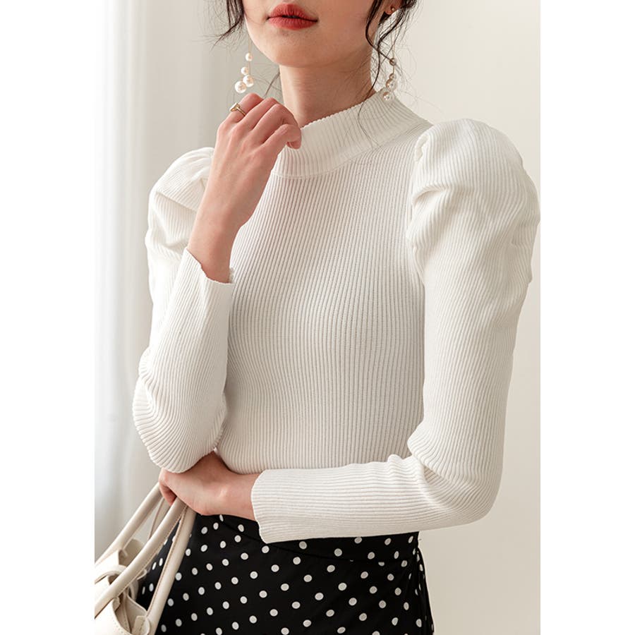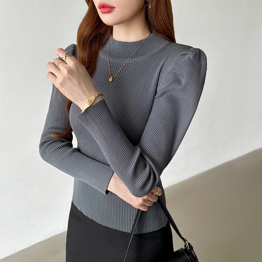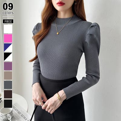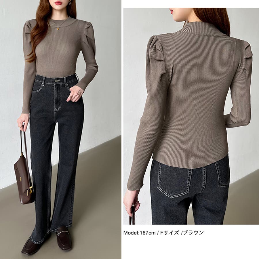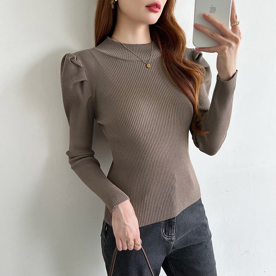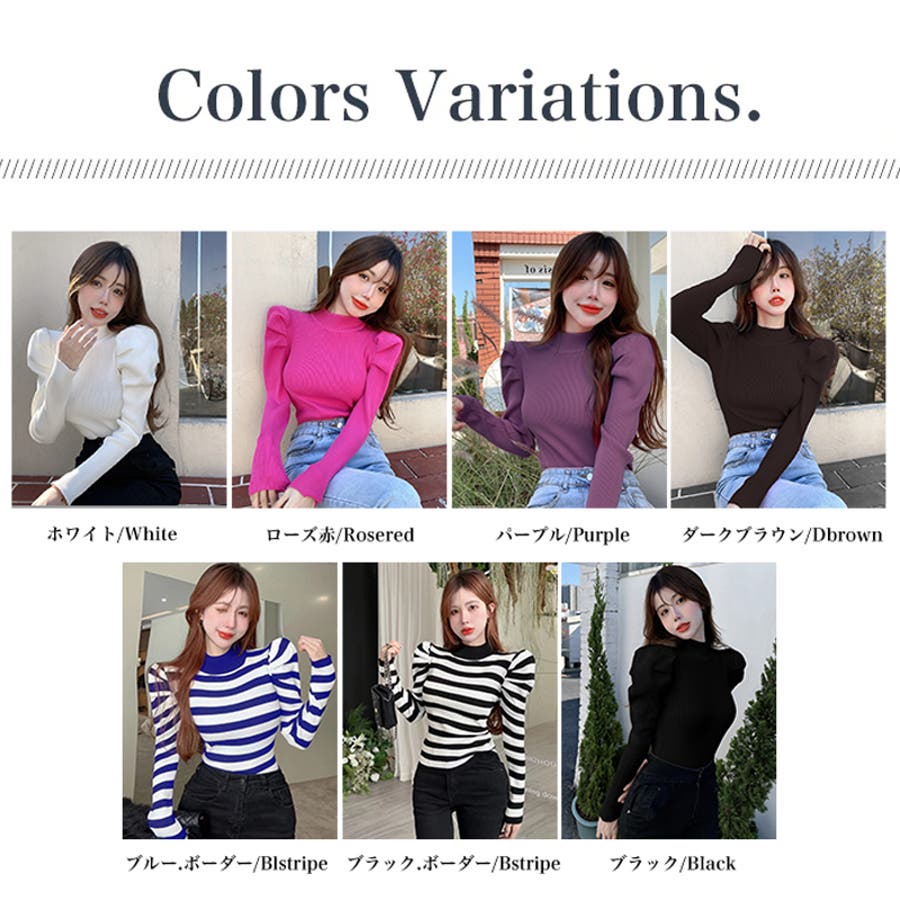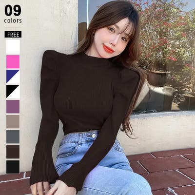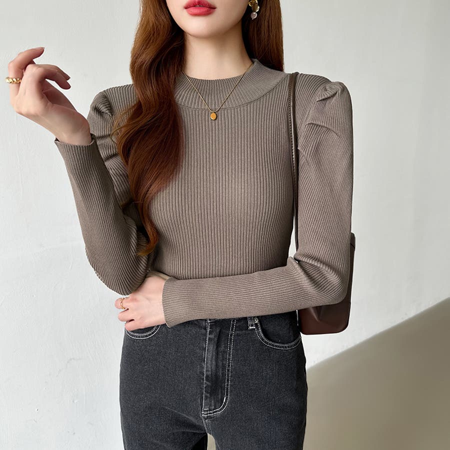パワショル パフスリーブ ボリュームスリーブ タートルネック ボトルネック セーター 薄手 シンプル リブ 細見え インナー カットソー