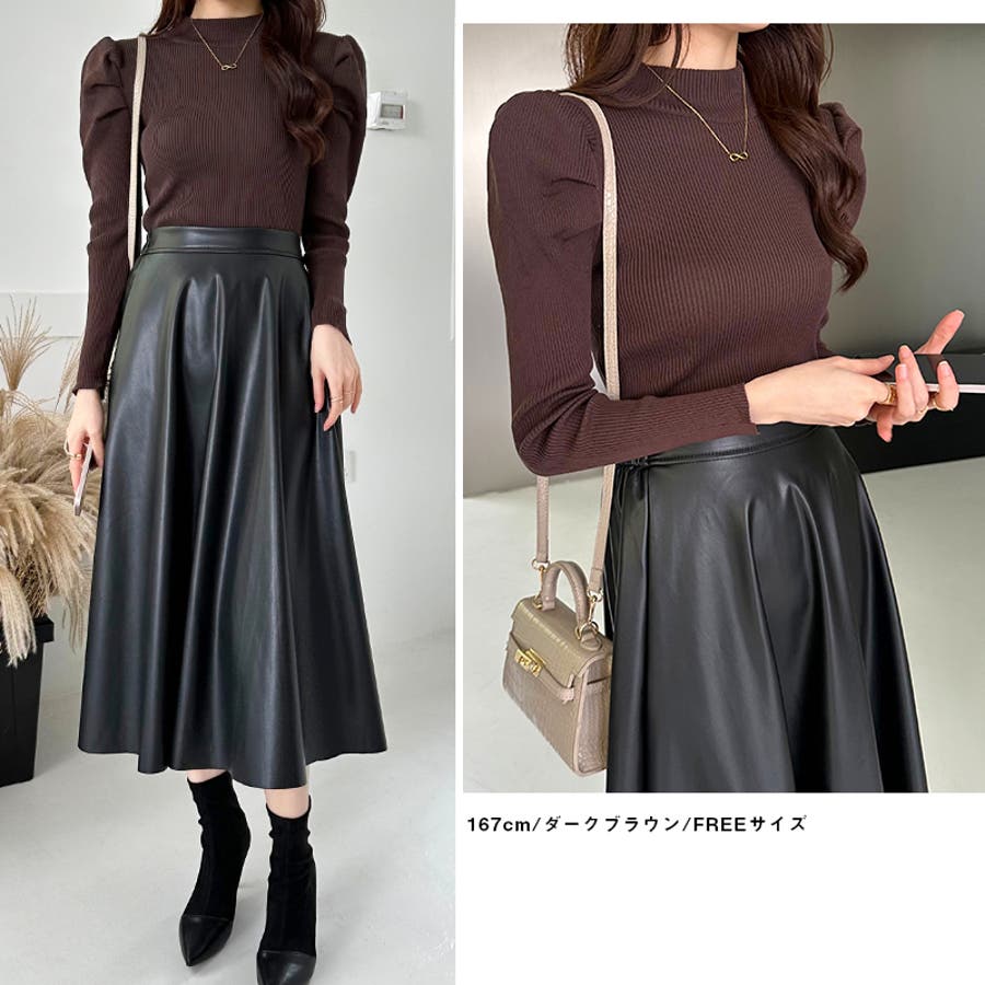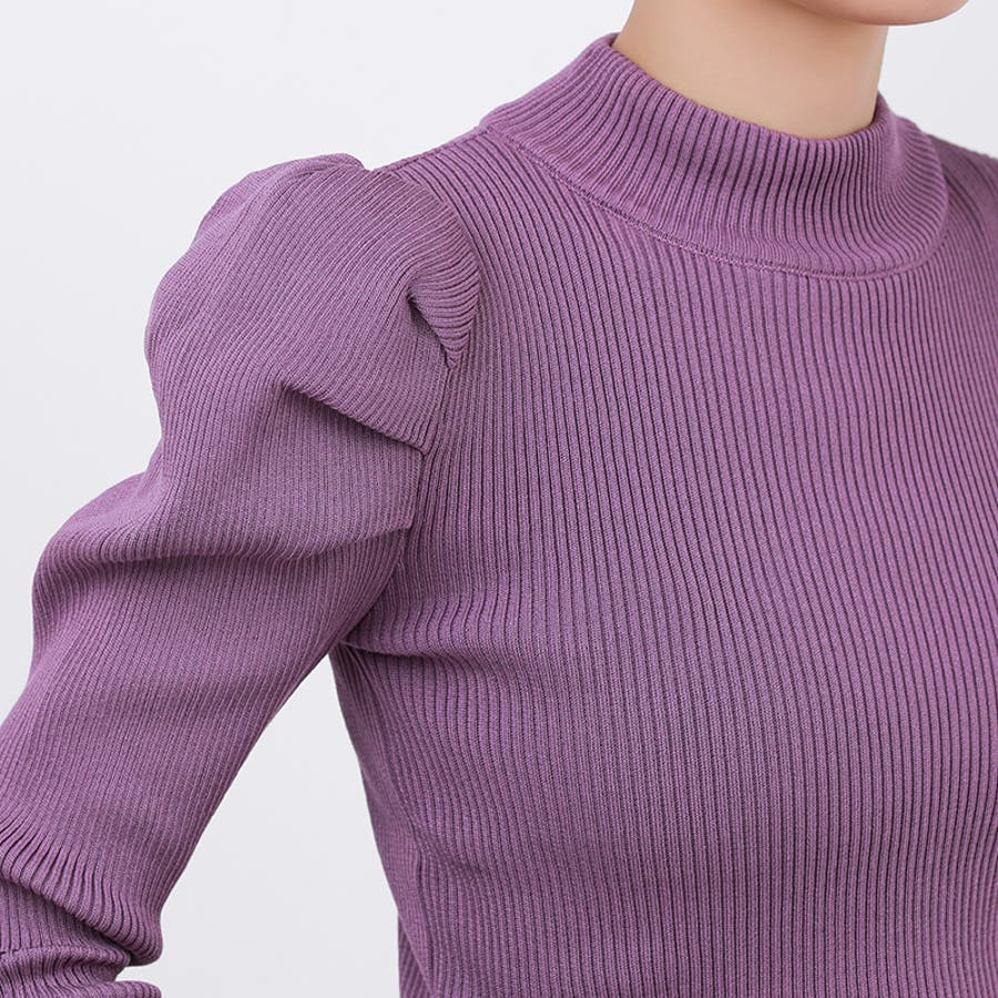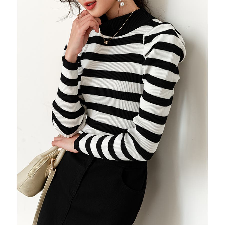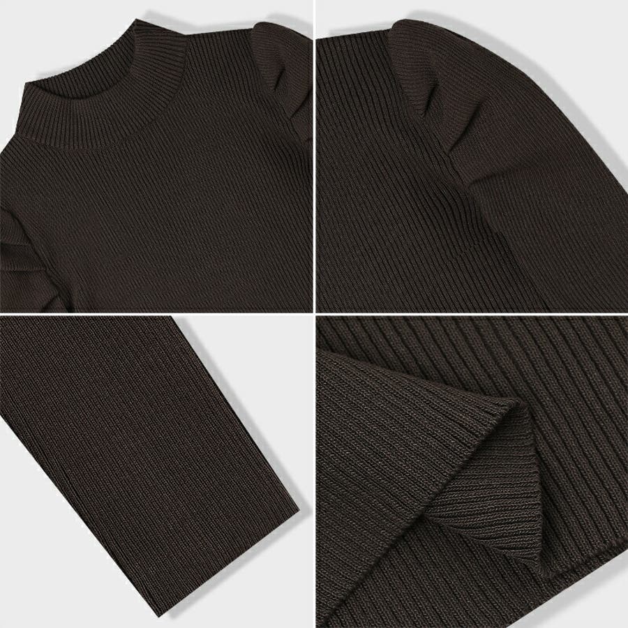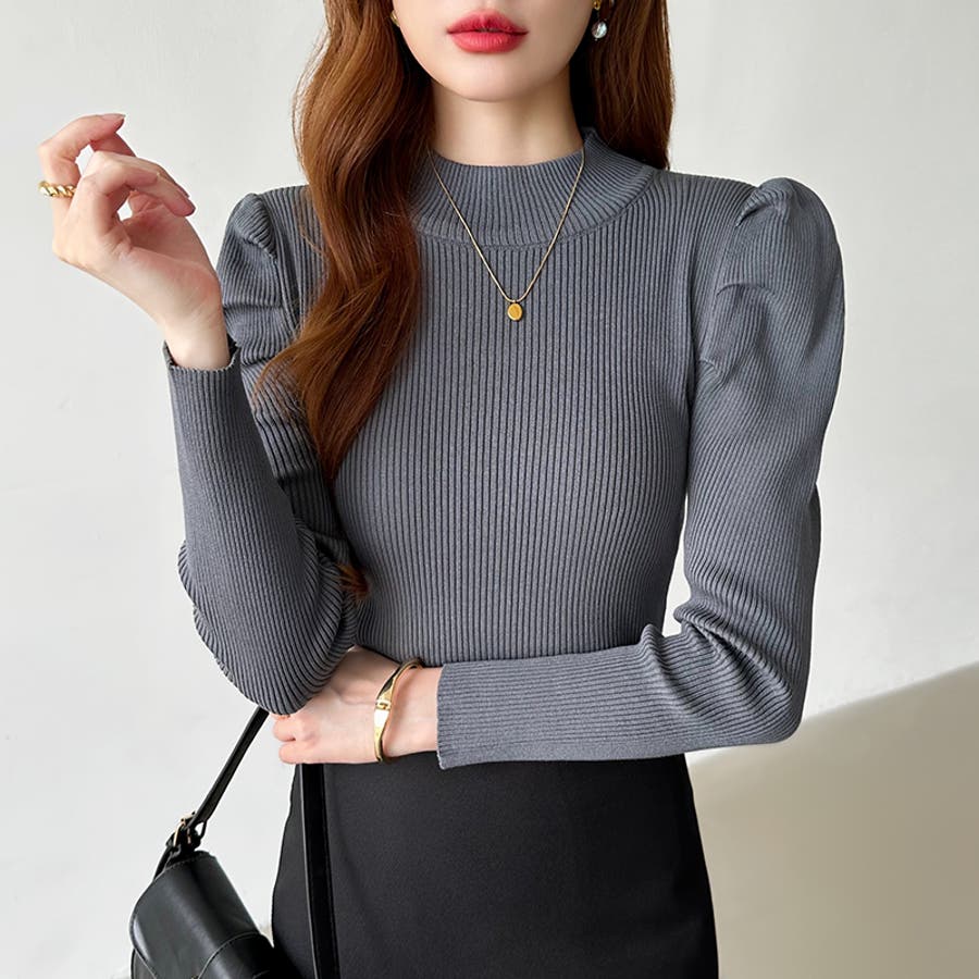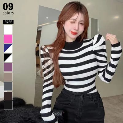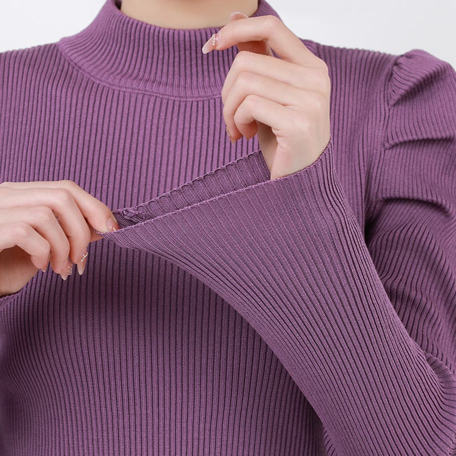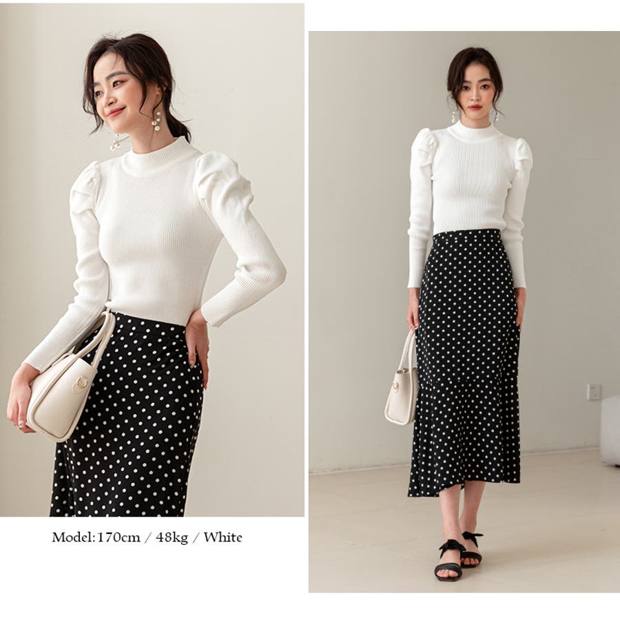 パワショル パフスリーブ ボリュームスリーブ タートルネック ボトルネック セーター 薄手 シンプル リブ 細見え インナー カットソー