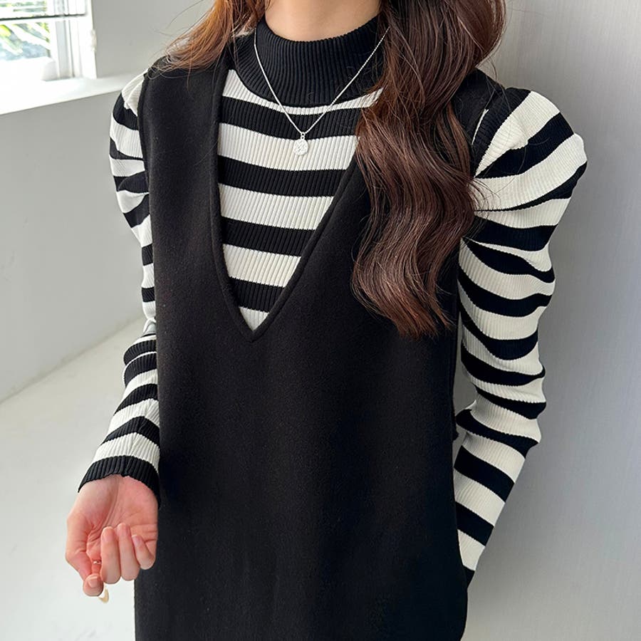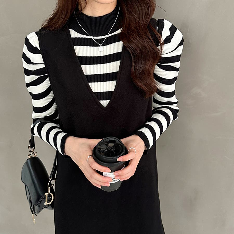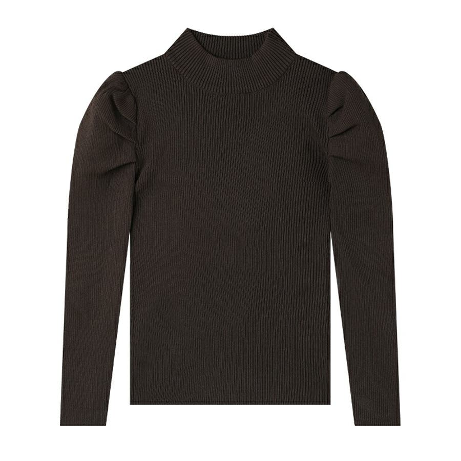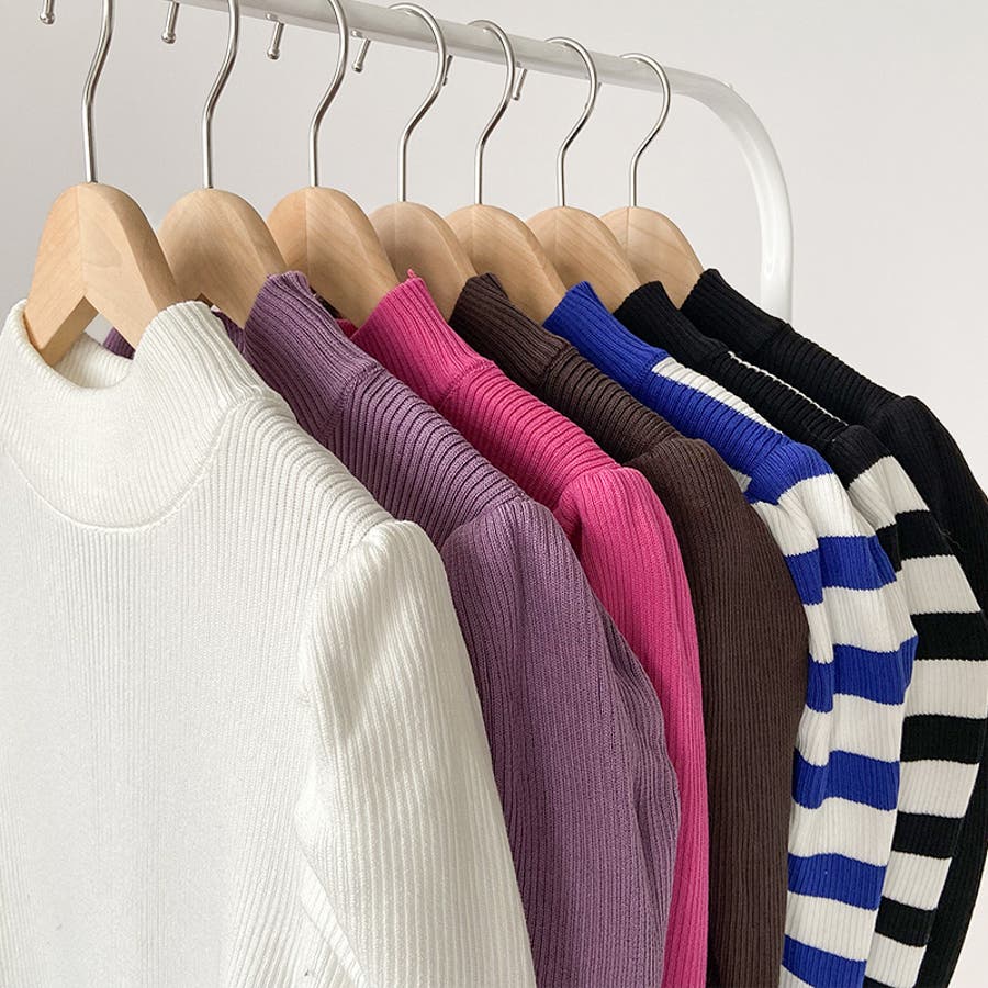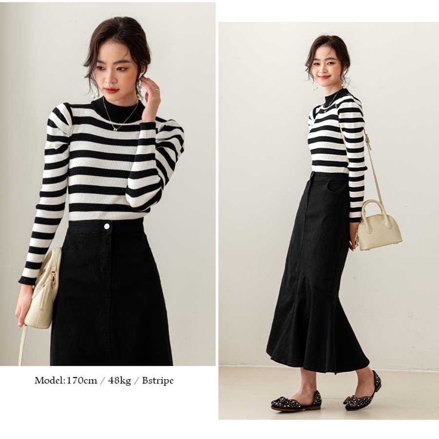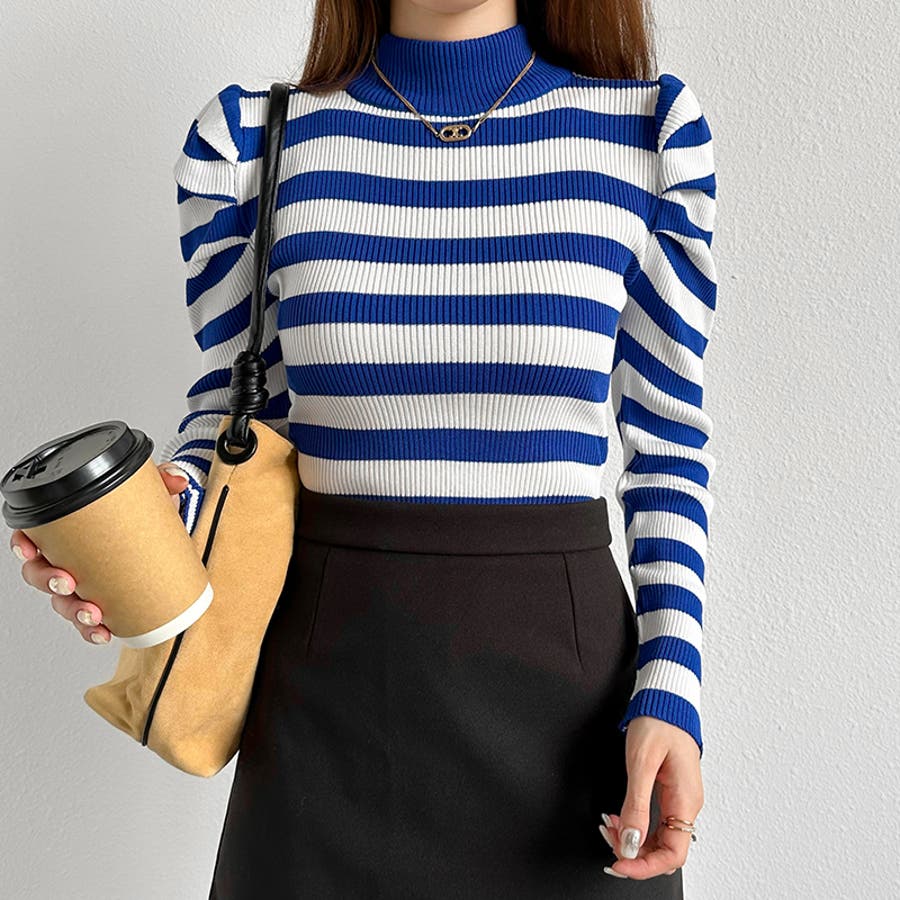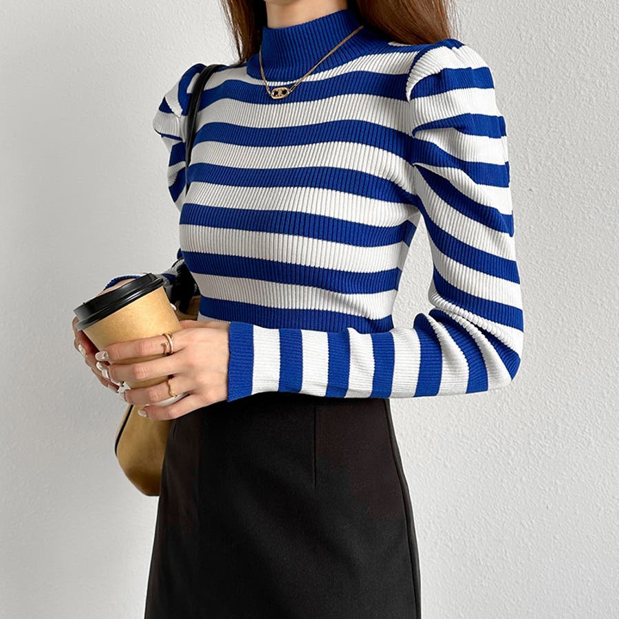パワショル パフスリーブ ボリュームスリーブ タートルネック ボトルネック セーター 薄手 シンプル リブ 細見え インナー カットソー