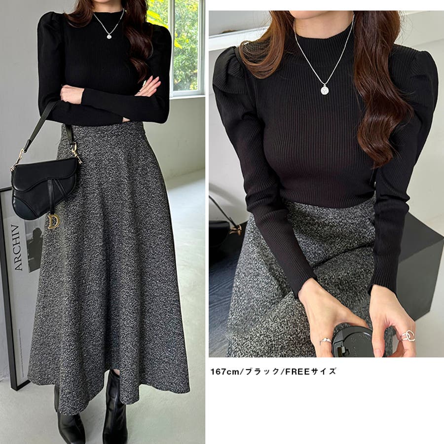 投稿日:2024.12.24前回ブラウンを購入し、今回はブラックを購入しました。骨格ストレート×骨格ナチュラルのミックスですが、パフスリーブが気になる二の腕をカバーしてくれて、これを着用してると自分でも体型詐欺過ぎるのでは?と感じるほど細見えします。このお値段でこのクオリティは凄いです。個人的に柄ニットのタイトスカートに合わせるととっても可愛いです!