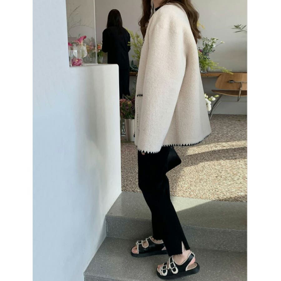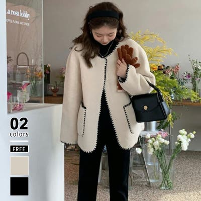 ボア ジャケット レディース ブルゾン ボアコート ボアジャケット ノーカラージャケット アウター 裏フリース 裏 内側 フリース ステッチ コート ジャンパー 長袖 ゆったり 大きめ 体型カバー ボア生地 シンプル 無地 上着 羽織り 羽織 羽織もの フードなし ノーカラー 襟なし 丸襟 ミドル 前あき 前開き ポケット ポケット付き しわになりにくい シワになりにくい パイピング ミドル丈 もこもこ モコモコ ふわふわ ふわもこ ふんわり あったか あたたかい 暖かい 防風 防寒 ポリエステル オフィス オフィスカジュアル オフィスカジュアル秋冬 通勤 通学 お出かけ おでかけ 旅行 レディース秋冬 レディース韓国 レトロ フェミニン カジュアル 上品 大人 かわいい 可愛い 大人可愛い オトナ女子 大人女子 おしゃれ オシャレ 母 ママ ママコーデ プチプラ 高見え トレンド ヒット 商品 おすすめ 服 ファッション 人気 女性 フリーサイズ アイボリー きなり 生成り 白 ブラック 黒 新作 2023AW 2023 2023新作 秋冬新作 秋物 冬物 冬用 秋冬 秋 冬 秋服 冬服 韓国 韓国ファッション 10代 20代 30代 40代 50代 cocomomo ココモモ