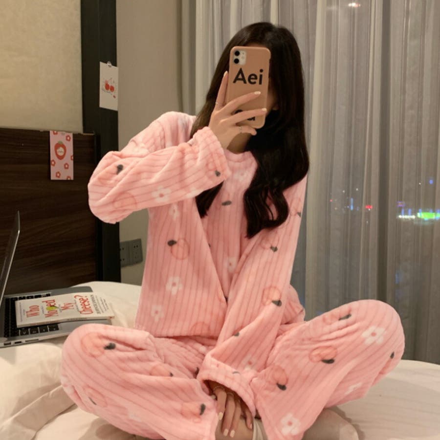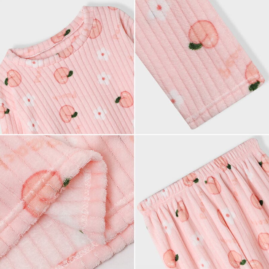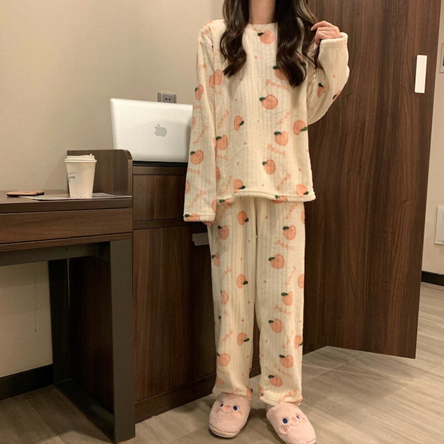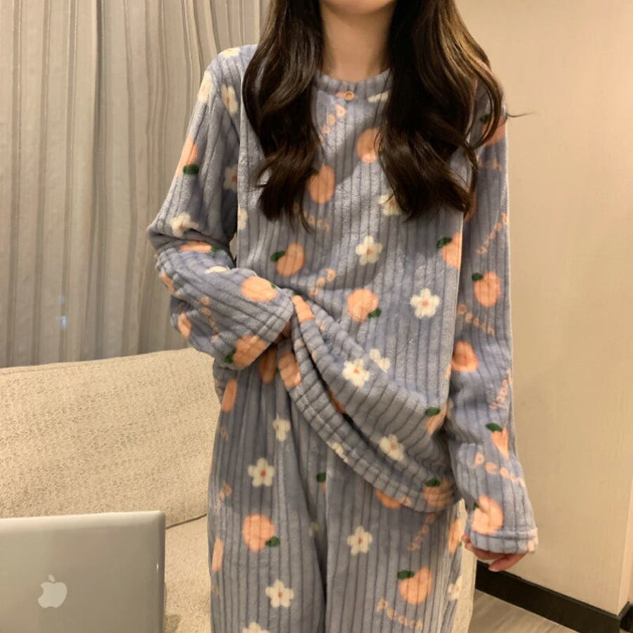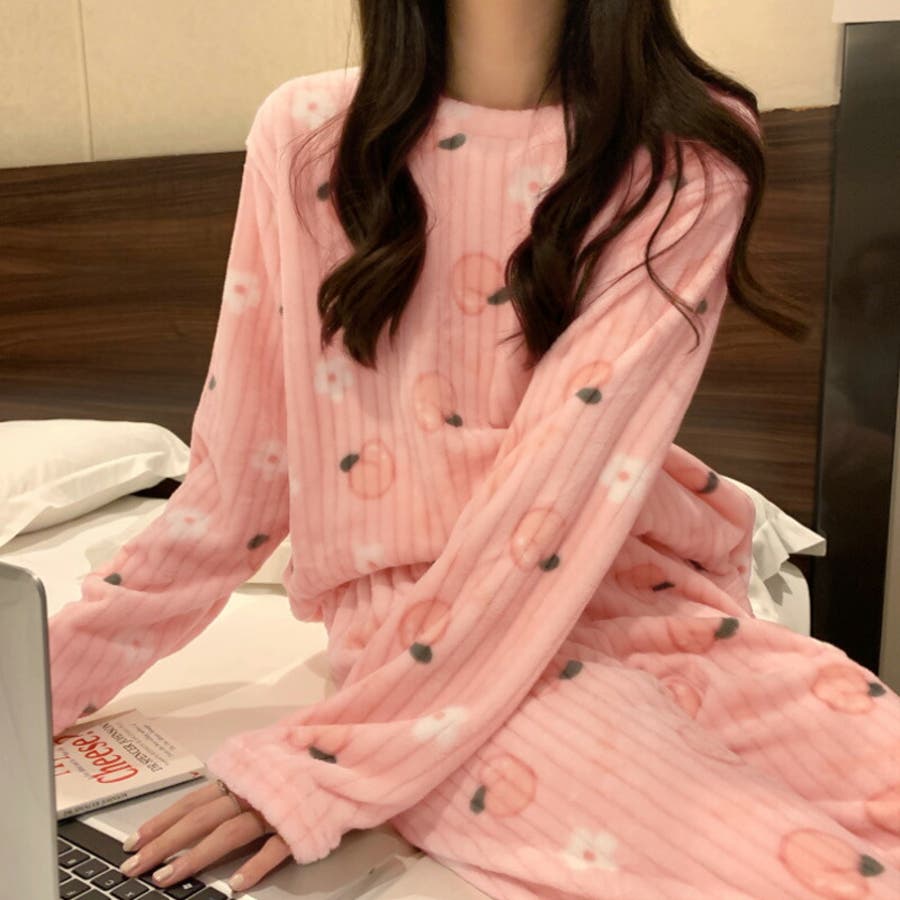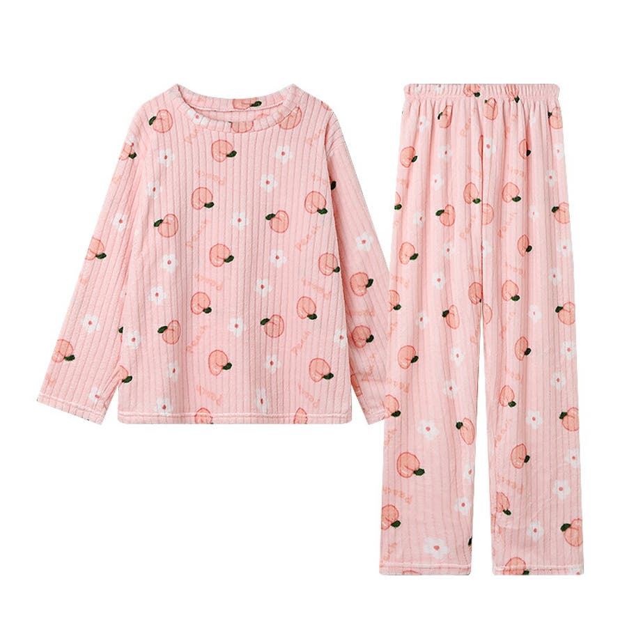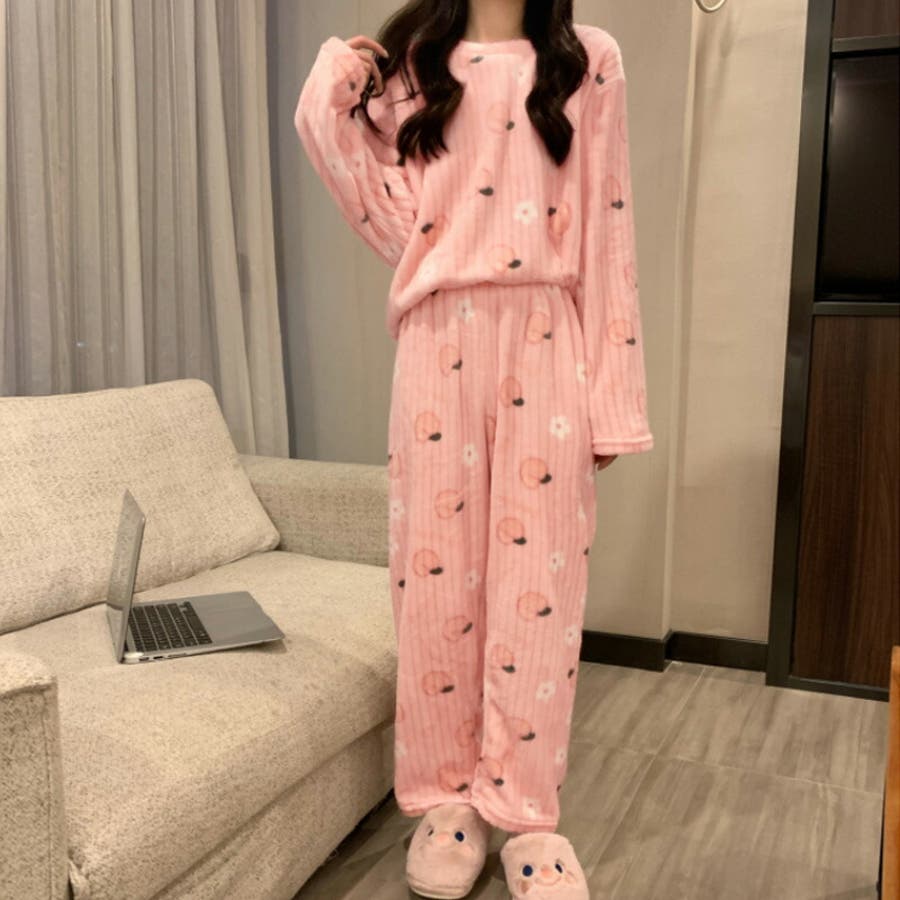 ルームウェア 韓国風ピーチ柄パジャマ 上下セット パジャマ レディース 部屋着 セットアップ 長袖 秋冬 ナイトウェア セット