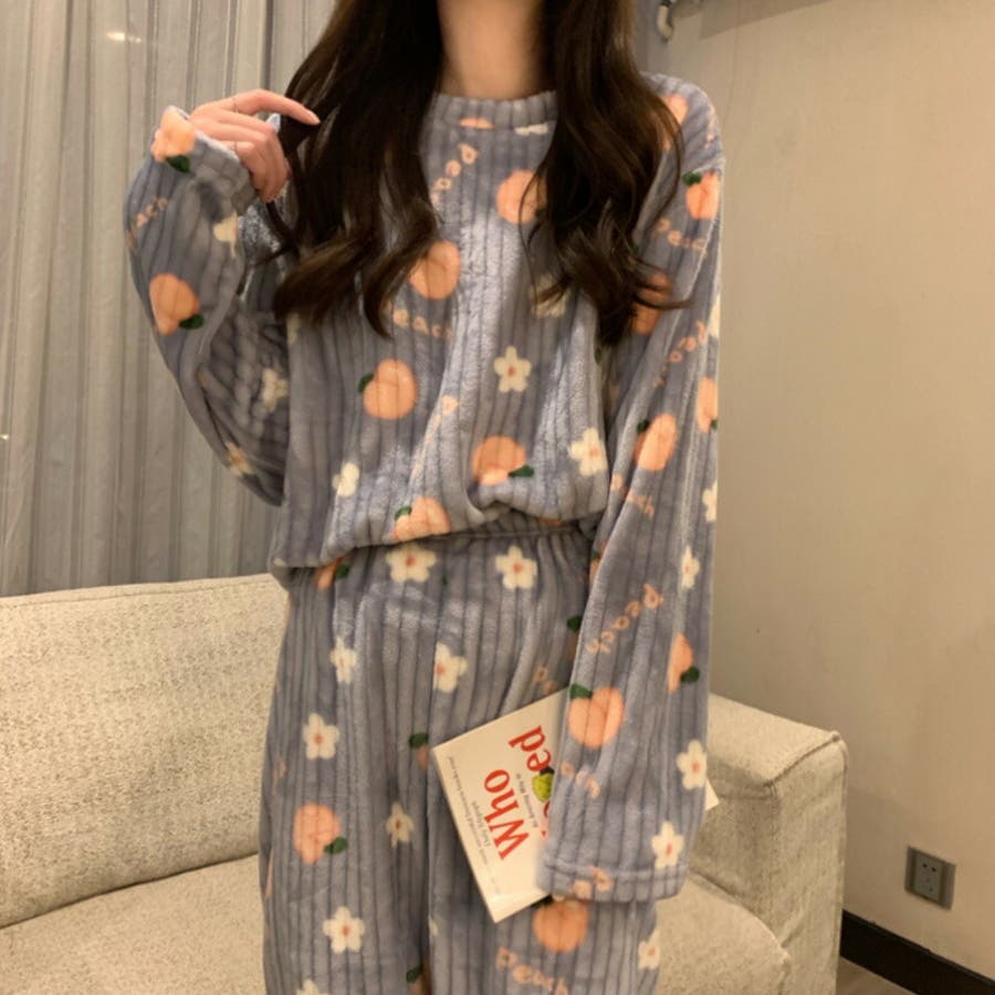 ルームウェア 韓国風ピーチ柄パジャマ 上下セット