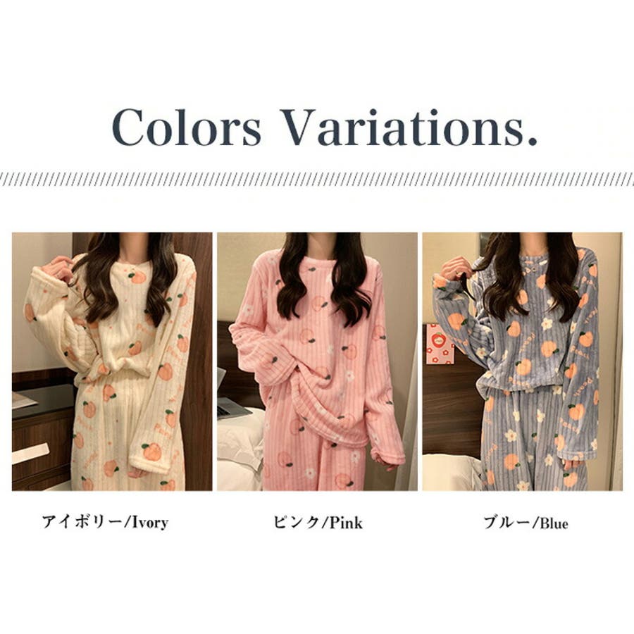 リラックスウェア 寝間着 もも柄 ピーチ柄 花柄 リブ もこもこ モコモコ生地 長ズボン ボトムス ロングパンツ