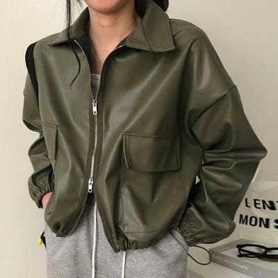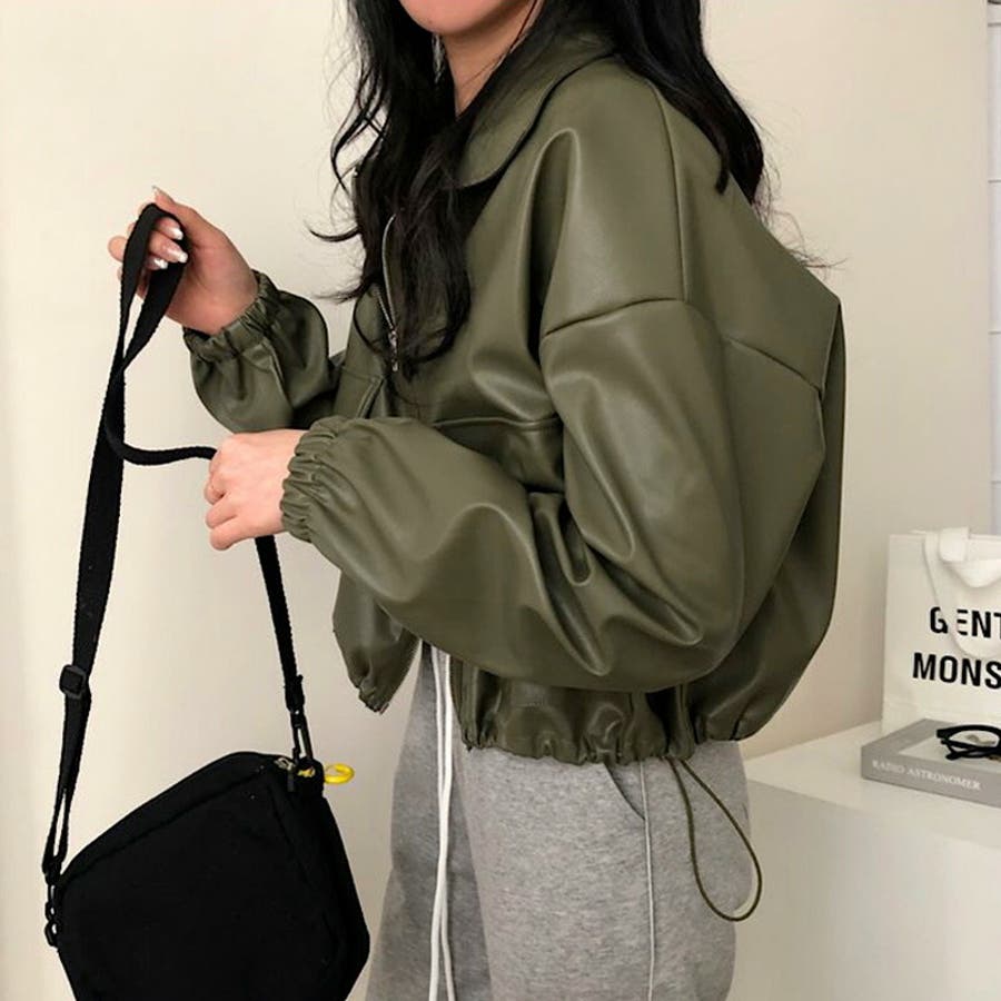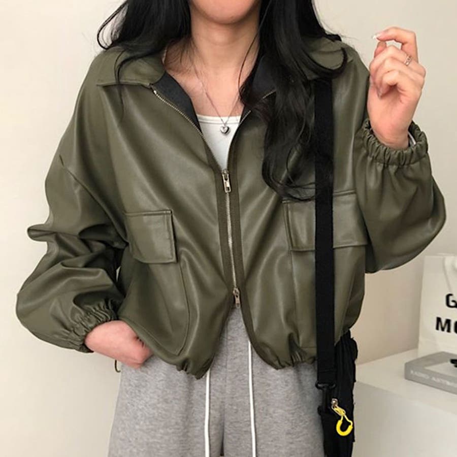 ジャケット フェイクレザージャケット クロップドレザージャケット レディース ブルゾン ジャンパー アウター 羽織り 上着