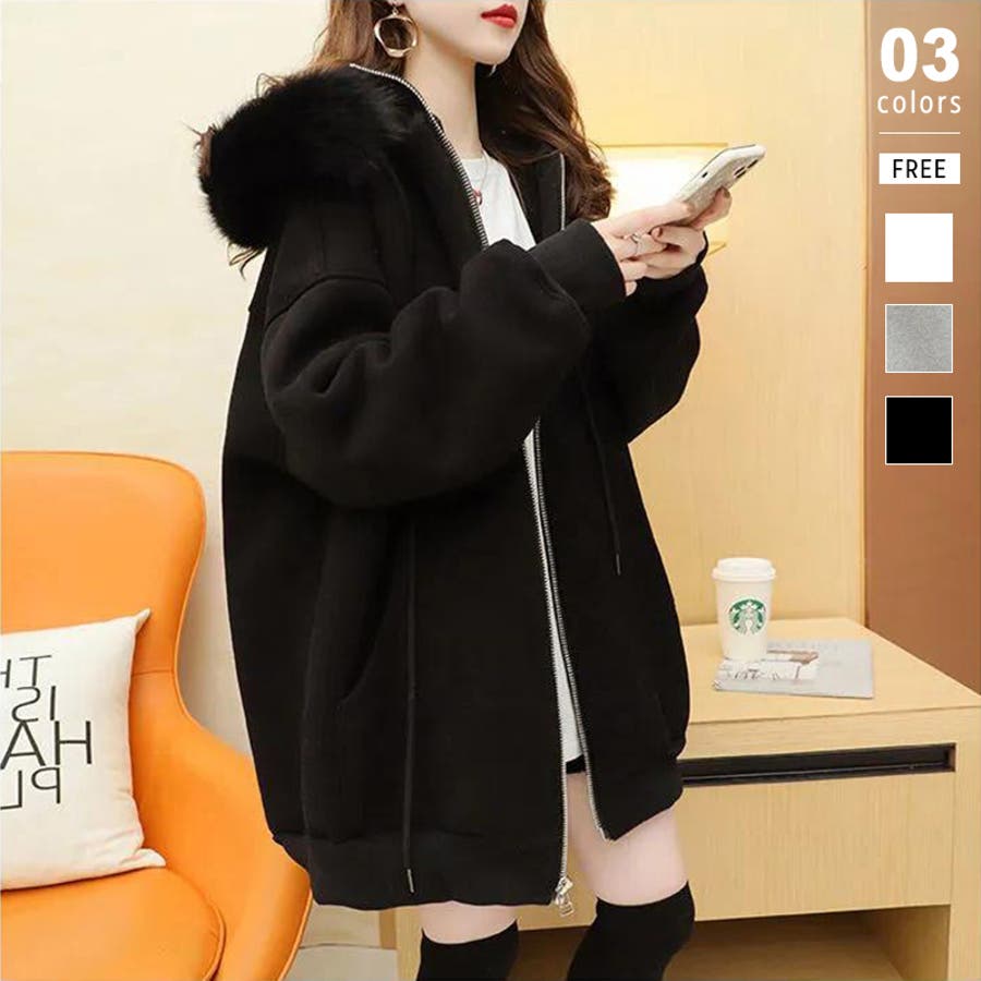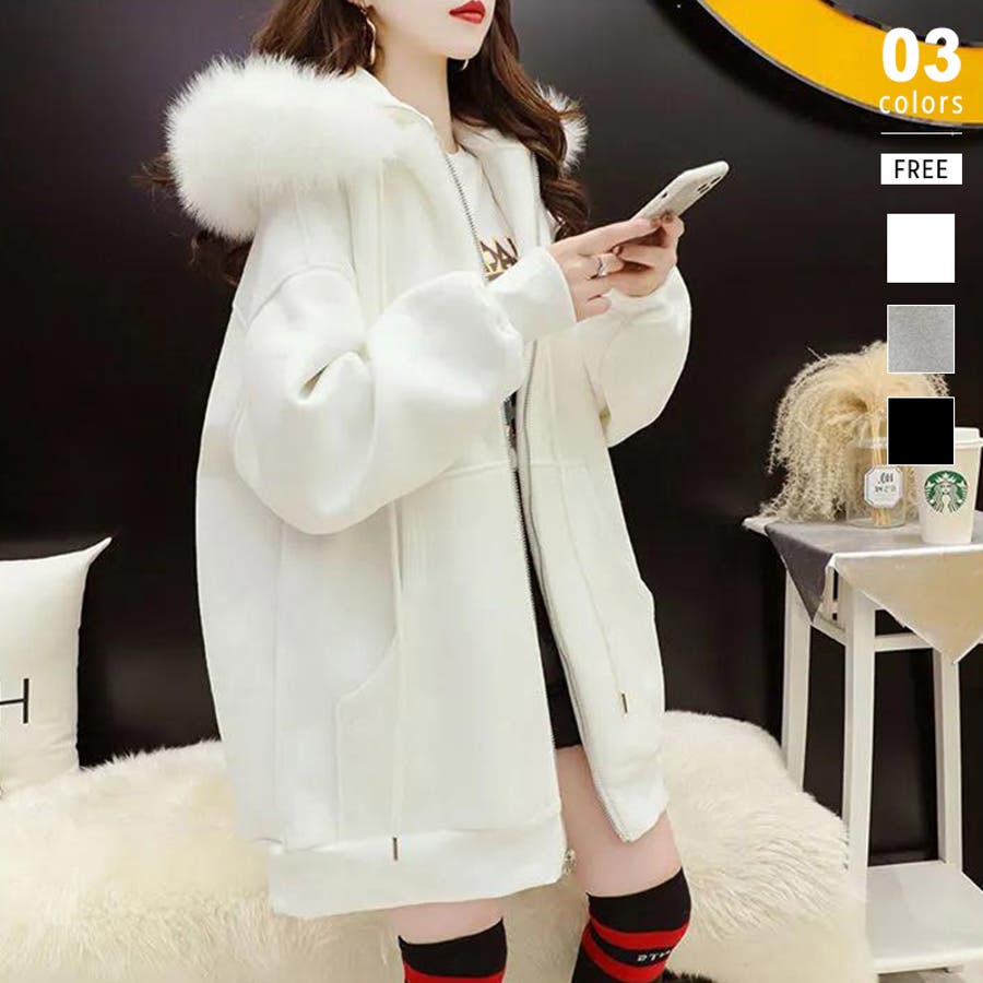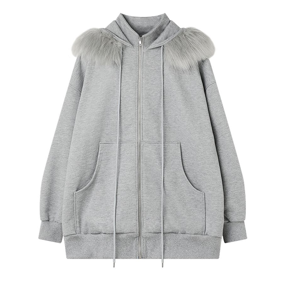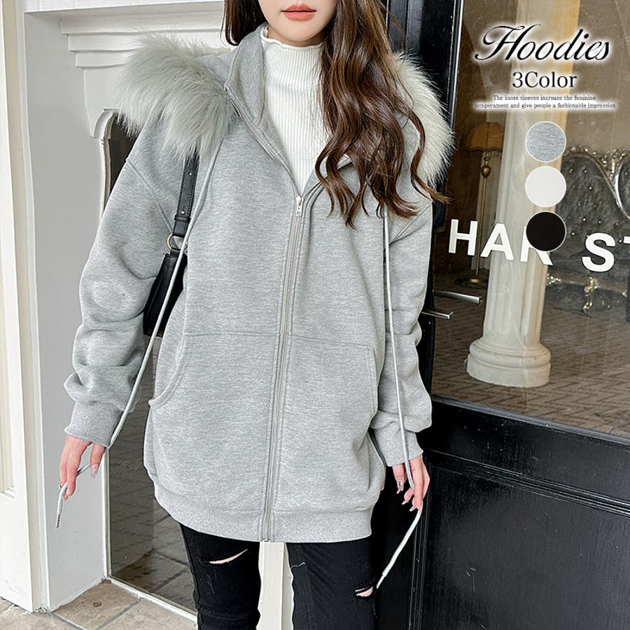 パーカー オーバーサイズ ファー付きジップアップパーカー アウター レディース ファー ファー付き フェイクファー フード フード付き ジップアップ ジップアップパーカー フーディ スウェット トレーナー ブルゾン ゆったり 大きいサイズ 大きい ビッグ パーカージャケット ファスナー ポケット付き リブ リブ袖 ドロップショルダー ボリューム袖 長袖 秋冬 羽織り 羽織もの 上着 コットン 綿 ポリエステル 裏起毛 起毛 裏毛 裏ボア 暖かい あったか 厚手 ふわふわ ふんわり もこもこ ルーズ 体型カバー プチプラ 無地 カジュアル 大人 可愛い おしゃれ 通勤 通学 グレー ブラック ホワイト 灰 黒 白 秋服 冬服 秋 冬 韓国 韓国ファッション 20代 30代 40代 50代 cocomomo ココモモ