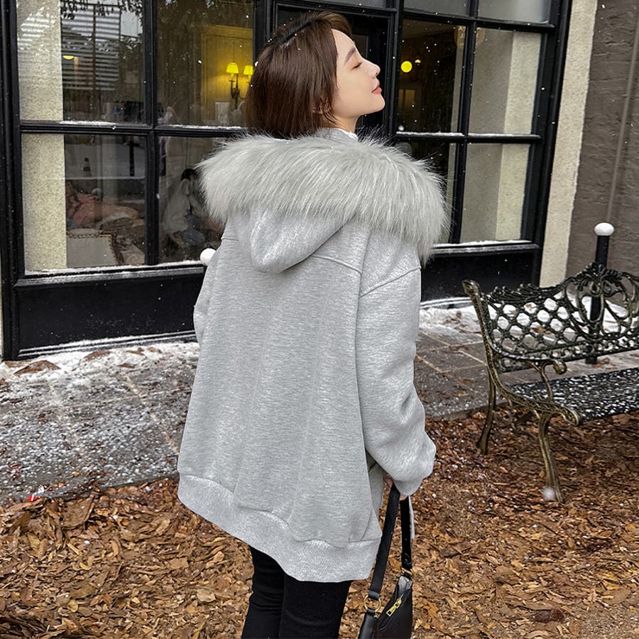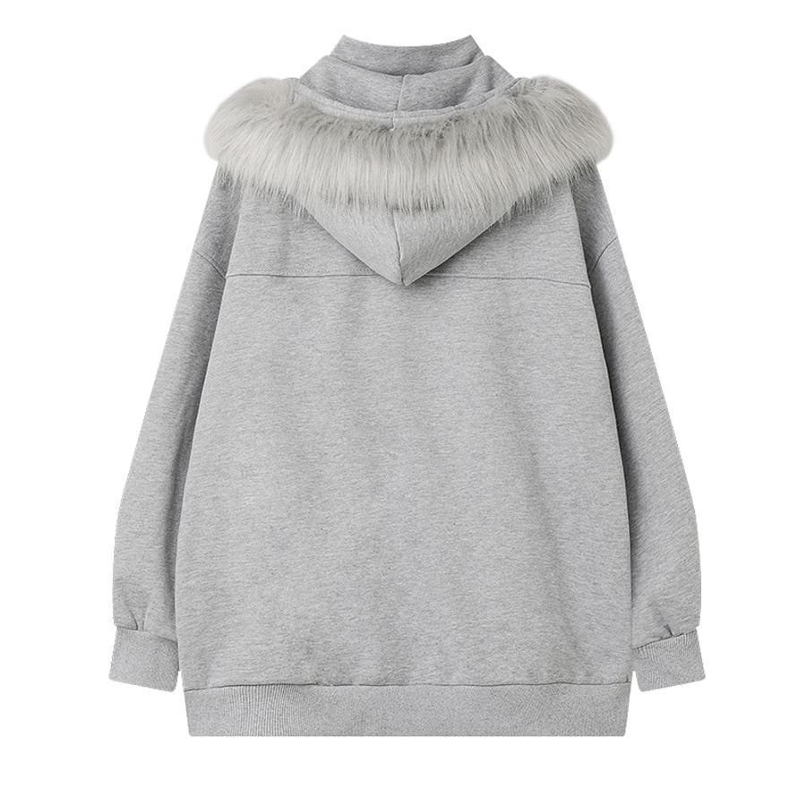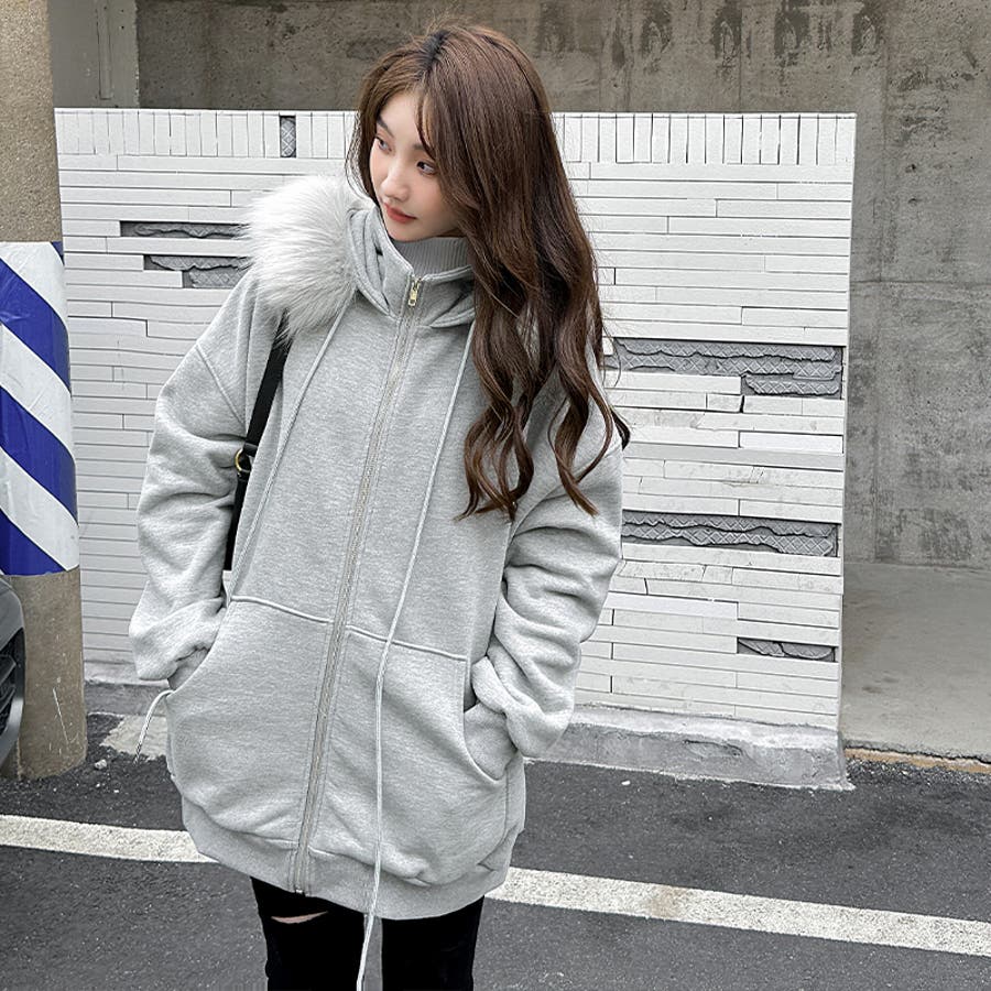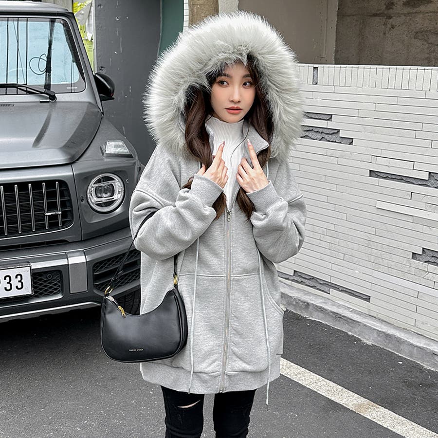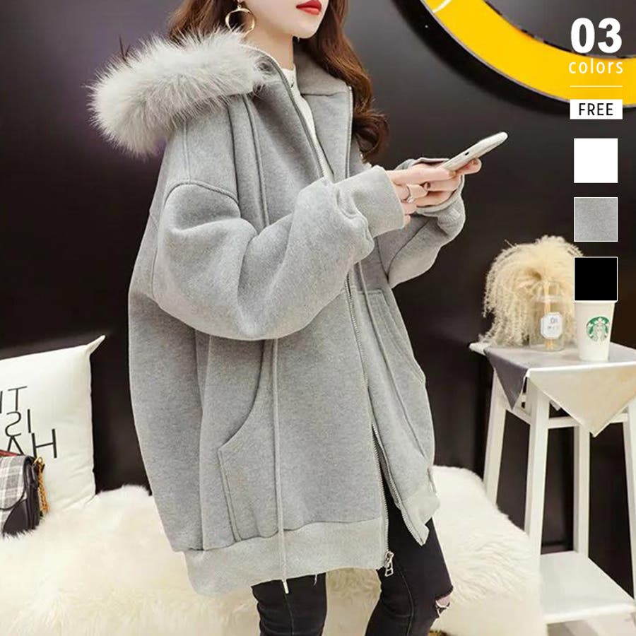 パーカー オーバーサイズ ファー付きジップアップパーカー アウター レディース ファー ファー付き フェイクファー フード フード付き ジップアップ ジップアップパーカー フーディ スウェット トレーナー ブルゾン ゆったり 大きいサイズ 大きい ビッグ パーカージャケット ファスナー ポケット付き リブ リブ袖 ドロップショルダー ボリューム袖 長袖 秋冬 羽織り 羽織もの 上着 コットン 綿 ポリエステル 裏起毛 起毛 裏毛 裏ボア 暖かい あったか 厚手 ふわふわ ふんわり もこもこ ルーズ 体型カバー プチプラ 無地 カジュアル 大人 可愛い おしゃれ 通勤 通学 グレー ブラック ホワイト 灰 黒 白 秋服 冬服 秋 冬 韓国 韓国ファッション 20代 30代 40代 50代 cocomomo ココモモ