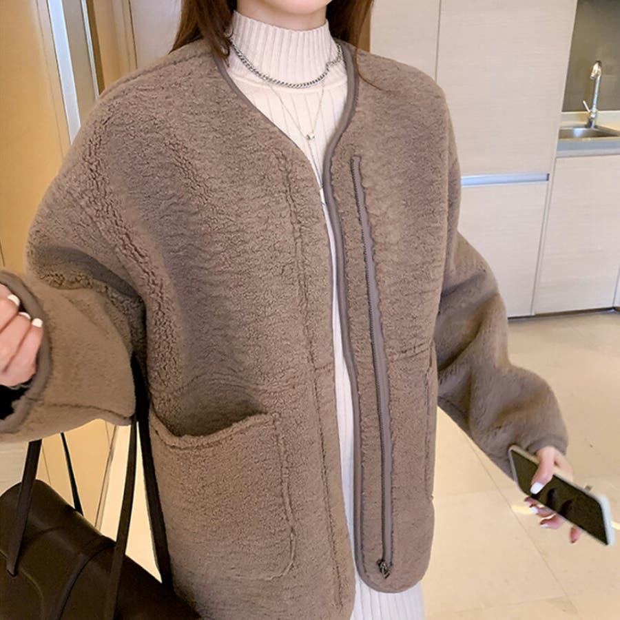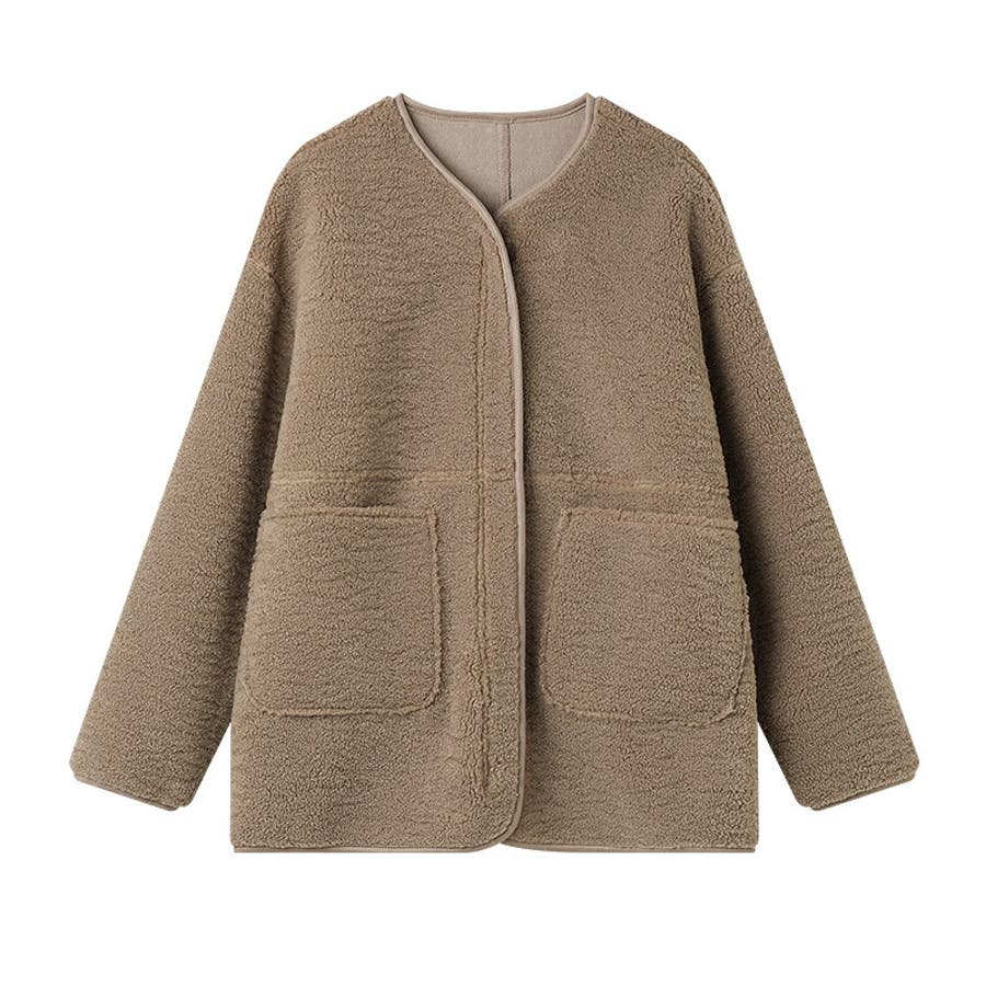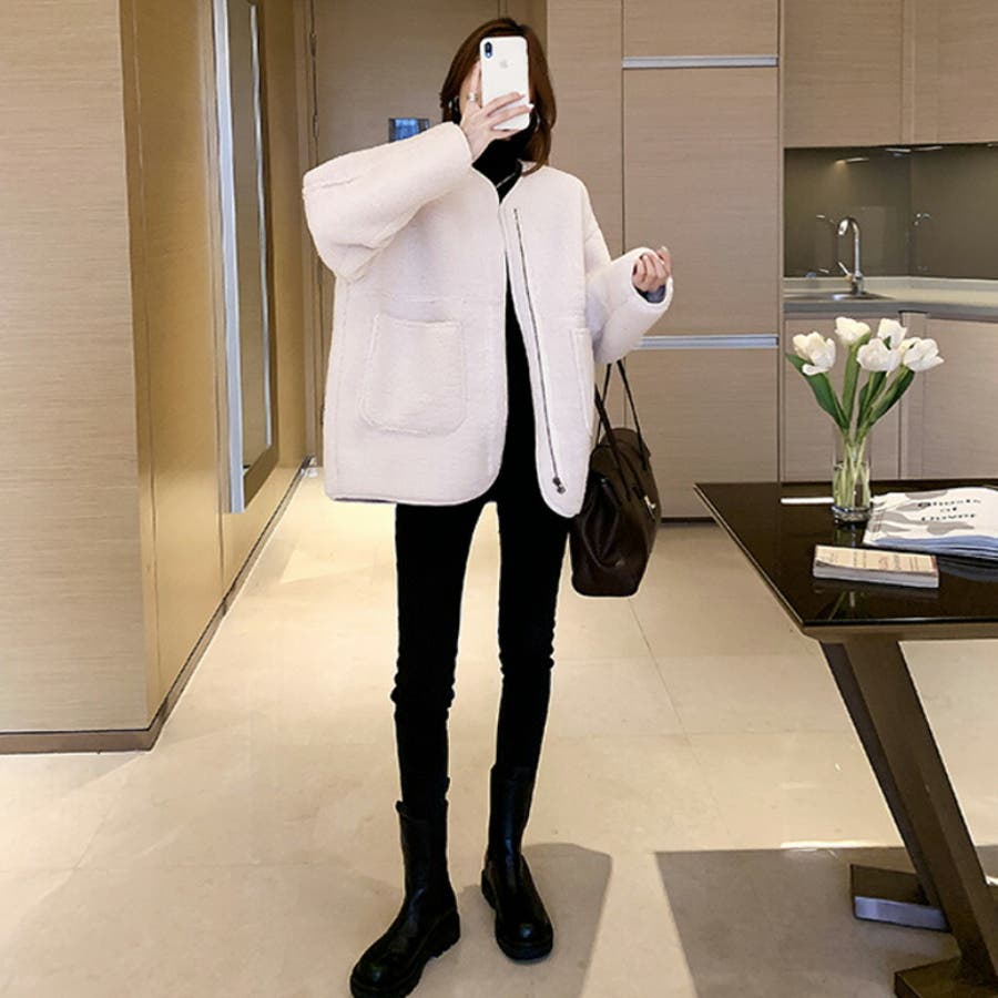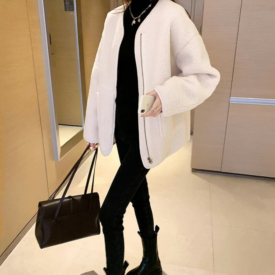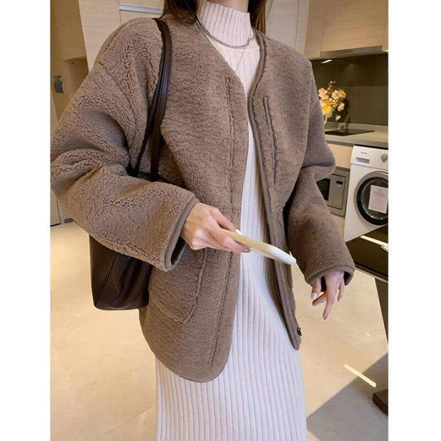 ノーカラーボアコート。