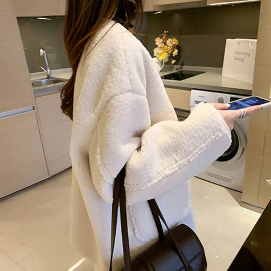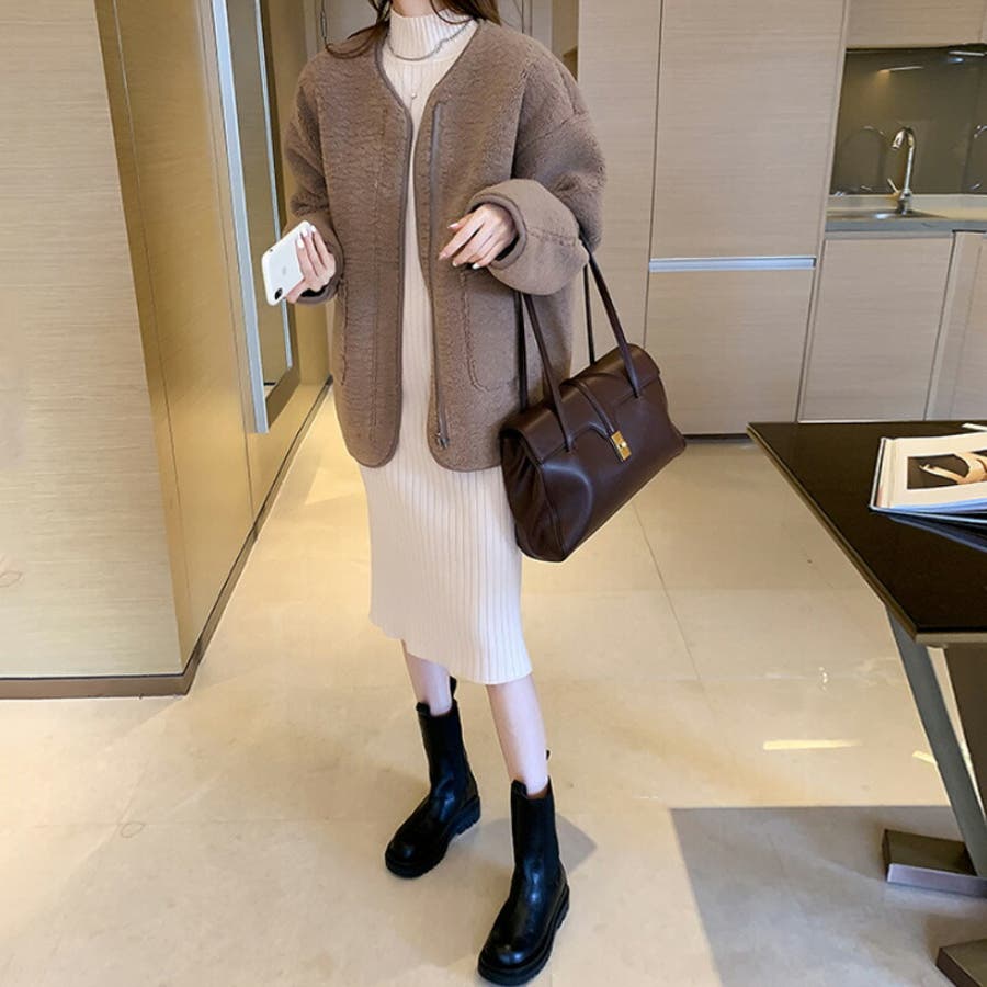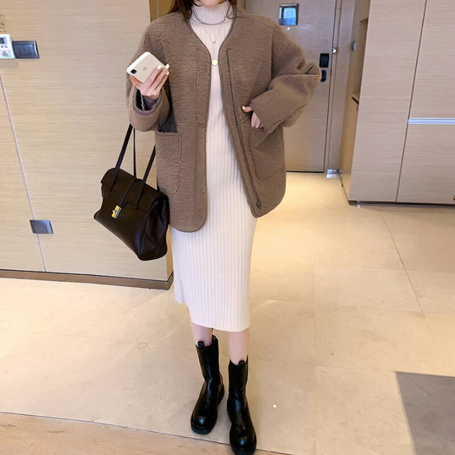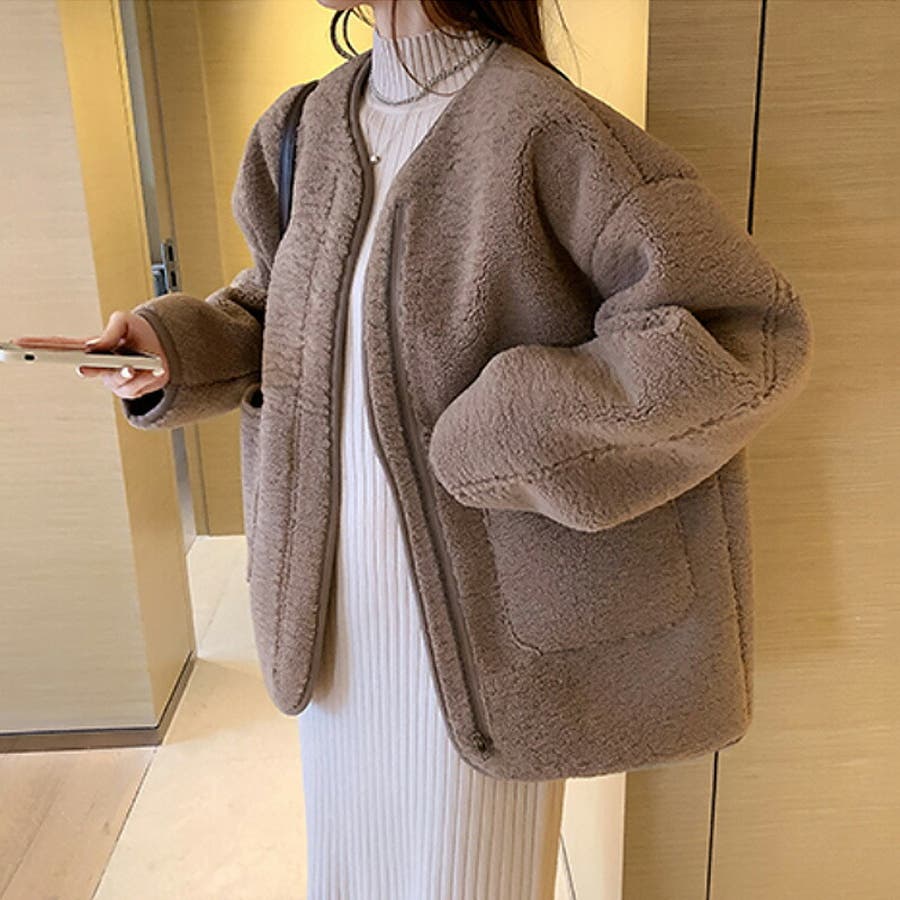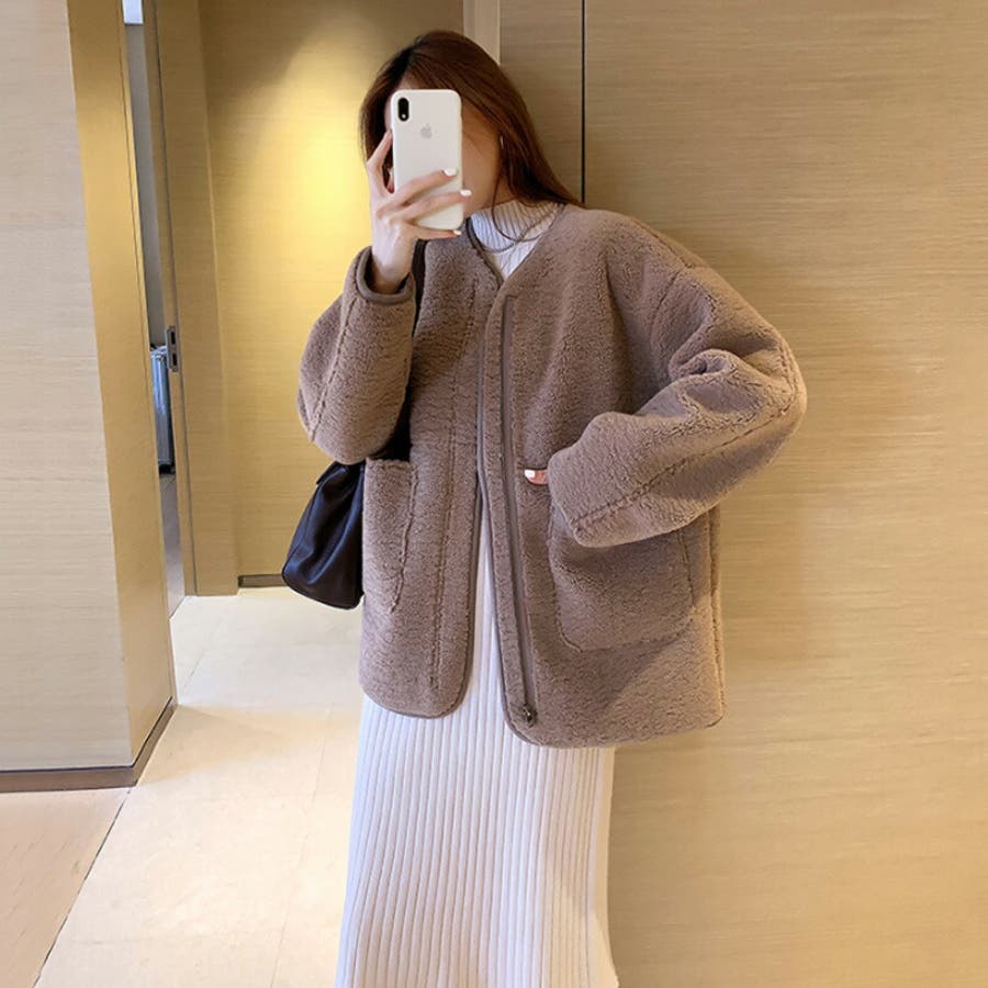 ノーカラーボアコート。
