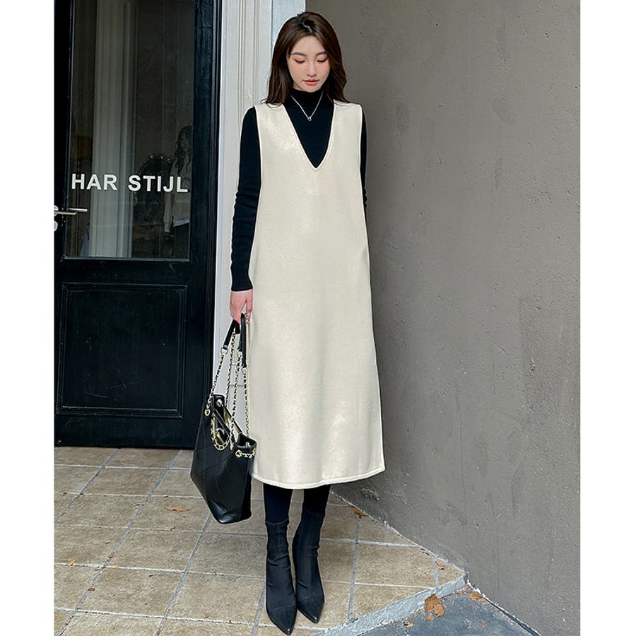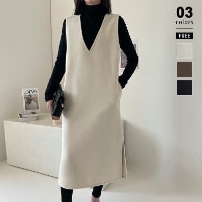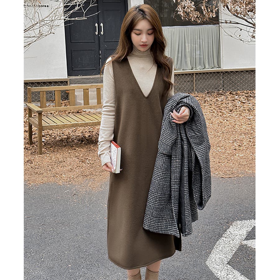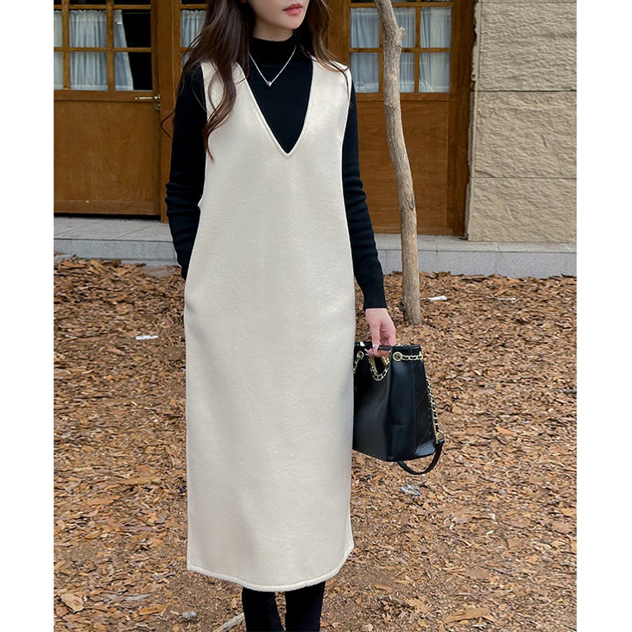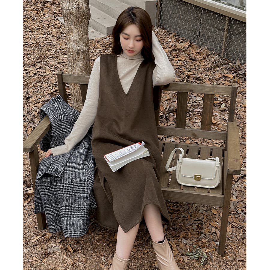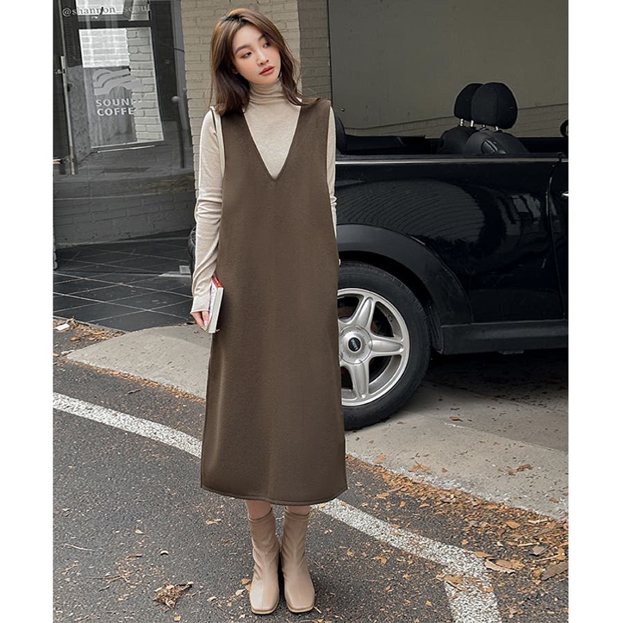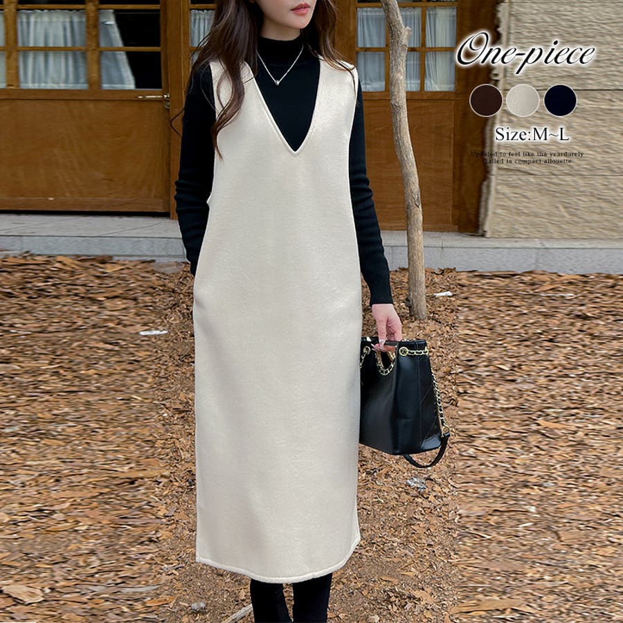 ジャンパースカート Vネックジャンパースカート Vネックワンピース ワンピース 秋冬 ジャンスカ ノースリーブ Vネック