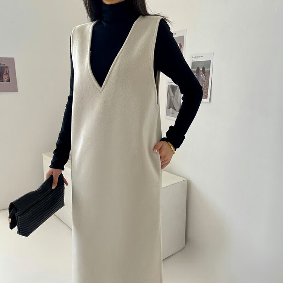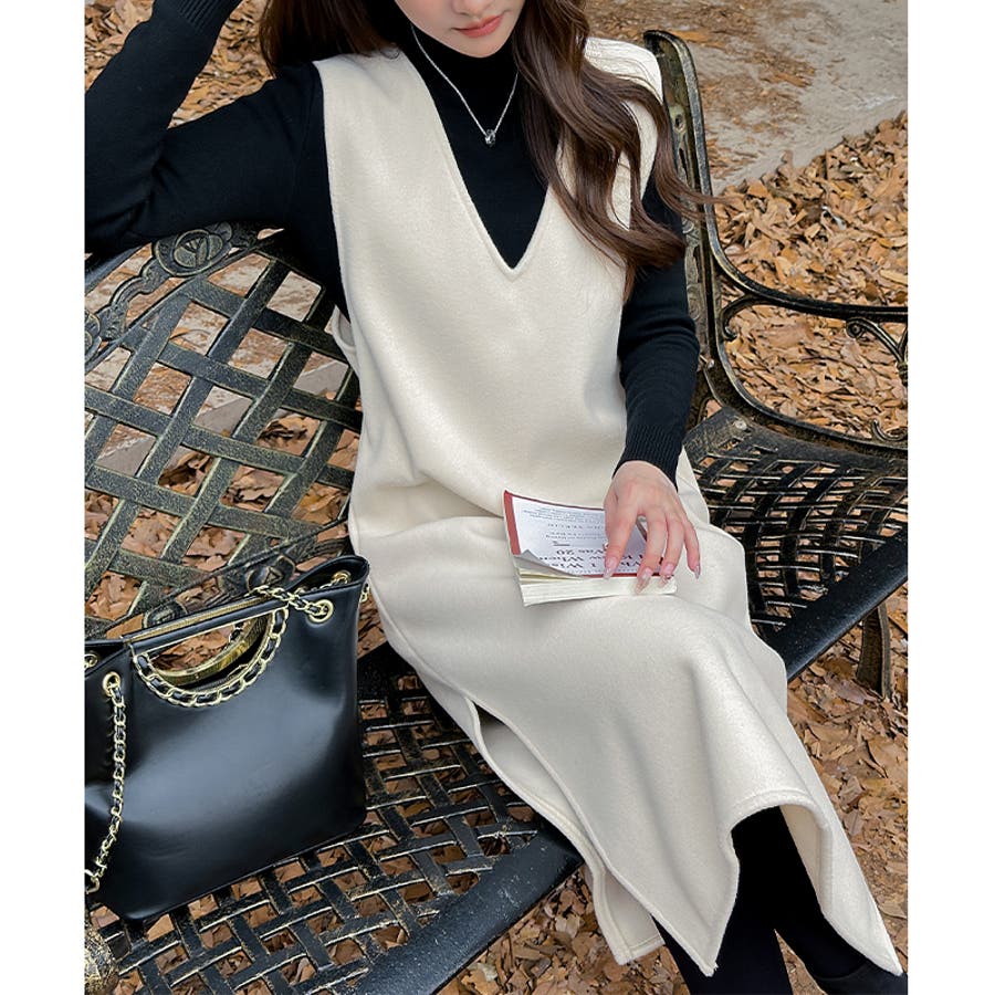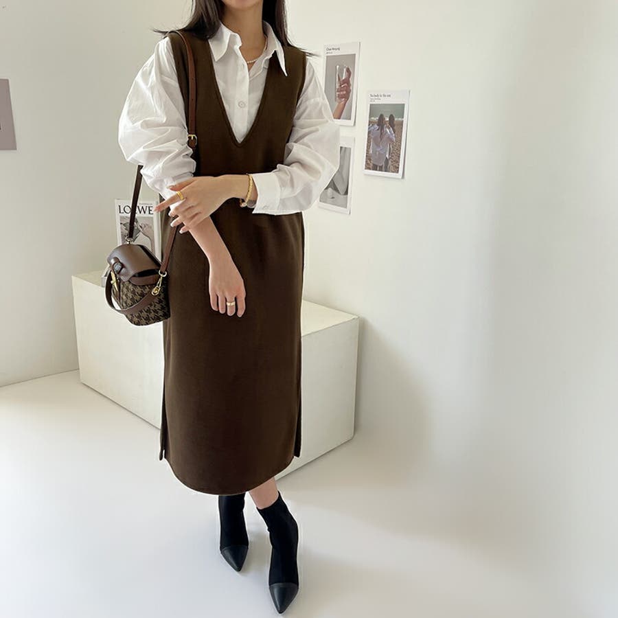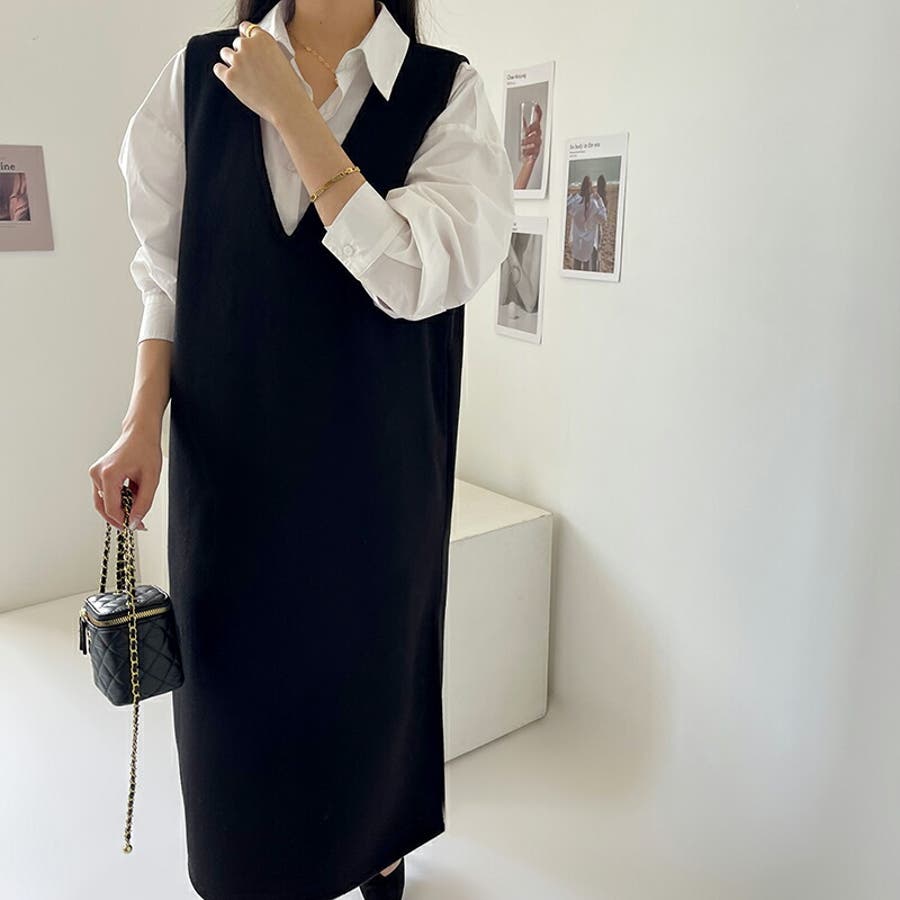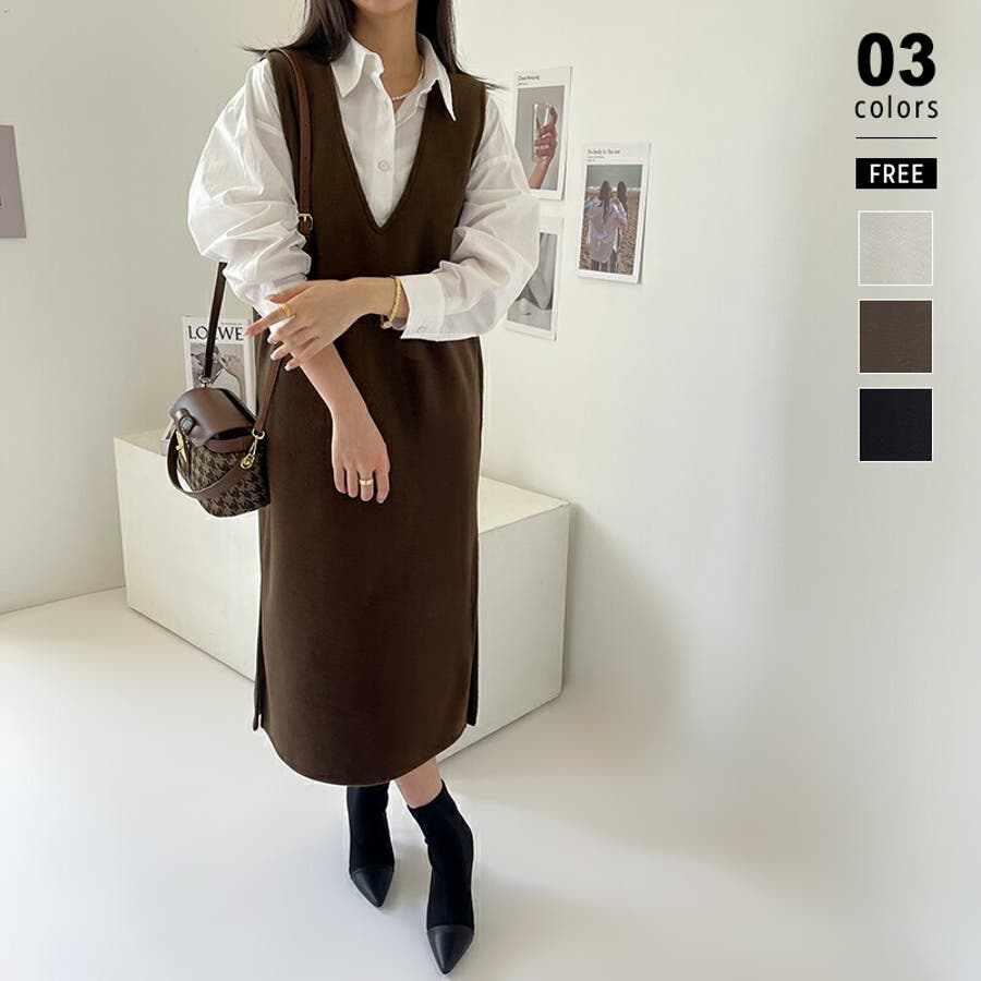 ジャンパースカート Vネックジャンパースカート Vネックワンピース ワンピース 秋冬 ジャンスカ ノースリーブ Vネック