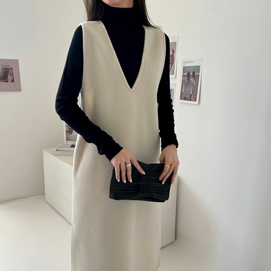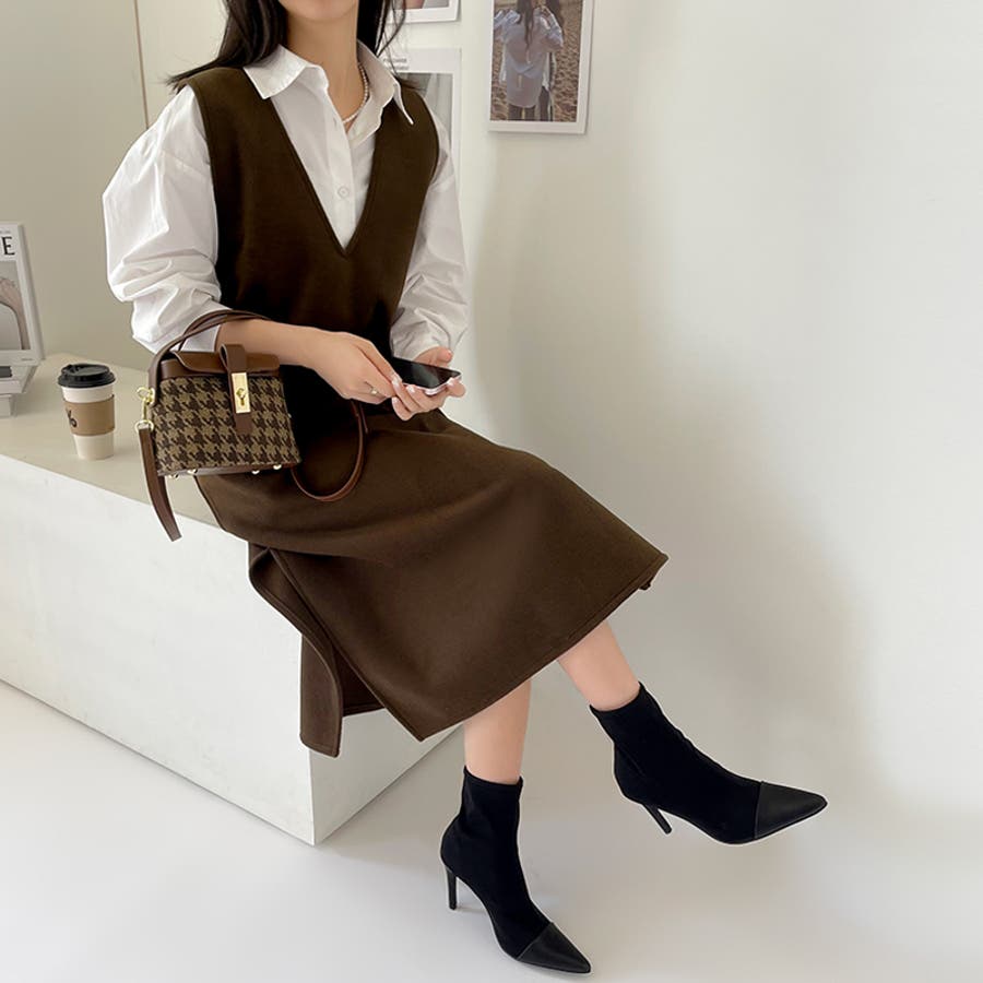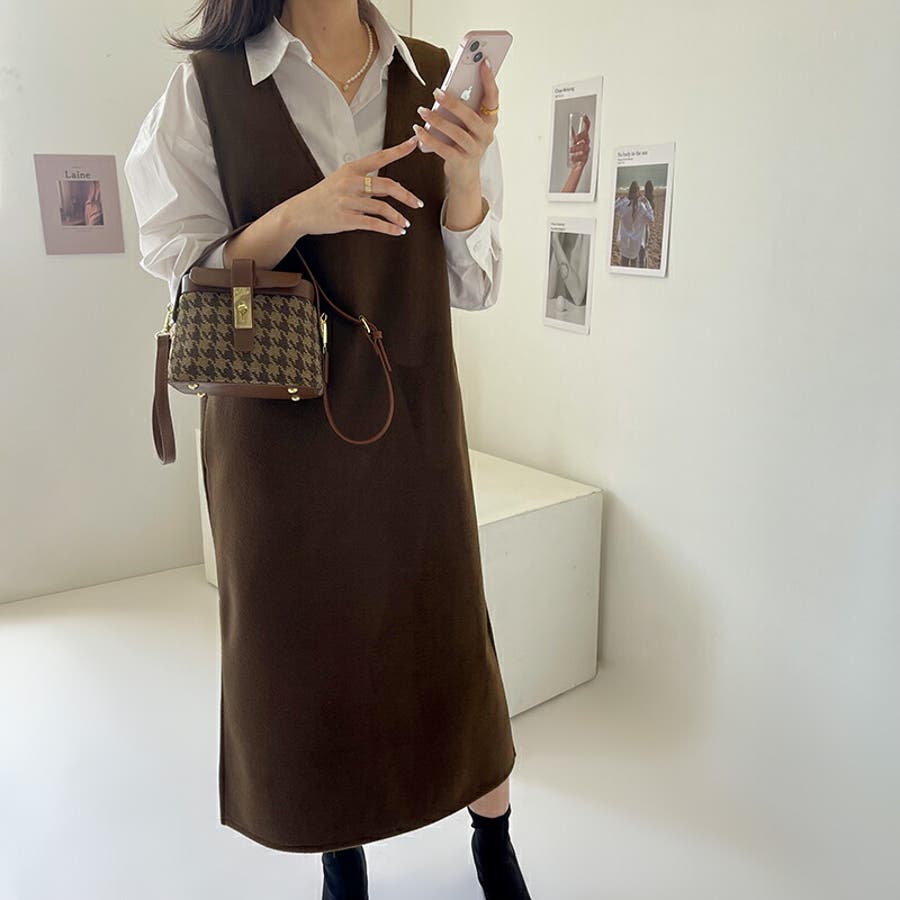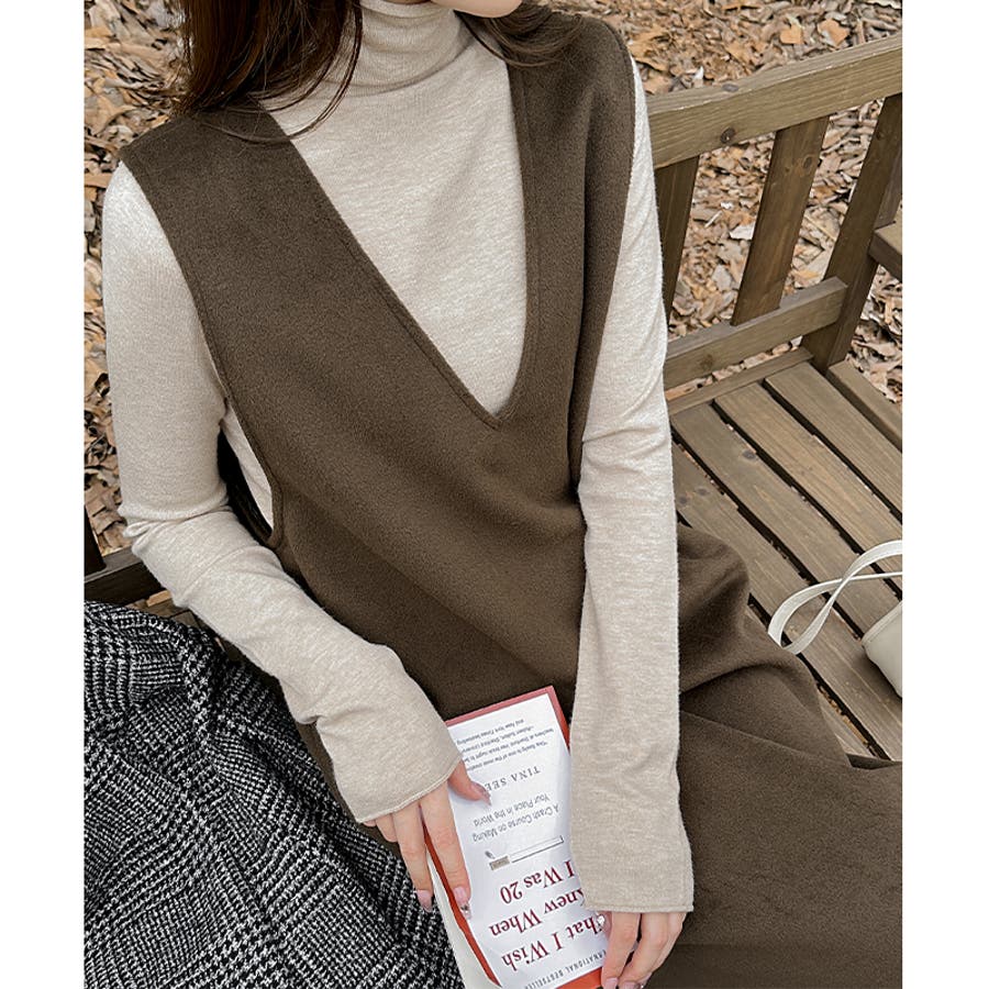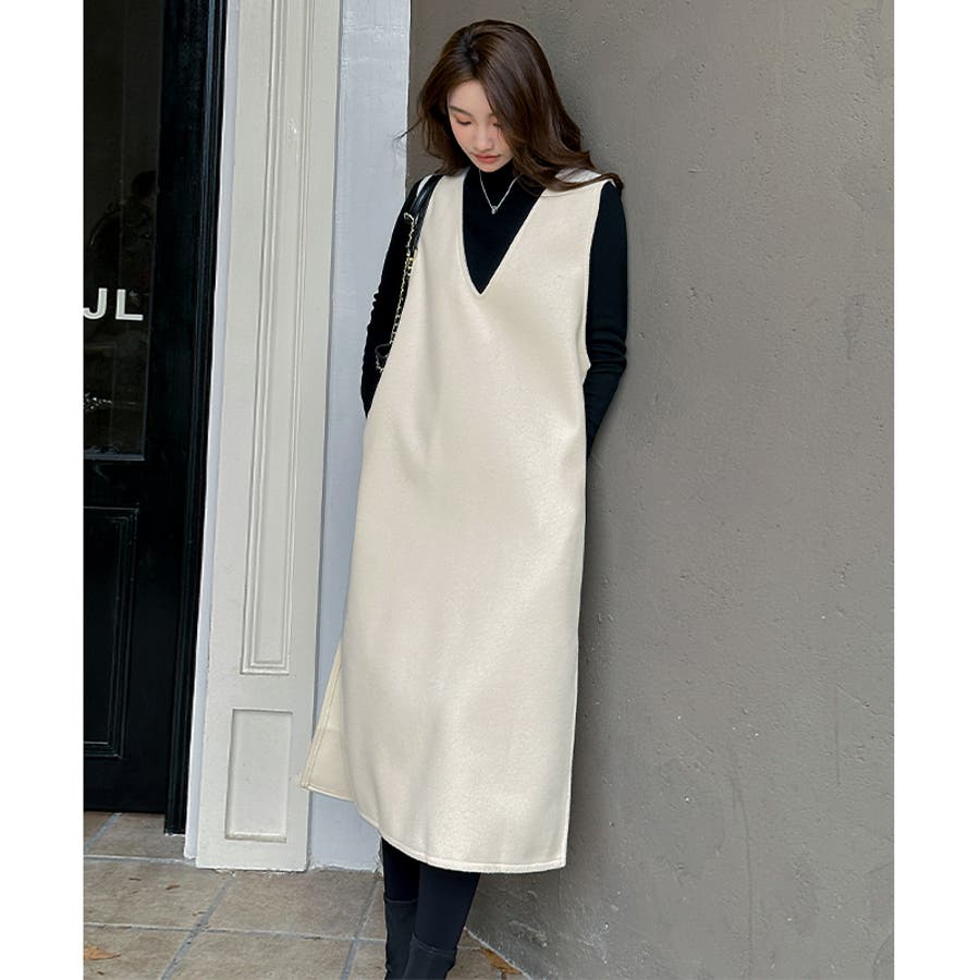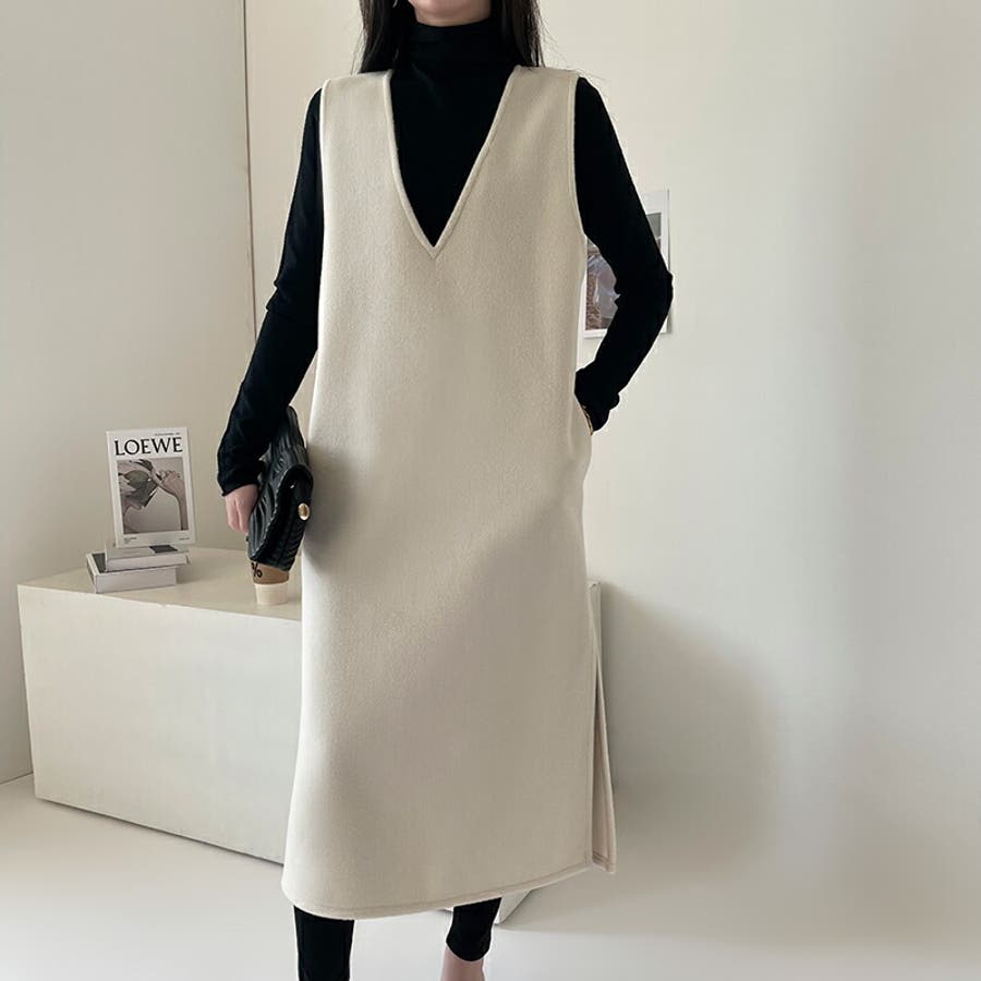 ジャンパースカート Vネックジャンパースカート Vネックワンピース ワンピース 秋冬 ジャンスカ ノースリーブ Vネック
