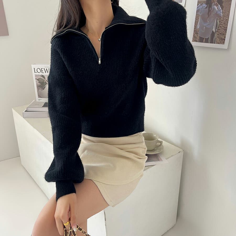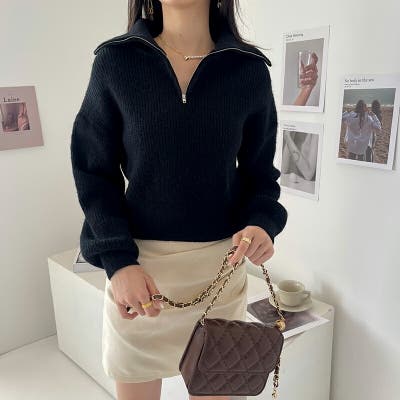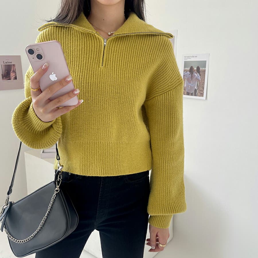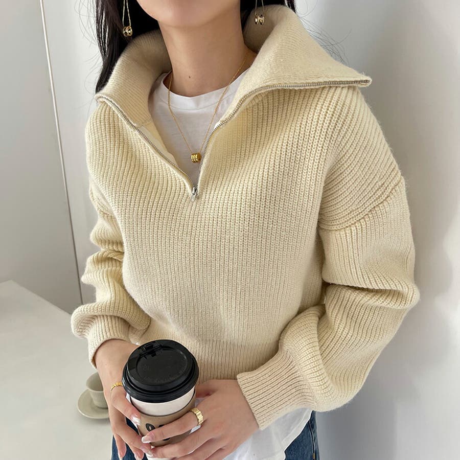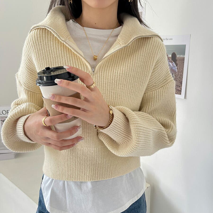 ニットセーター ハーフジップニット ショートニットプルオーバー