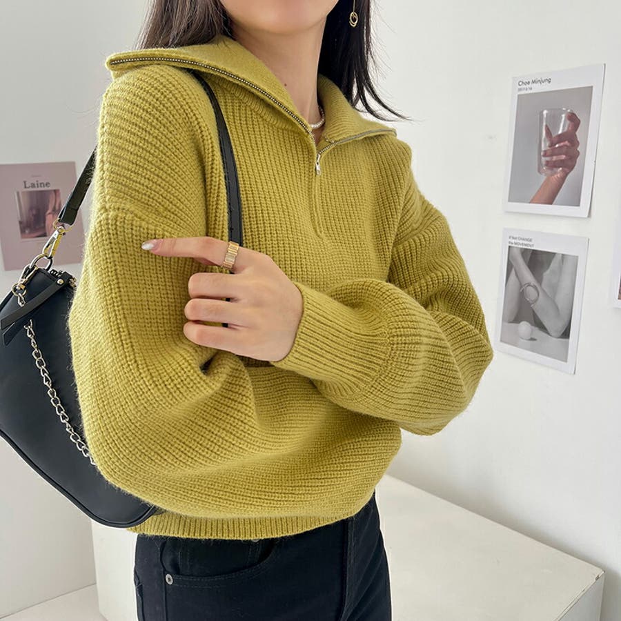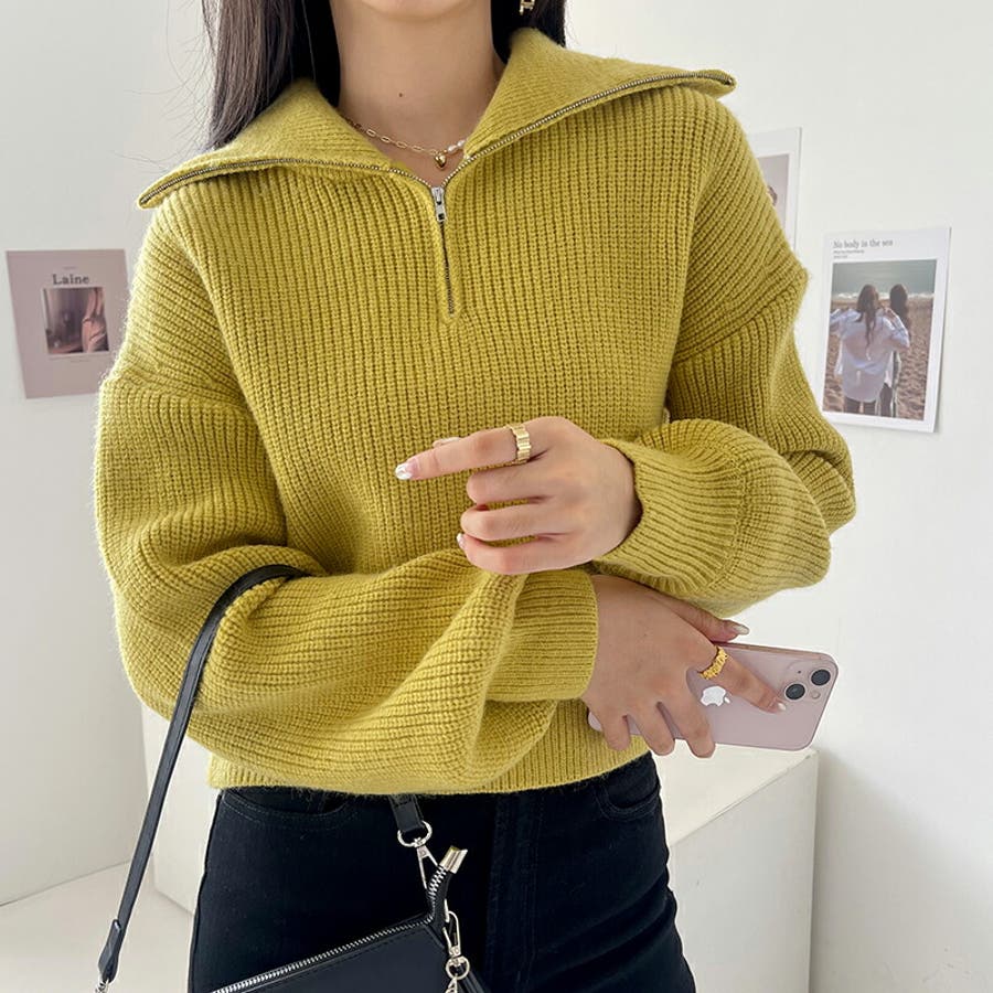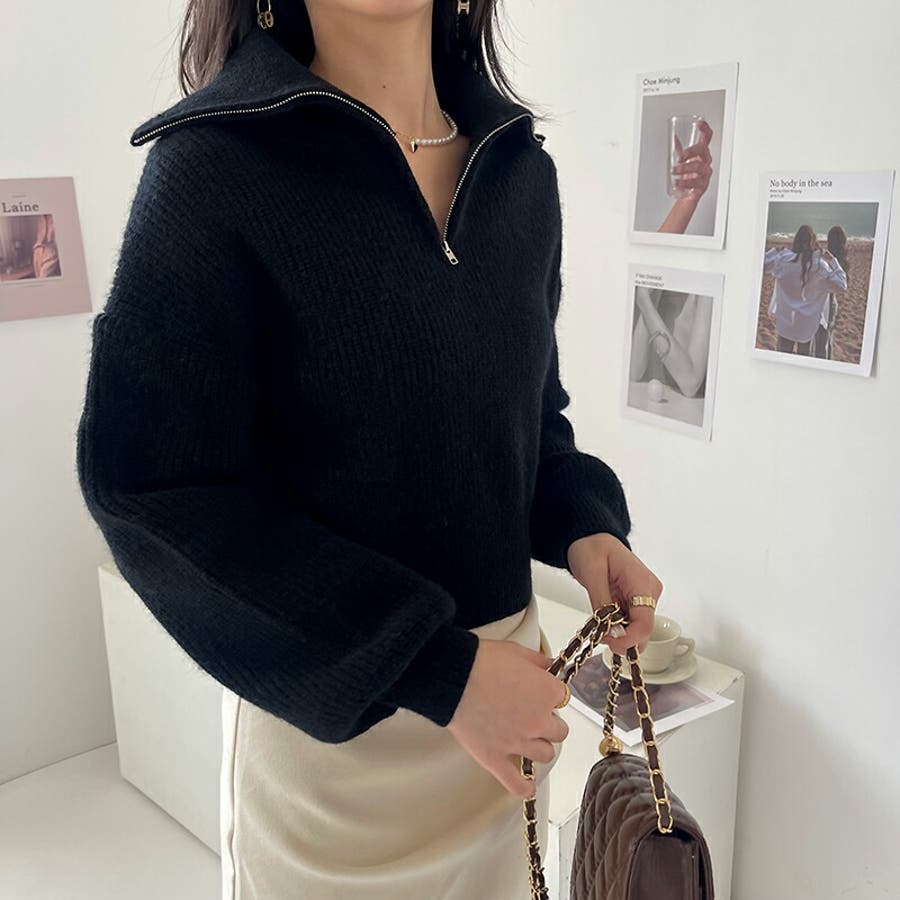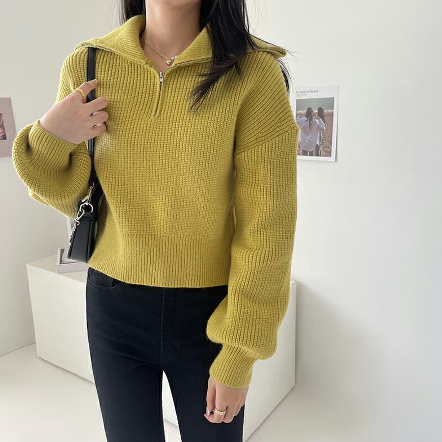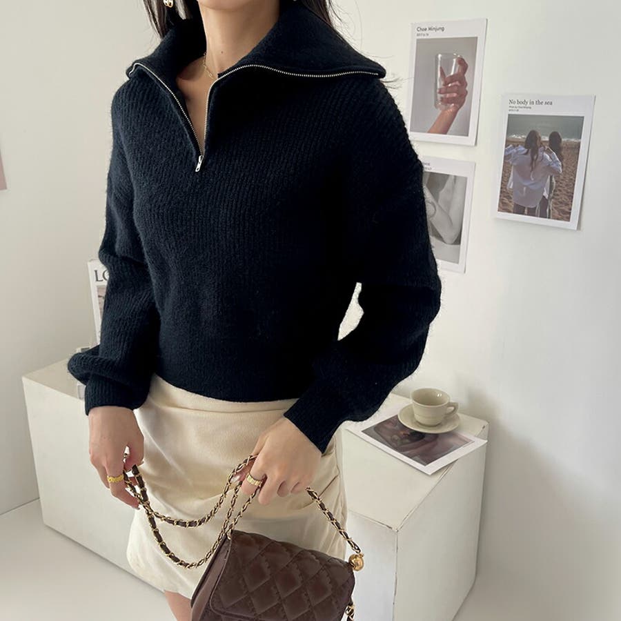 ニットセーター ハーフジップニット ショートニットプルオーバー