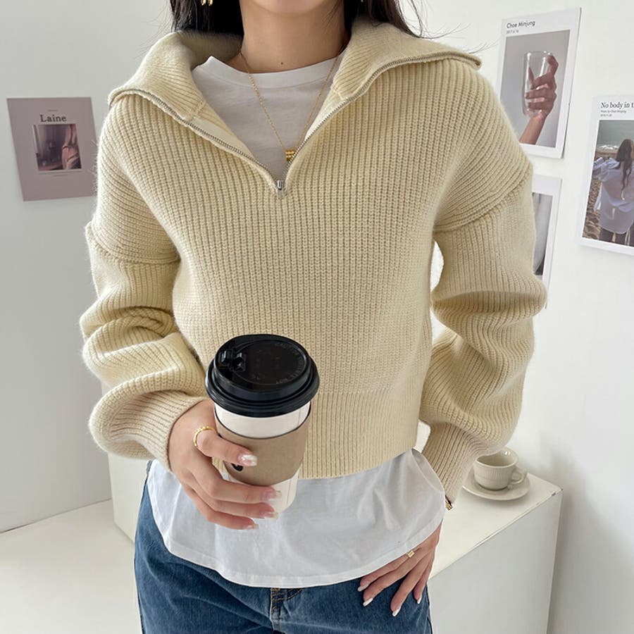 ニットセーター ハーフジップニット ショートニットプルオーバー ニット セーター ハーフジップ ショート丈トップス