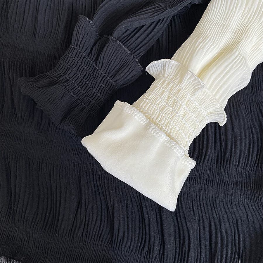上品 レイヤード 重ね着 通勤 通学 白 黒 春服 秋服 冬服 春 秋 冬 韓国 韓国ファッション