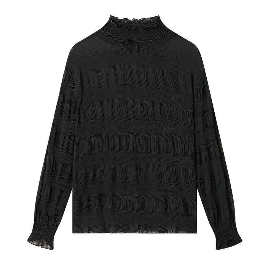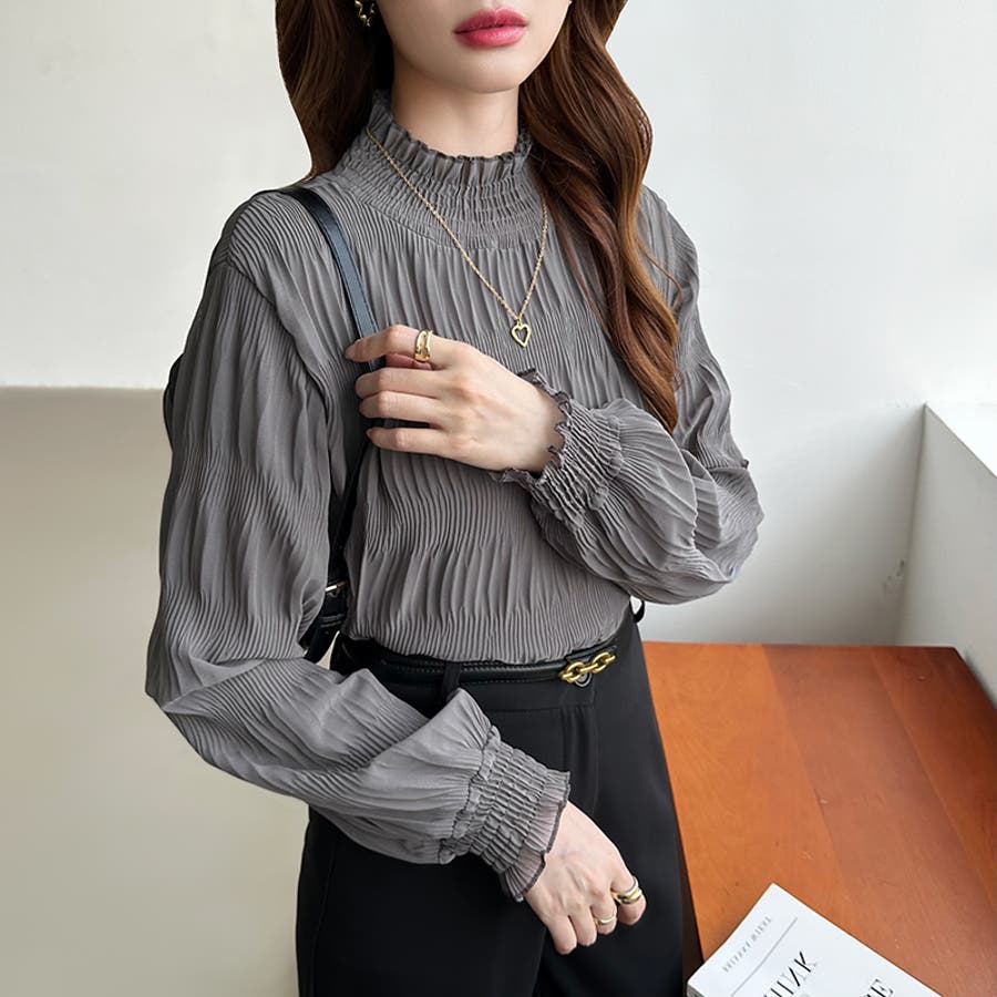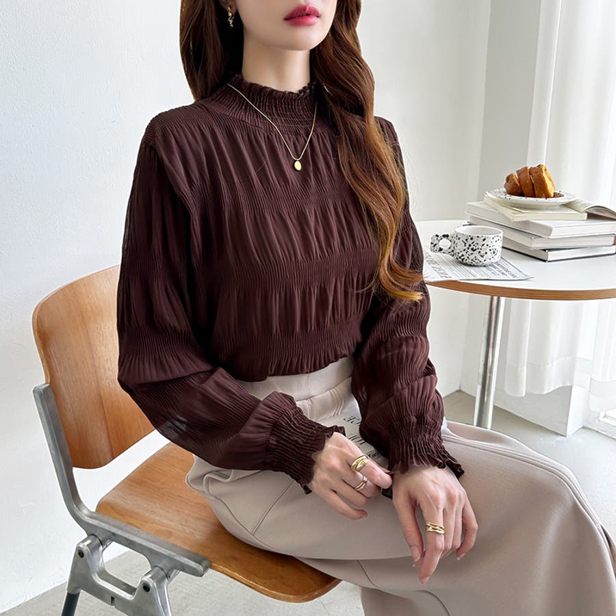長袖 秋冬 レディース トップス インナー シフォンブラウス レース ゆったり プリーツ 厚手