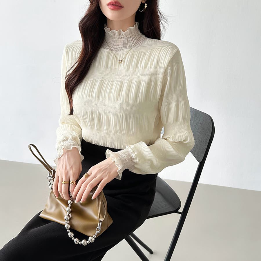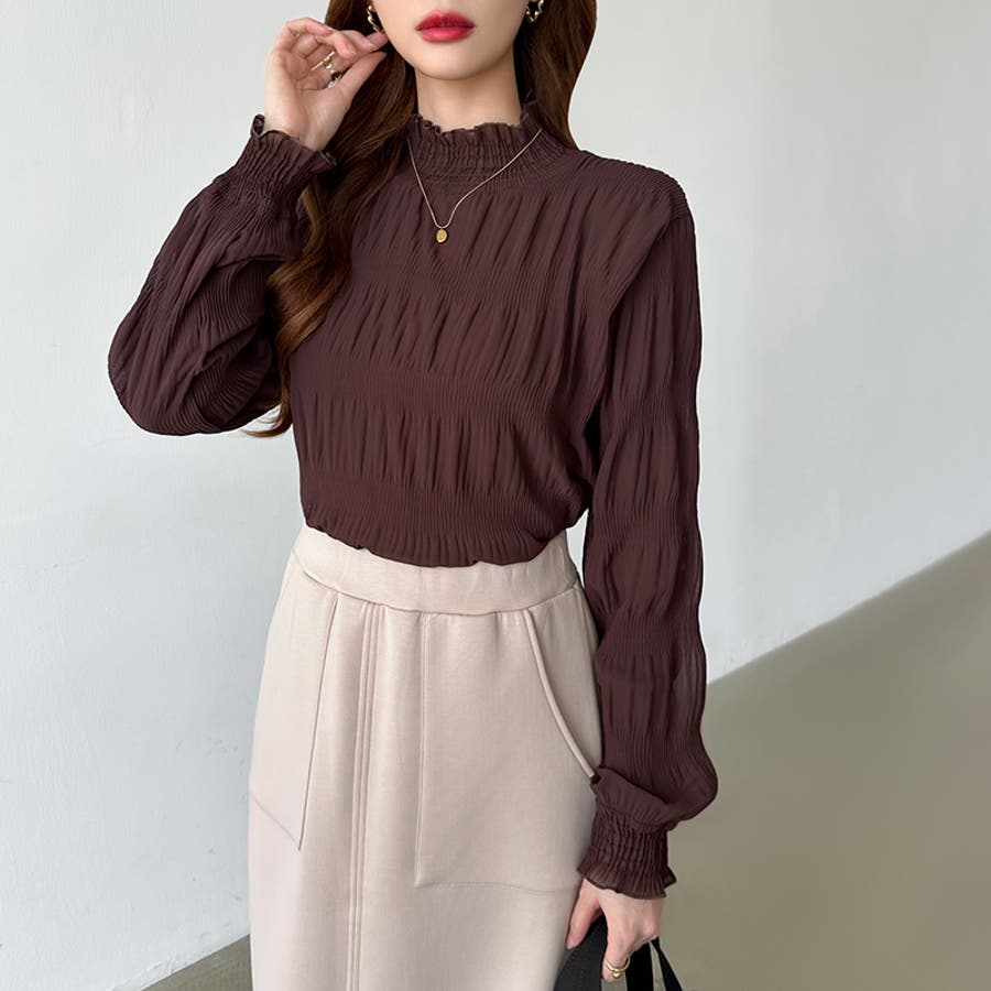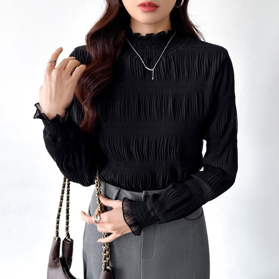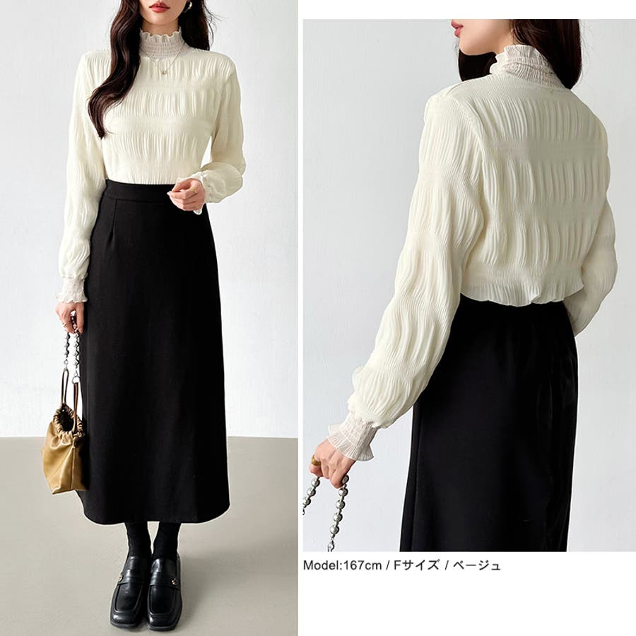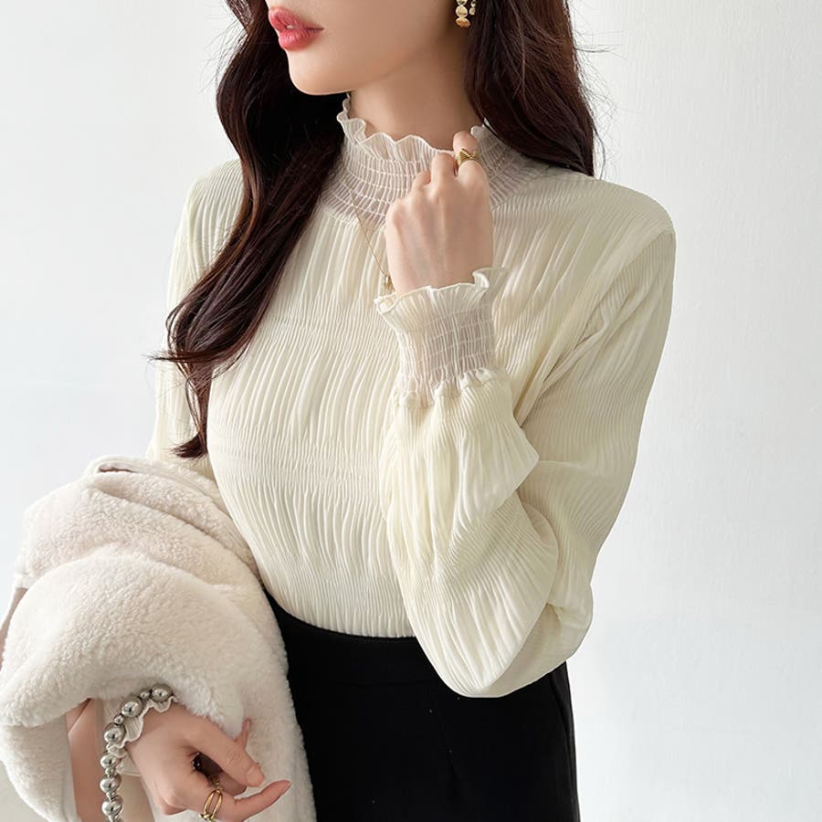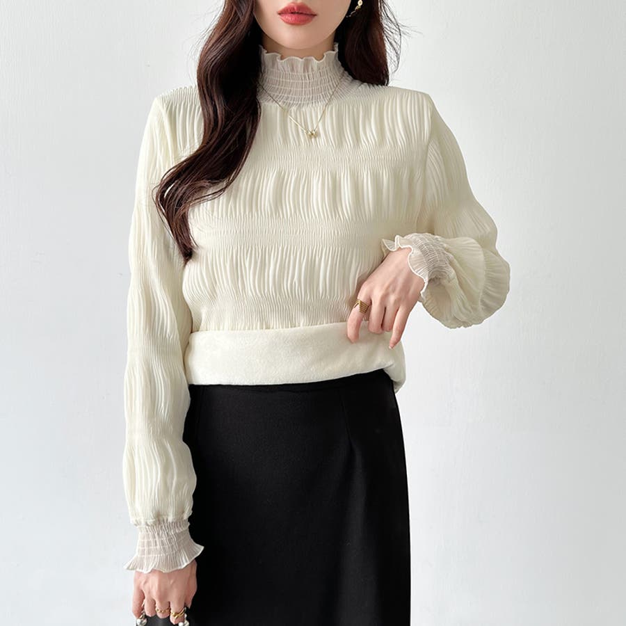 ブラウス 裏起毛フリルハイネック シャーリングフリルブラウス ハイネック フリル 裏起毛