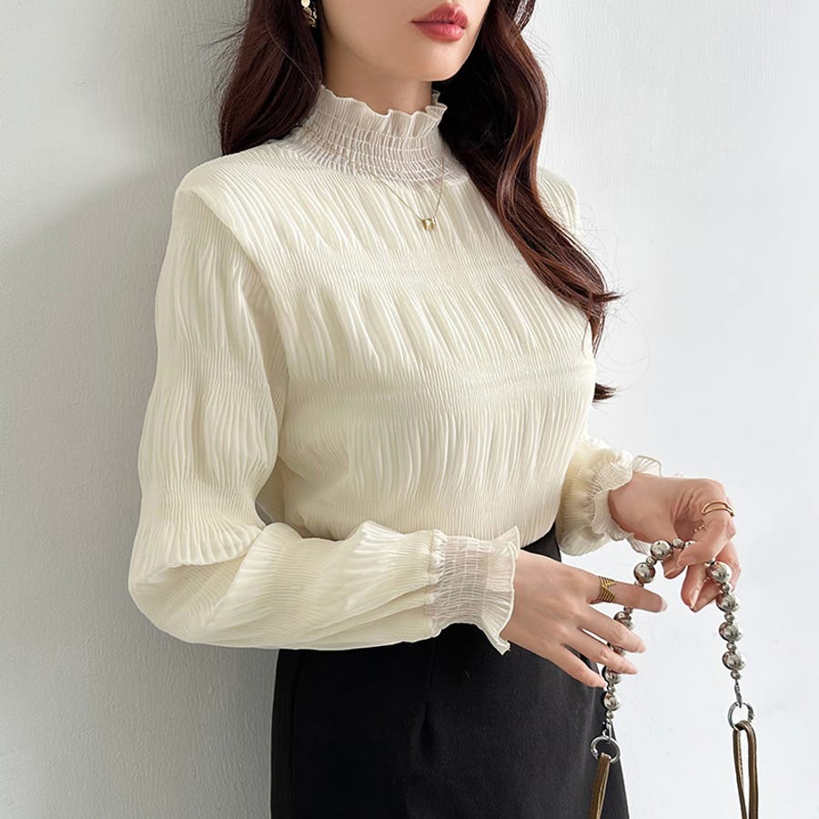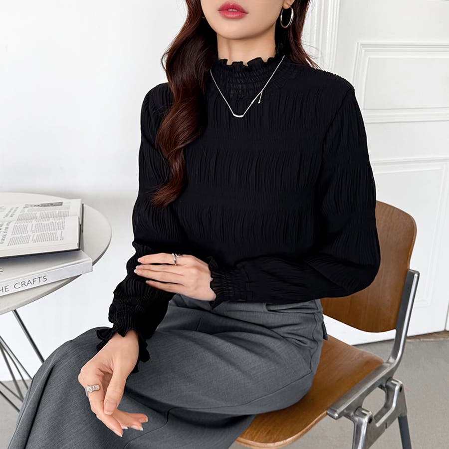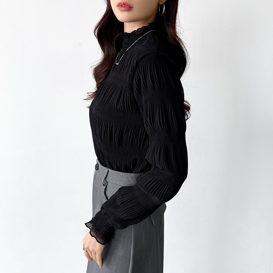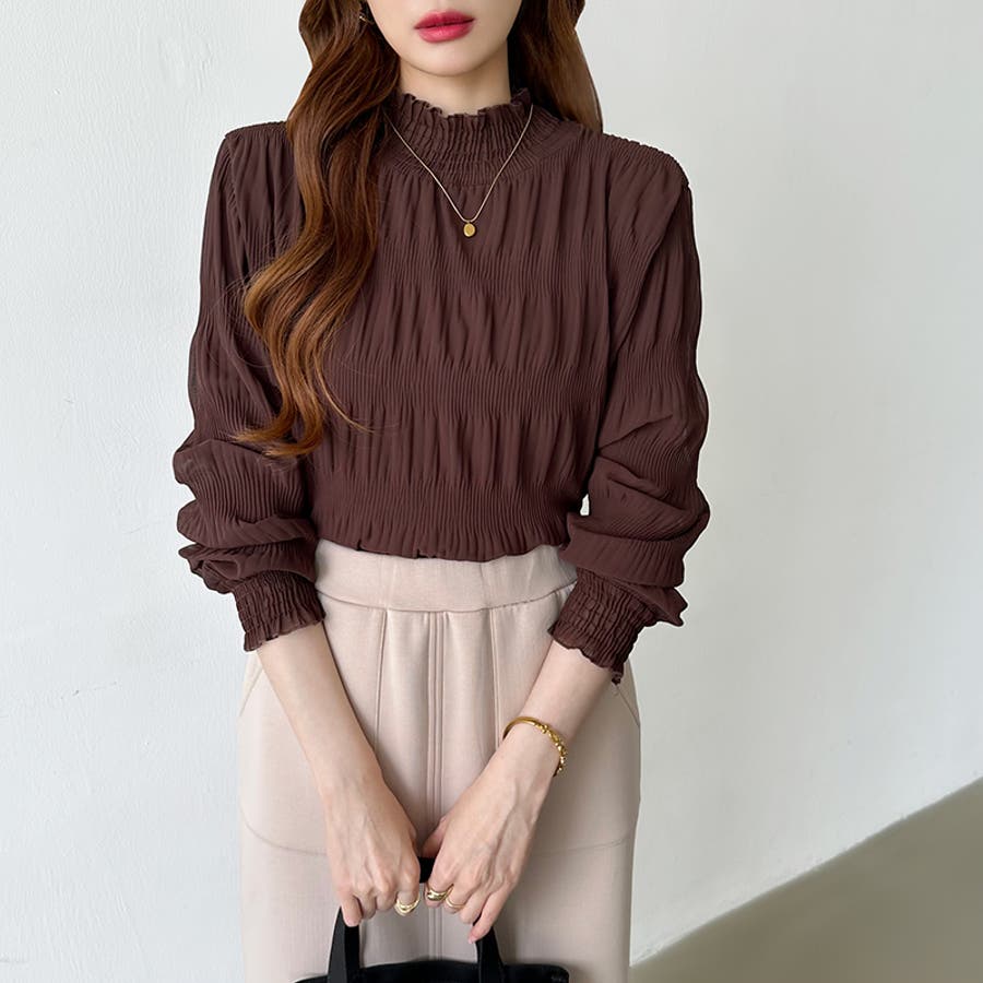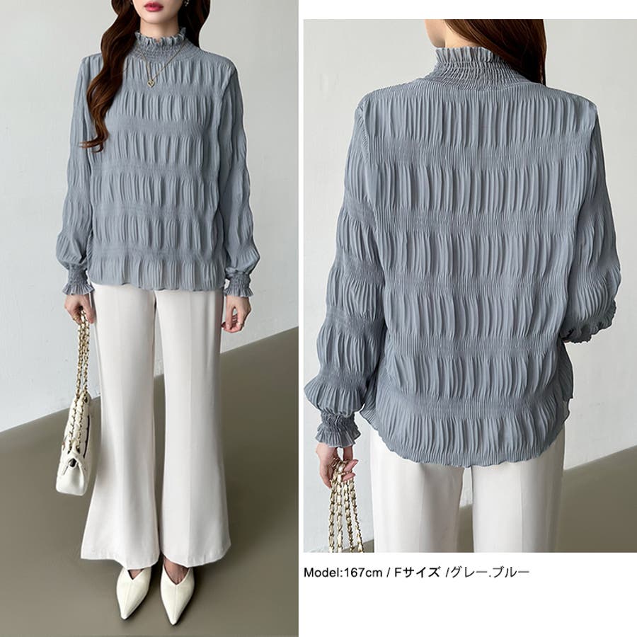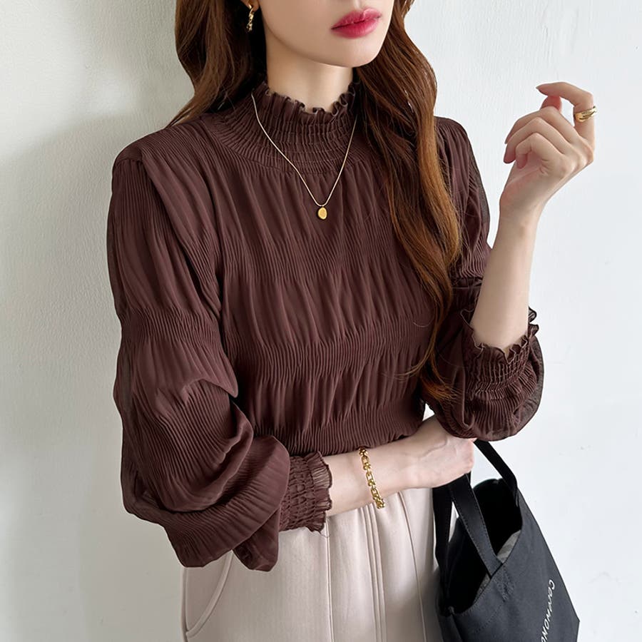 ブラウス 裏起毛フリルハイネック シャーリングフリルブラウス ハイネック フリル 裏起毛
