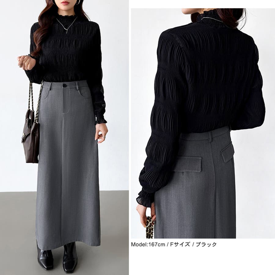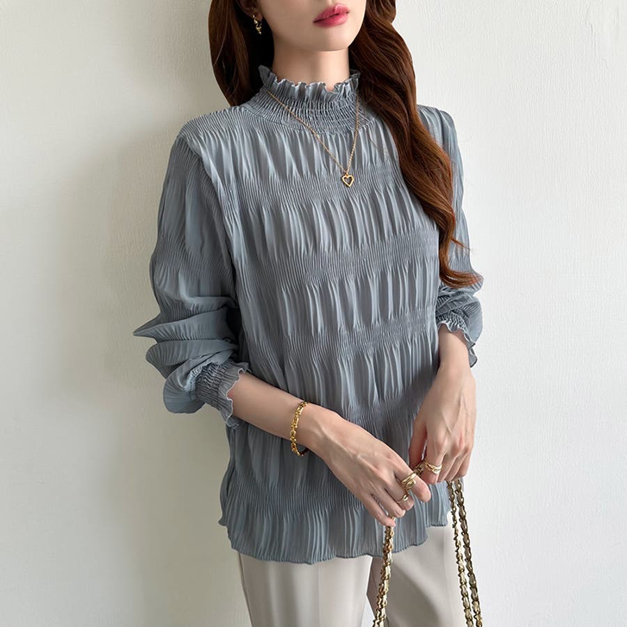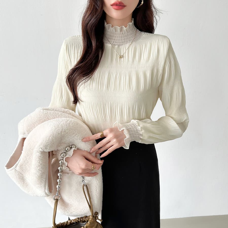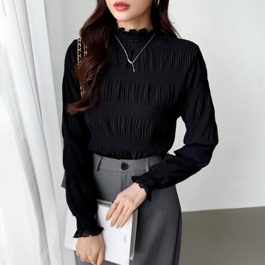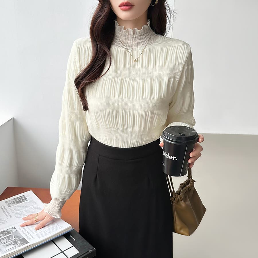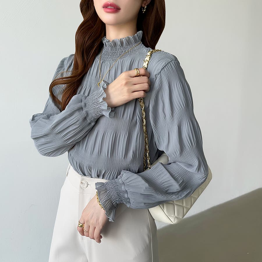 ブラウス 裏起毛フリルハイネック シャーリングフリルブラウス ハイネック フリル 裏起毛