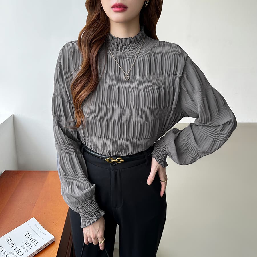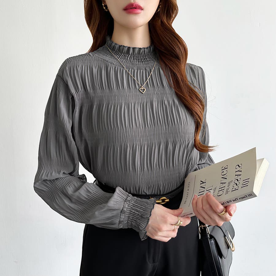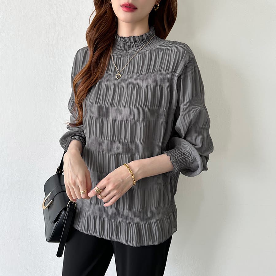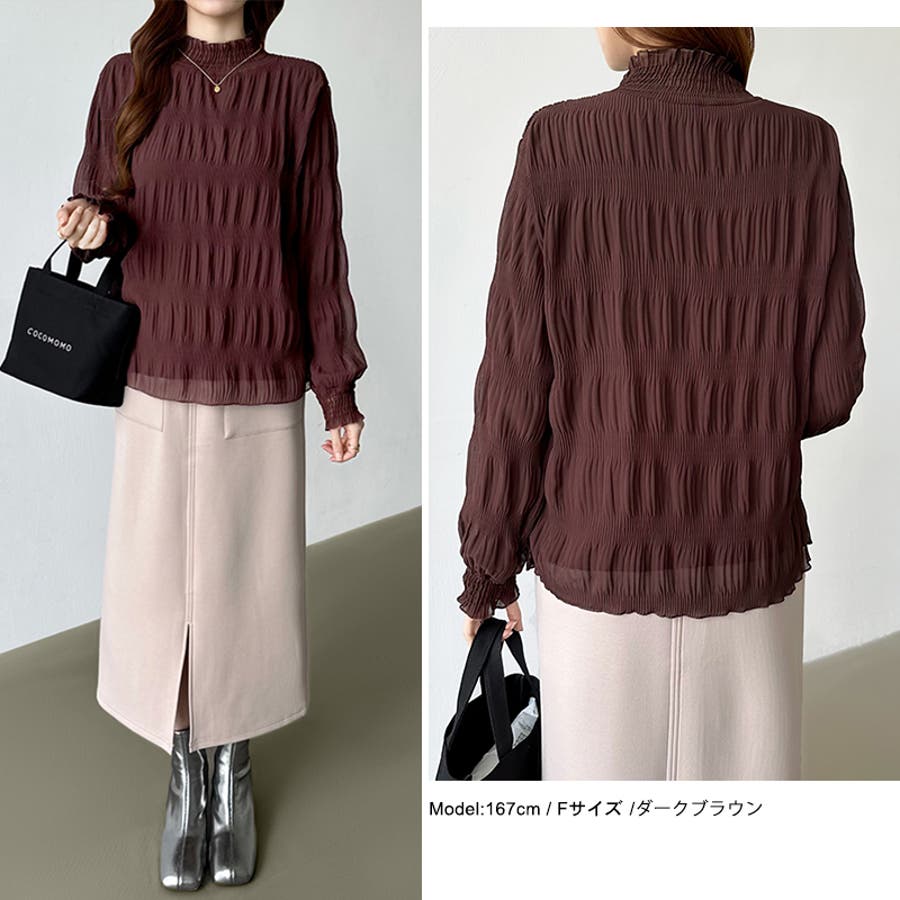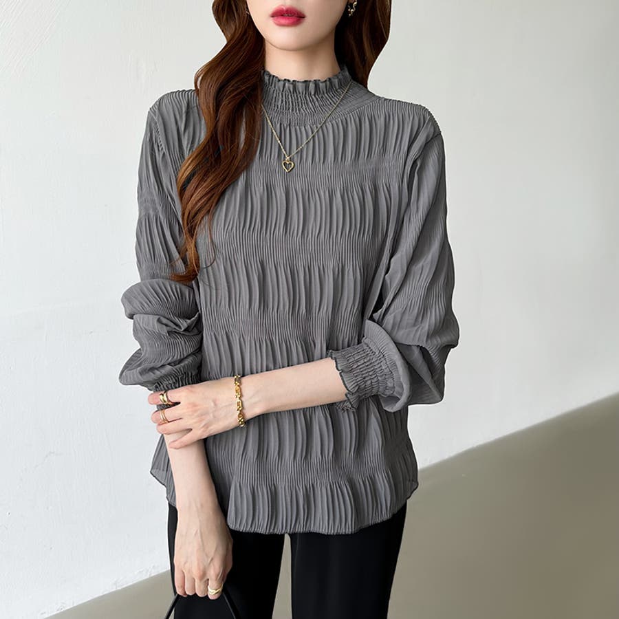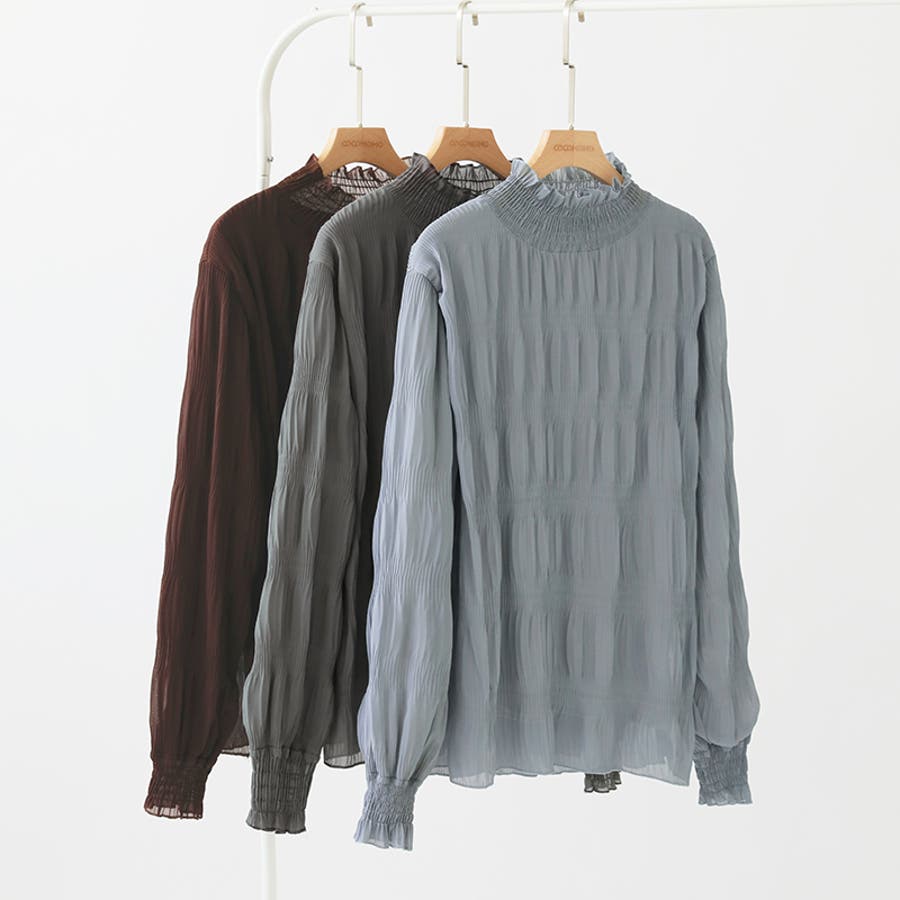 新色登場!裏起毛シャーリングブラウス ハイネックブラウス オフィスカジュアル