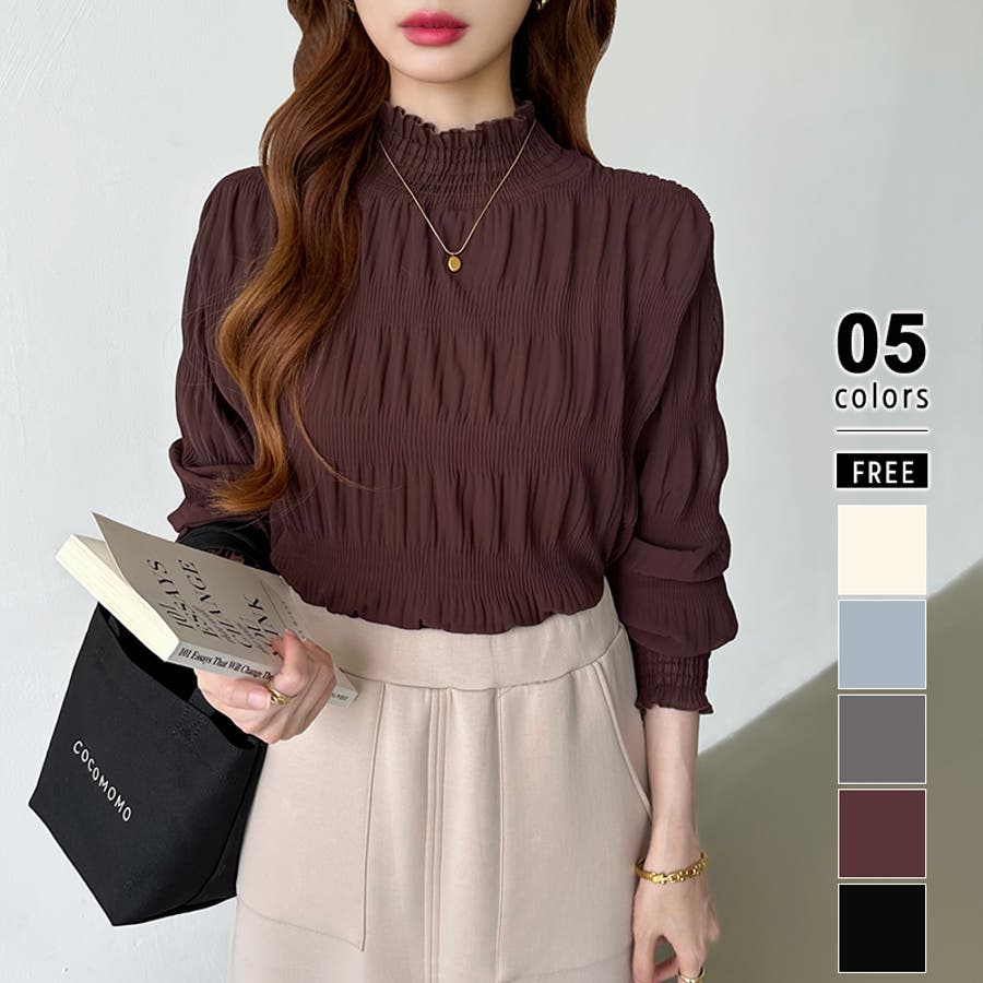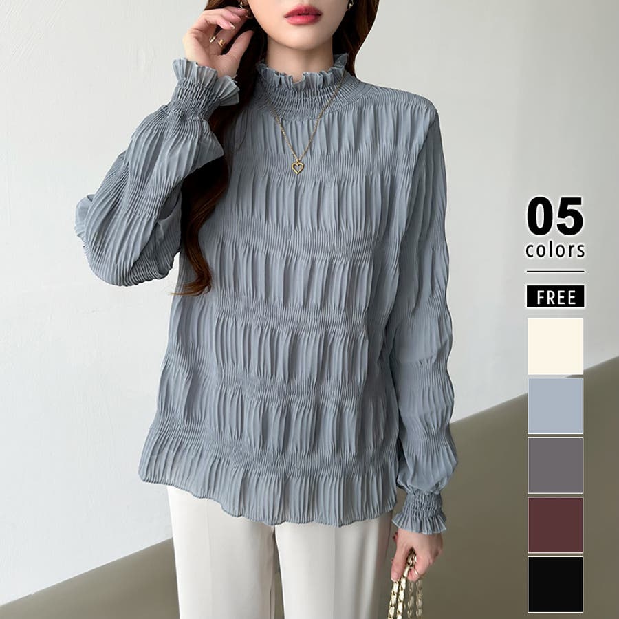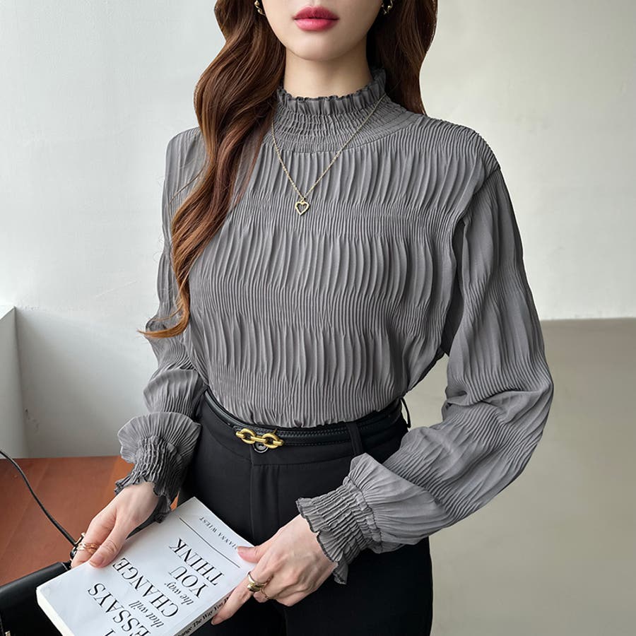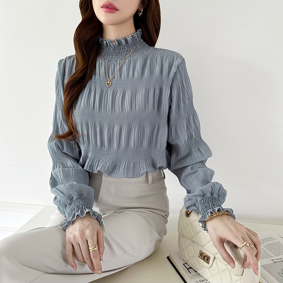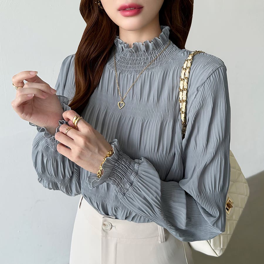 新色登場!裏起毛シャーリングブラウス ハイネックブラウス オフィスカジュアル