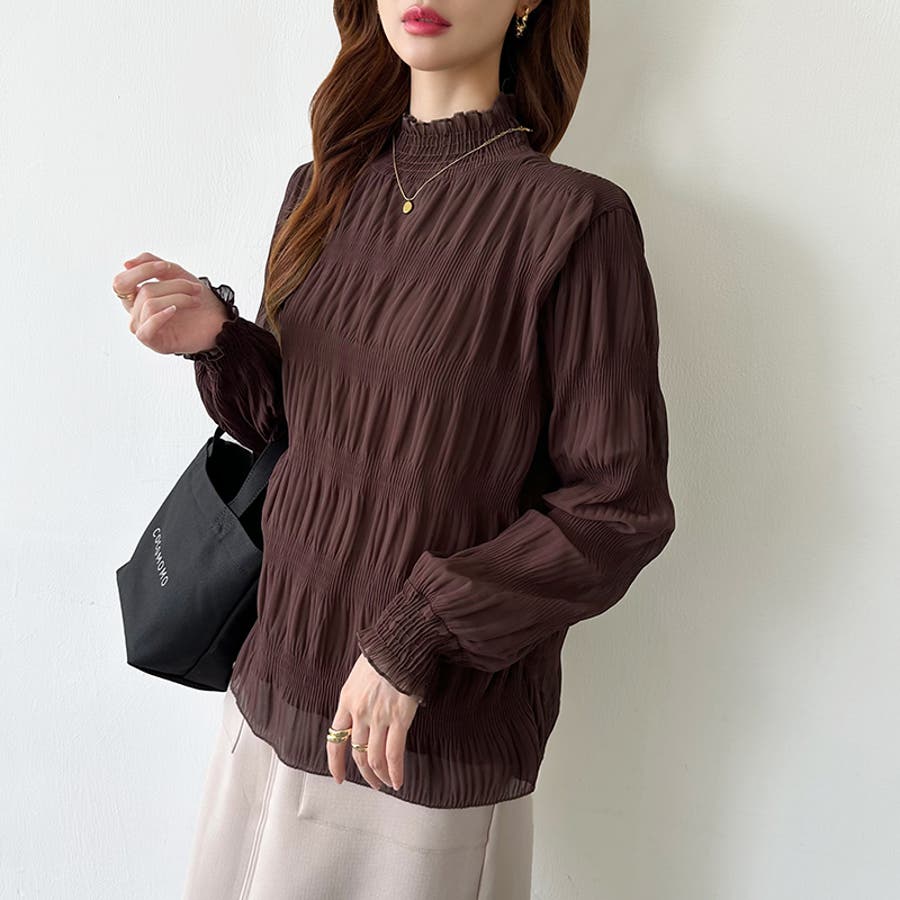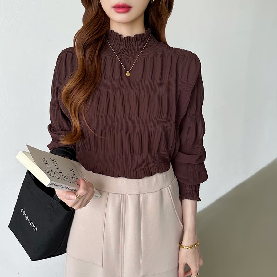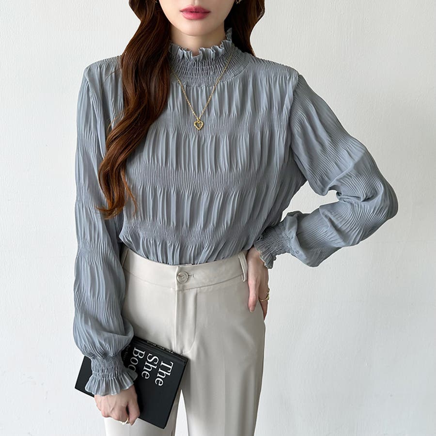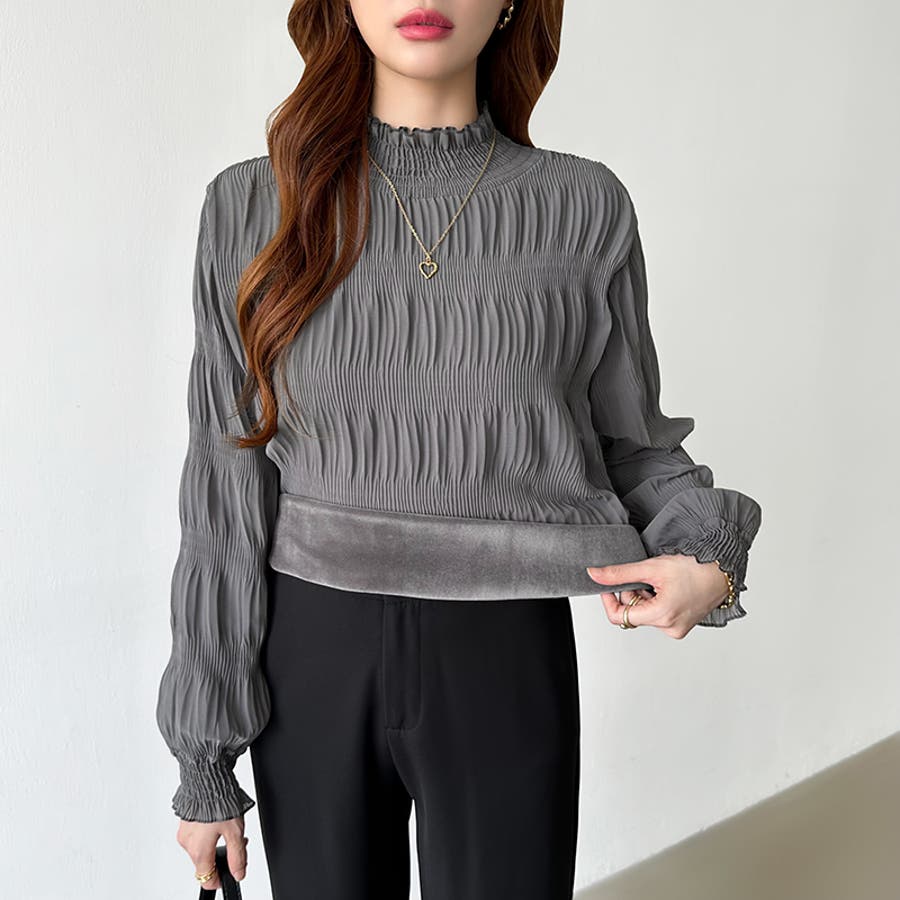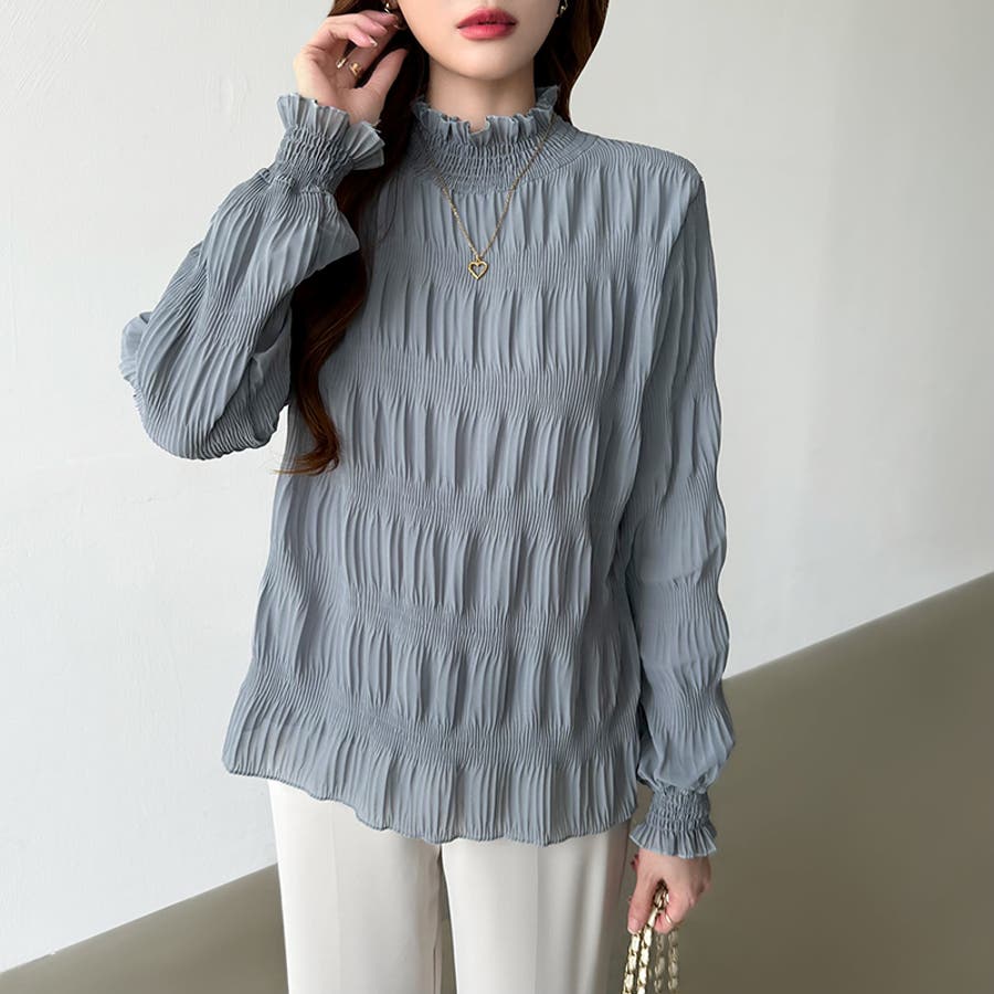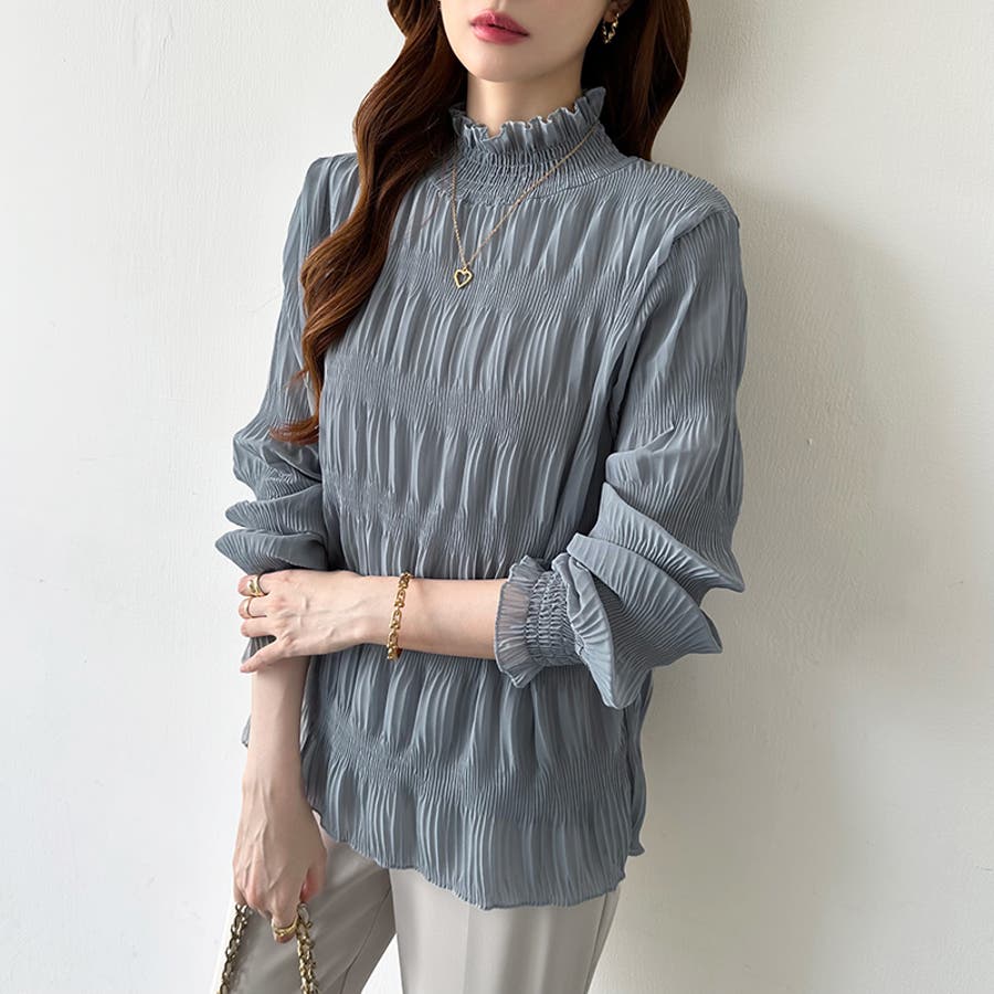 新色登場!裏起毛シャーリングブラウス ハイネックブラウス オフィスカジュアル