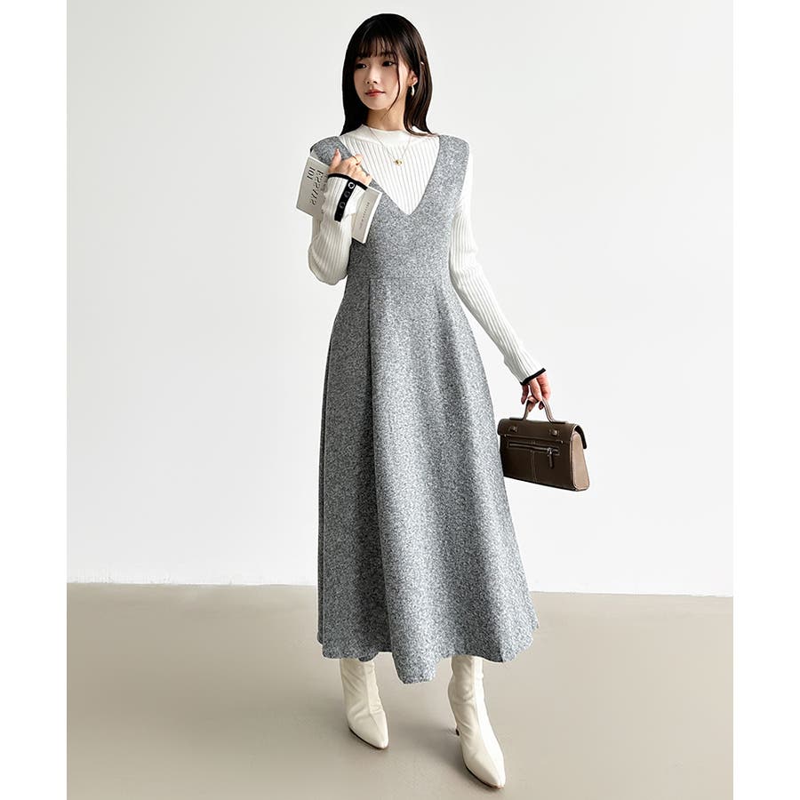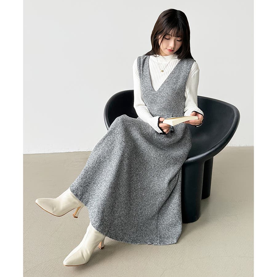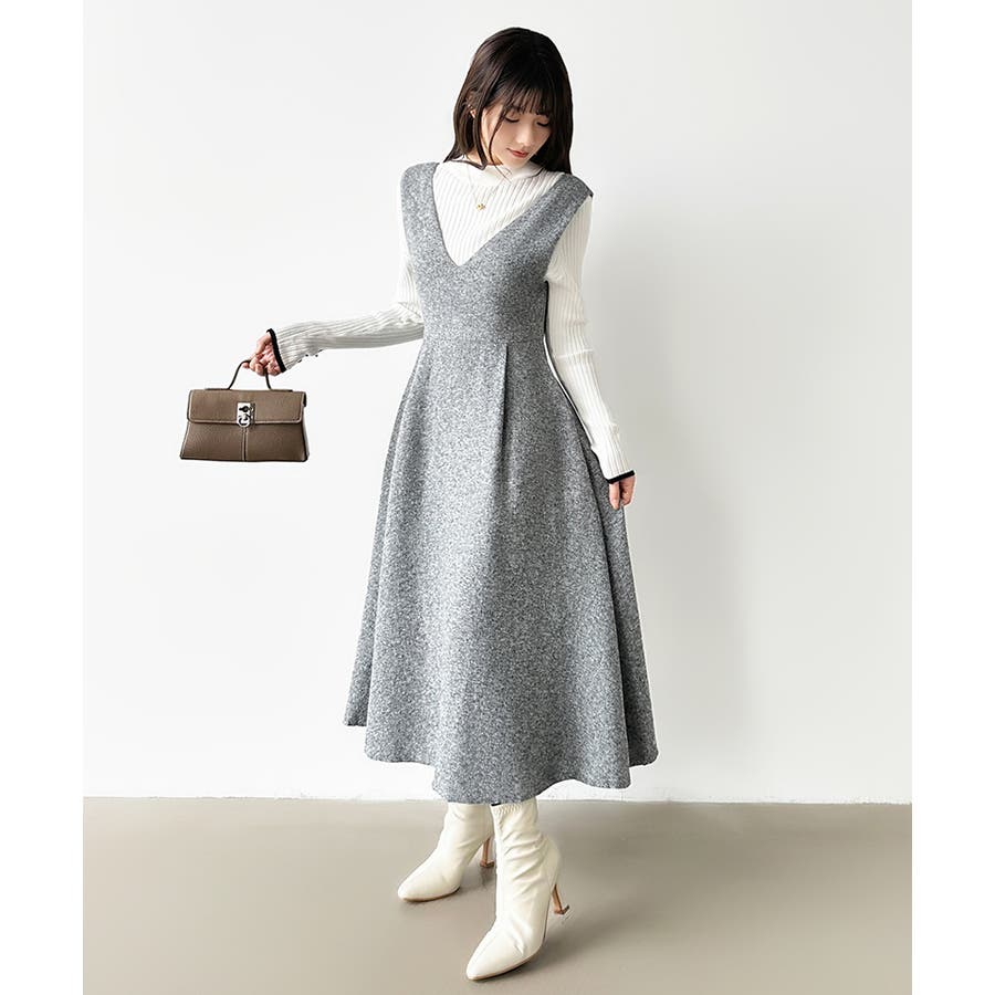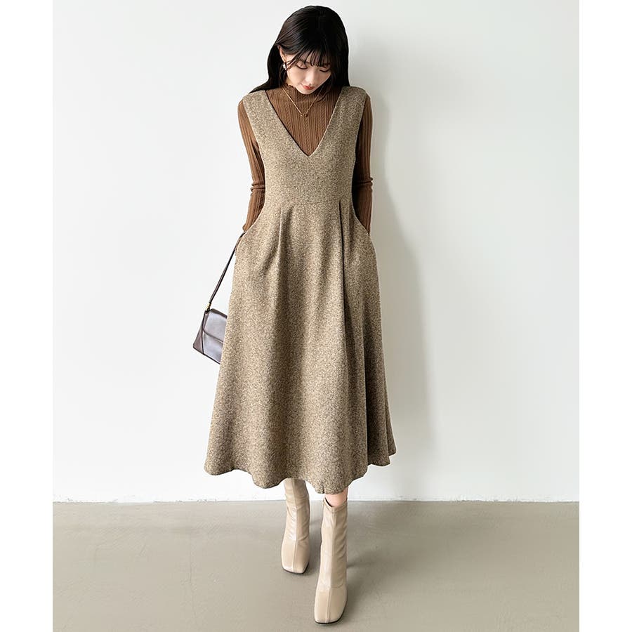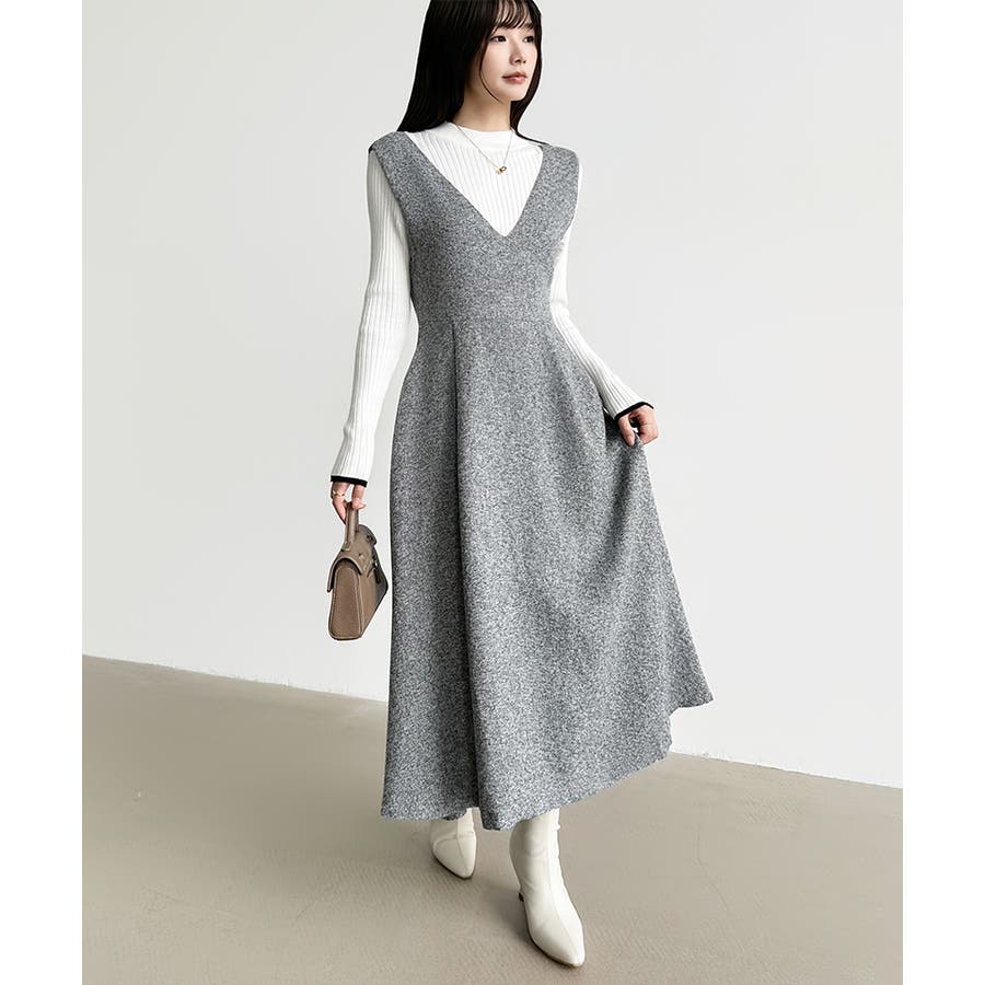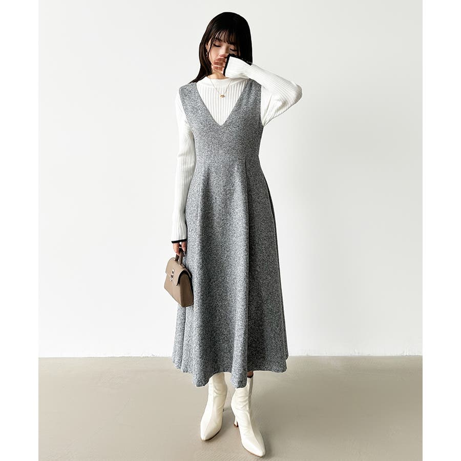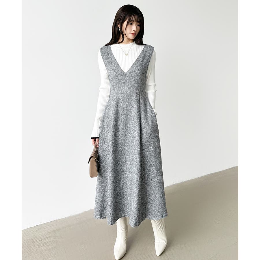 Vネックジャンスカワンピース。