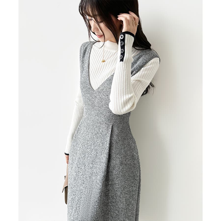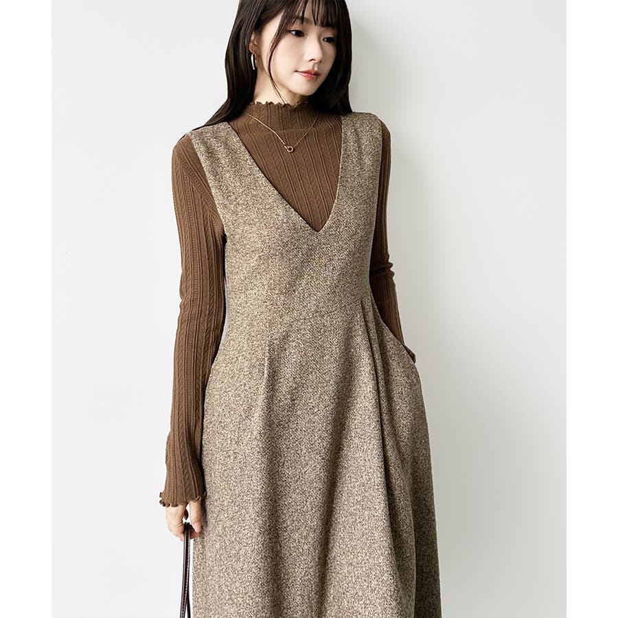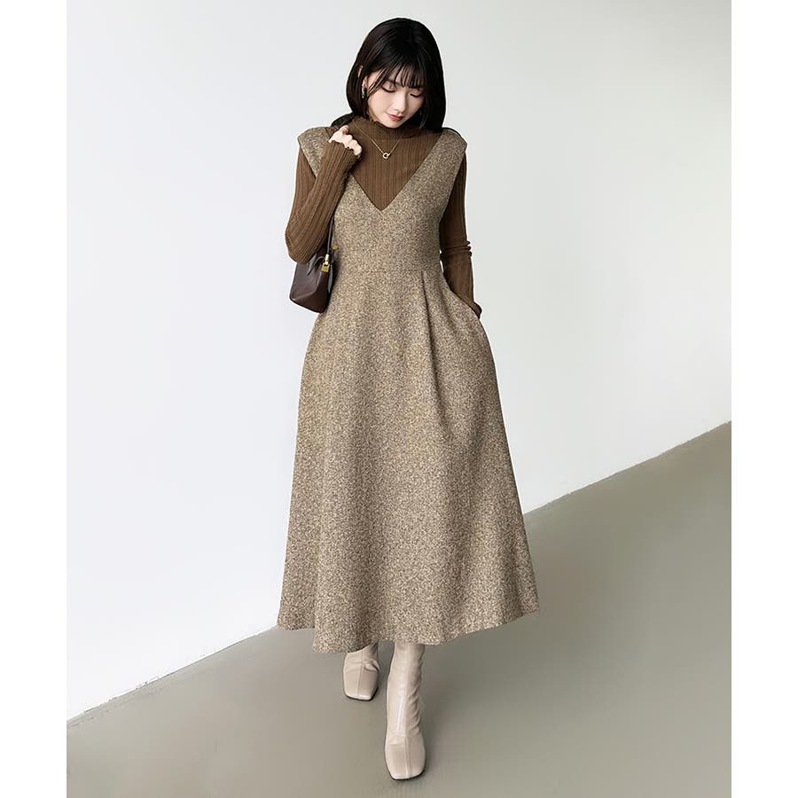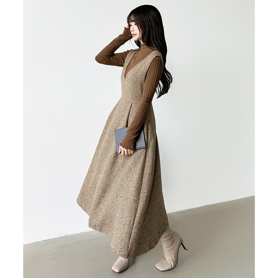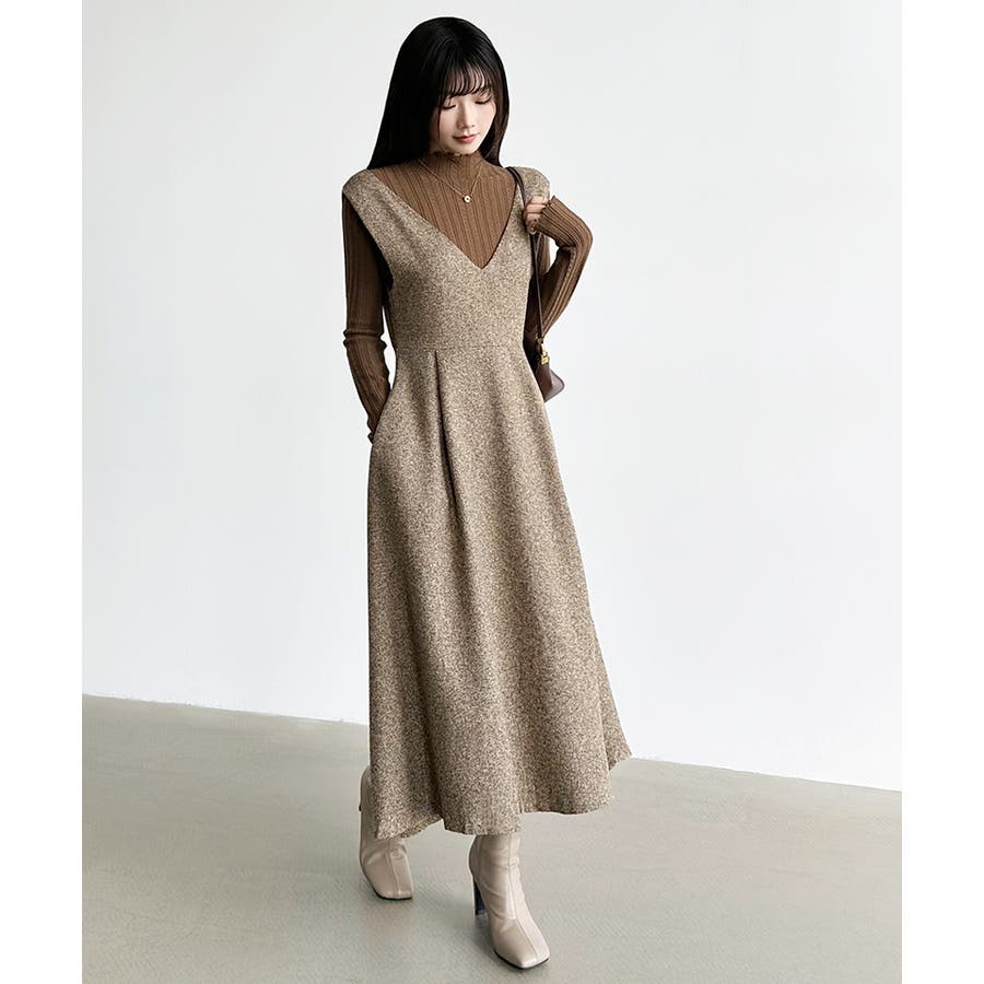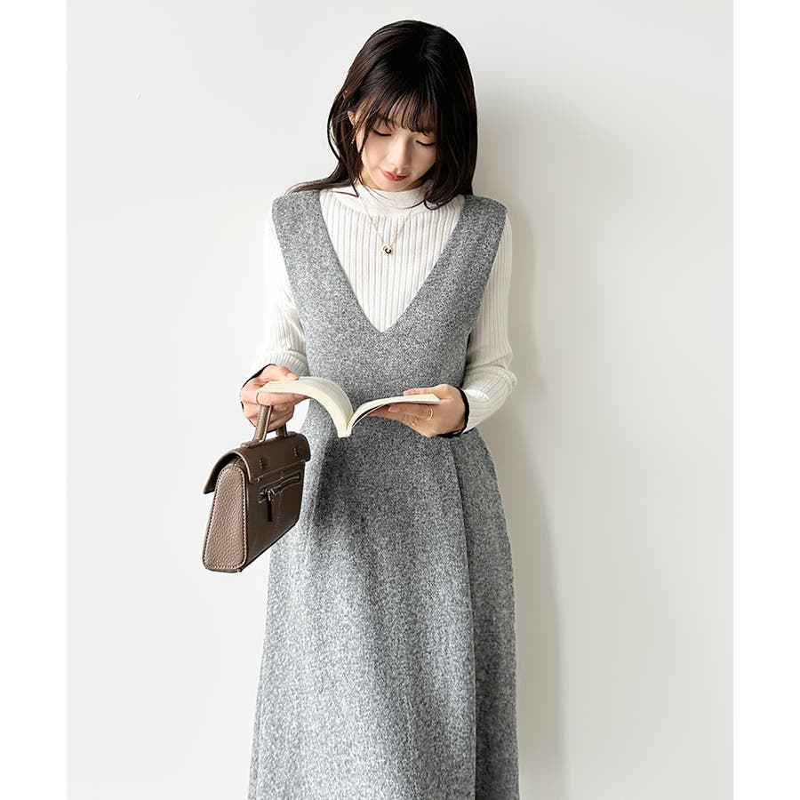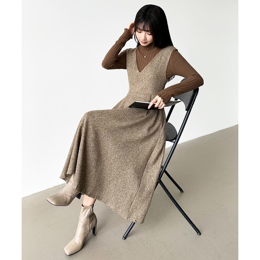 Vネックジャンスカワンピース。