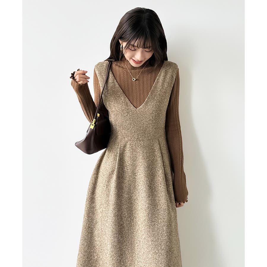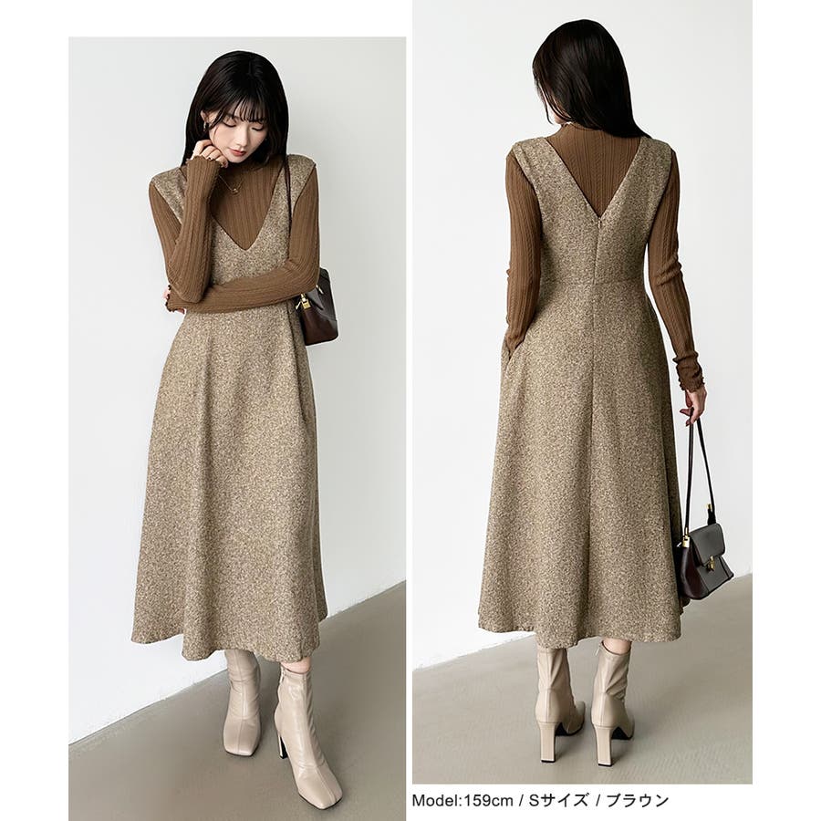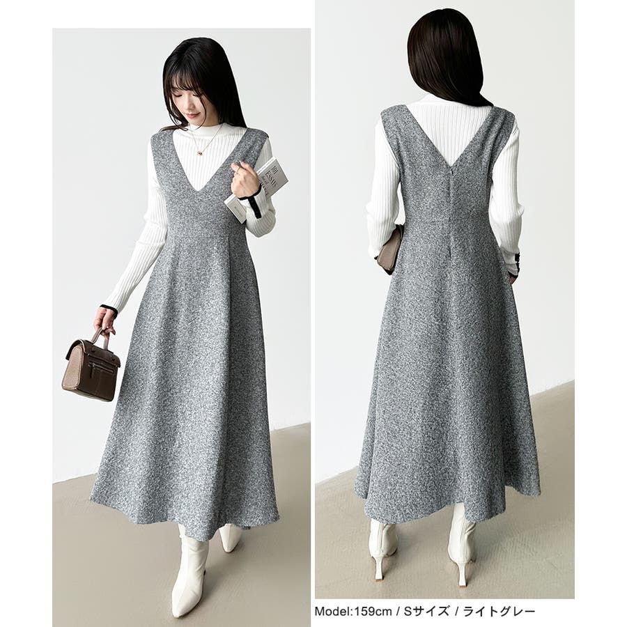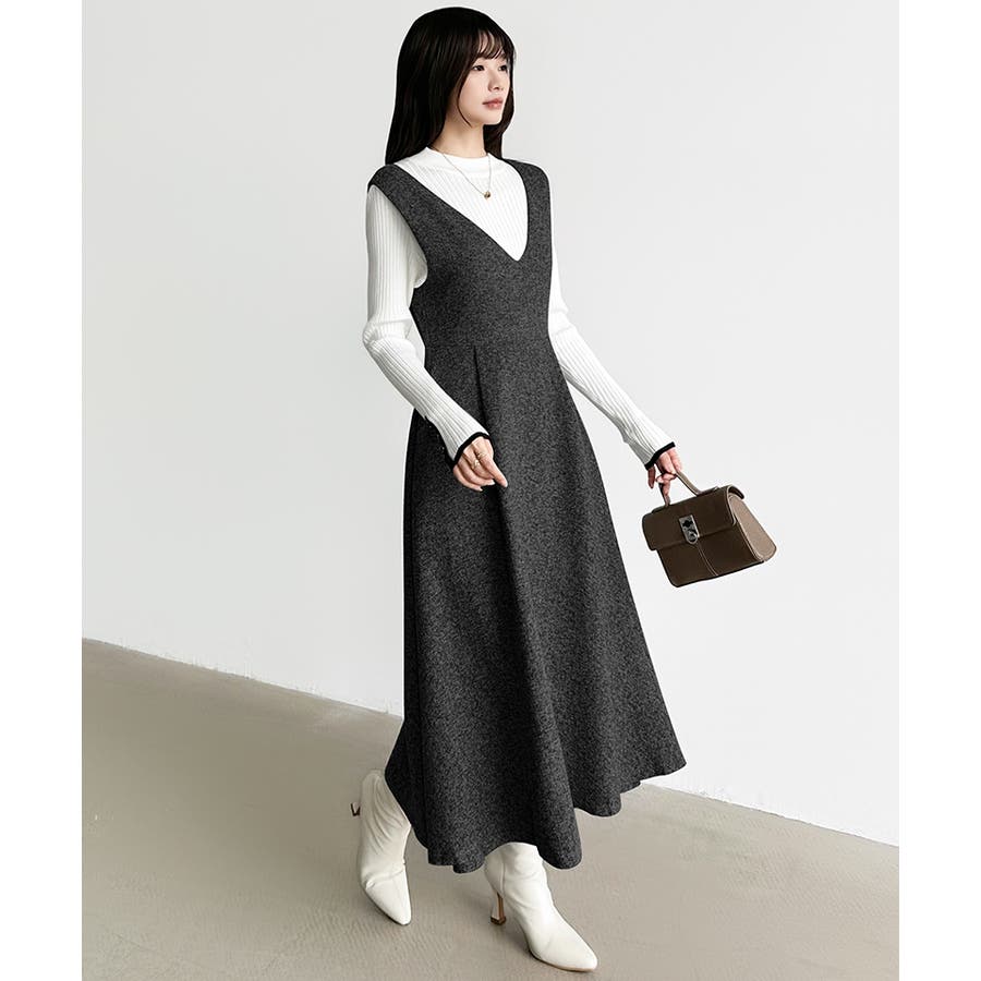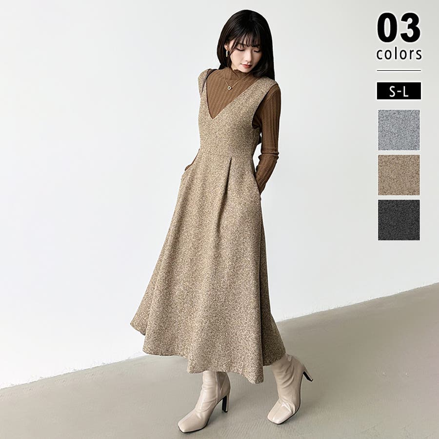 ジャンパースカート Vネックワンピース ワンピース レディース ワンピース ロングワンピース ロング丈 ジャンスカ オールインワン Vネック ワンピ ノースリーブ フレア フレアスカート 秋冬 体型カバー ゆったり 大きいサイズ Aライン 重ね着 レイヤード シンプル 無地 オフィス オフィスカジュアル カジュアル きれいめ 大人 かわいい 楽ちん プチプラ 高見え ママコーデ S M L 茶 灰 黒 秋 冬 秋服 冬服 韓国 韓国ファッション 20代 30代 40代 50代 cocomomo ココモモ