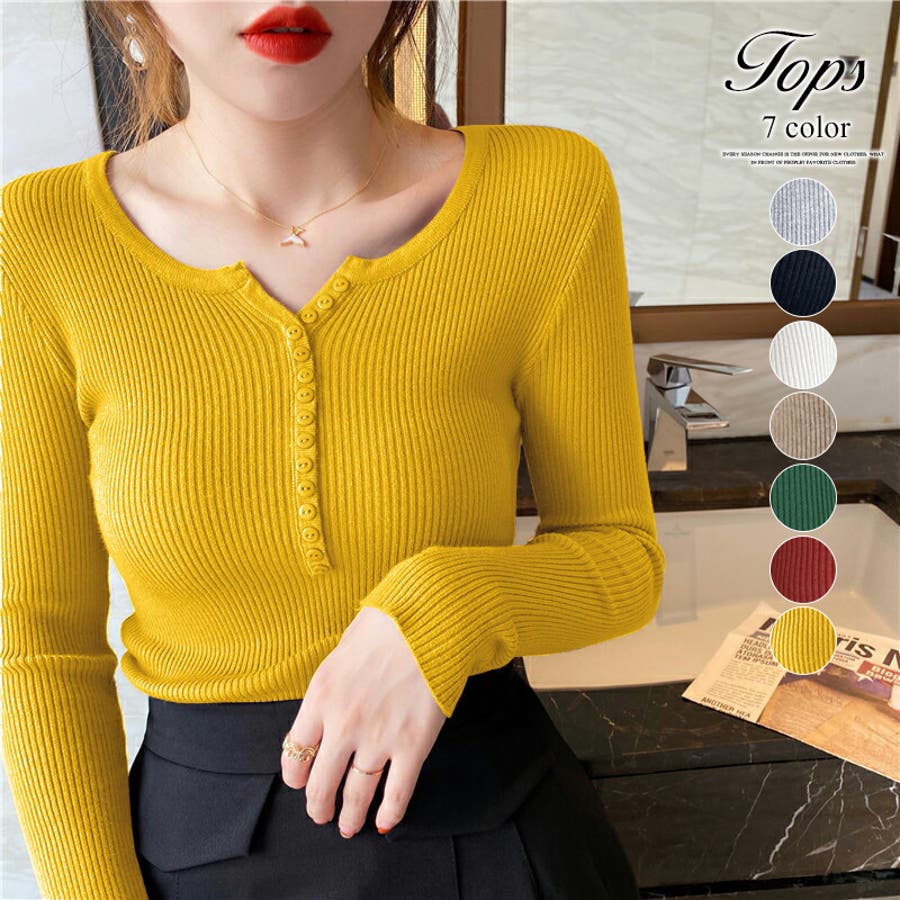 ニット 長袖ニット リブニット レディース トップス 長袖 ニットソー ヘンリーネック ラウンドネック ロング 袖 リブ 生地 ボタン インナー セーター タイト フィット 長袖tシャツ プルオーバー セクシー ロング袖 萌え袖 伸縮性 ストレッチ シンプル 無地 フリーサイズ 着回し チクチク しない やわらかい やわらか ソフトな肌触り オフィス オフィスカジュアル カジュアル きれいめ 大人 かわいい おしゃれ 上品 通勤 通学 プチプラ 高見え 定番 灰 黒 白 薄茶 緑 赤 黄 秋冬 春服 秋服 冬服 春 秋 冬 韓国 韓国ファッション 20代 30代 40代 50代 cocomomo ココモモ
