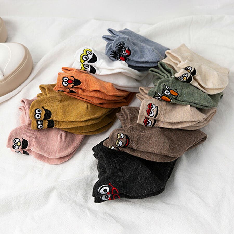 靴下 キャラクターソックス くるぶしソックス レディース くつした キャラクター ソックス くるぶし くるぶしソックス ショートソックス ショート スニーカーソックス みせ靴下 綿混 綿 コットン ポリエステル 脱げにくい 蒸れない 刺繍 立体 ワンポイント かかと 女性 かわいい おしゃれ 大人 カジュアル 淡色 くすみカラー カラフル 茶 橙 緑 薄茶 肌色 桃色 灰 黄 白 黒 秋冬 春 夏 秋 冬 韓国 韓国ファッション 10代 20代 30代 40代 50代 cocomomo ココモモ