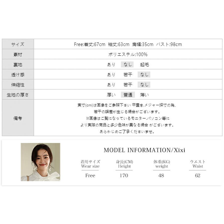 | サイズ | Free: 着丈 67cm 袖丈 63cm 肩幅 35cm バスト 98cm |