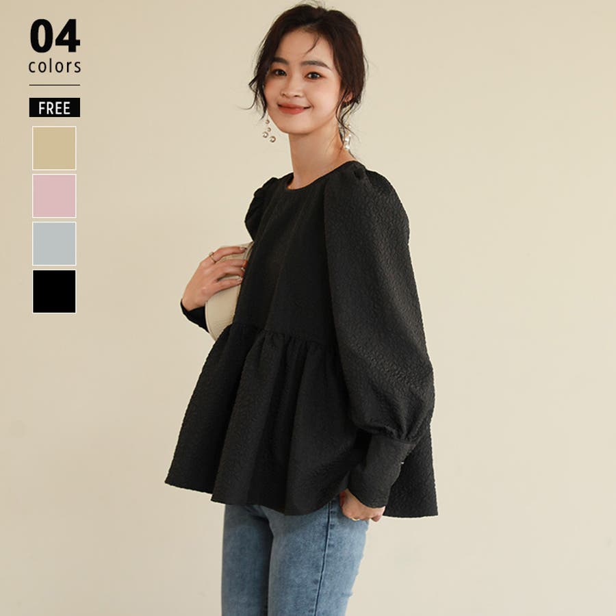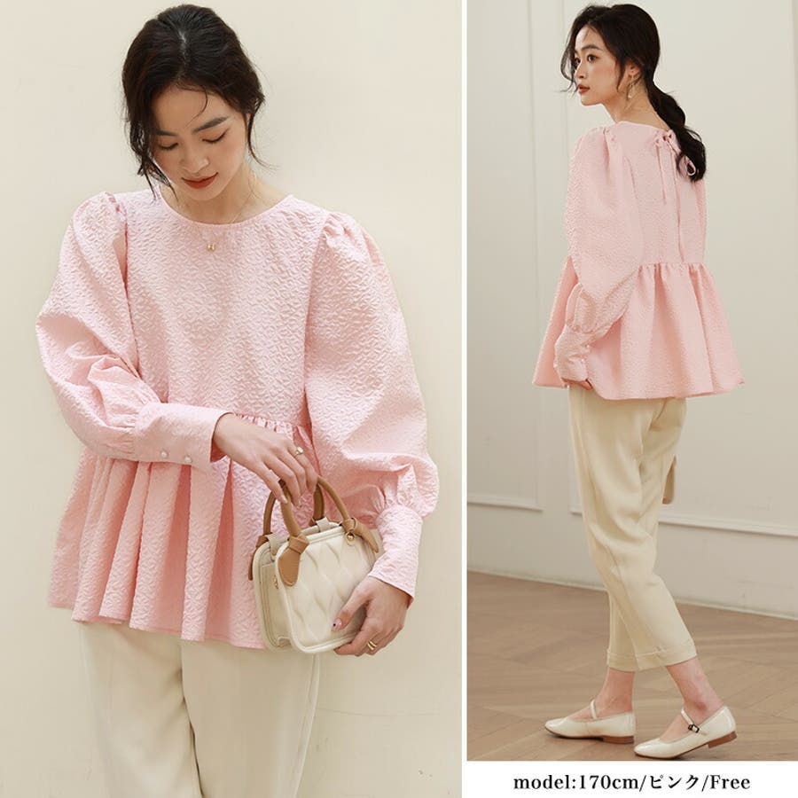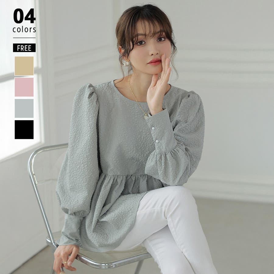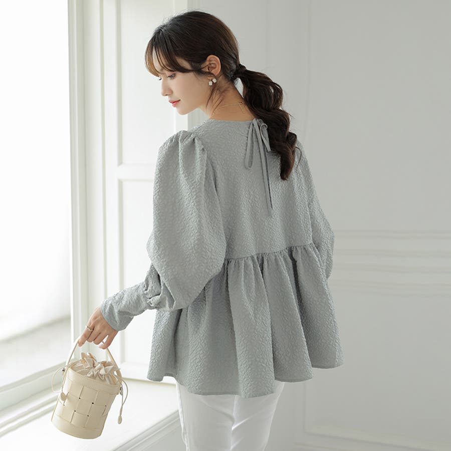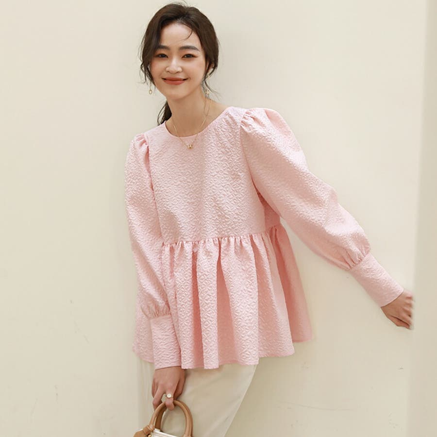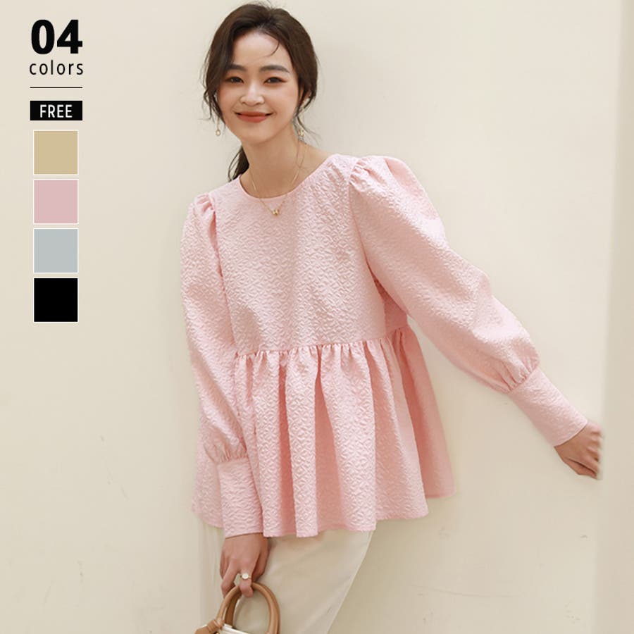 ブラウス ペプラム トップス tops レディース ジャガード ふくれ ふくれジャガード ジャガードブラウス エンボス加工 エンボス 長袖 ゆったり 体型カバー 1枚で決まる プリーツ ギャザー フリル フレア aライン 凹凸 パフスリーブ パフスリーブトップス ボリュームスリーブ ボリューム袖 バルーン袖 バルーンスリーブ ぽわん 袖 シンプル プルオーバー ラウンドネック クルーネック 丸襟 アイロン不要 ノーアイロン オフィス オフィスカジュアル オフィスブラウス フォーマル カジュアル フェミニン 華やか 上品 きれいめ 大人 かわいい 可愛い おしゃれ オシャレ 楽ちん 通勤 通学 入学式 入園式 卒園式 卒業式 ママコーデ ママ 母 肌色 桃色 灰 黒 春服 秋服 冬服 秋冬 春 秋 冬 韓国 韓国ファッション 20代 30代 40代 50代 cocomomo ココモモ
