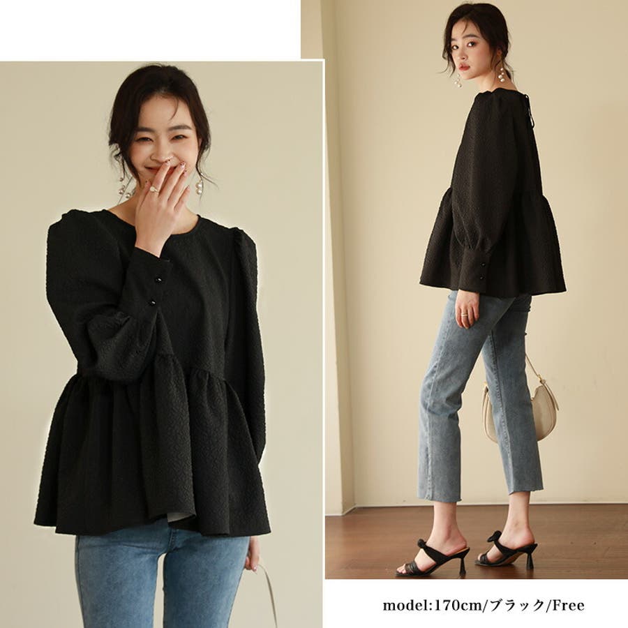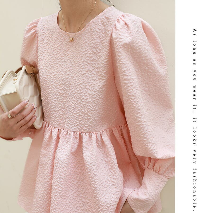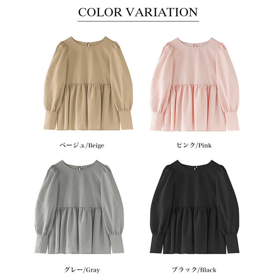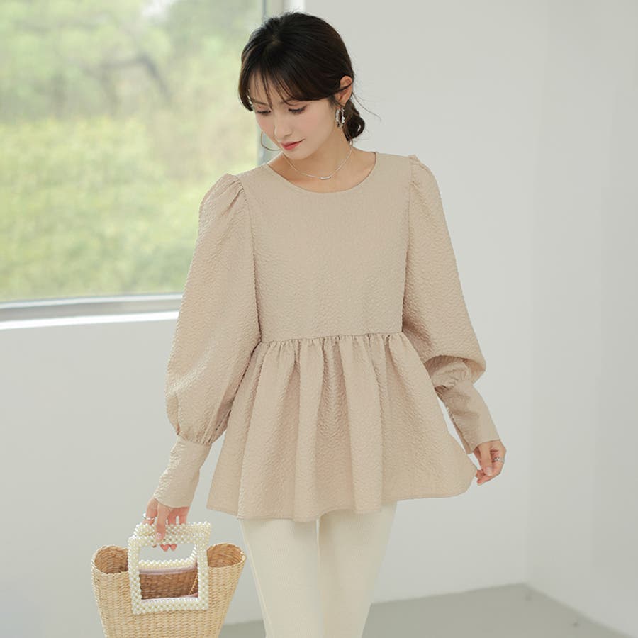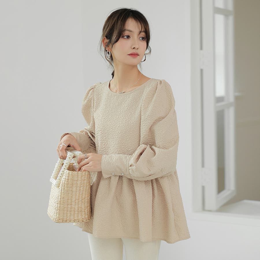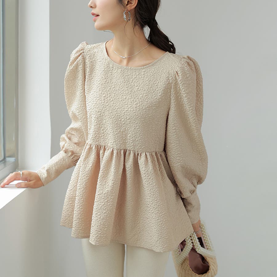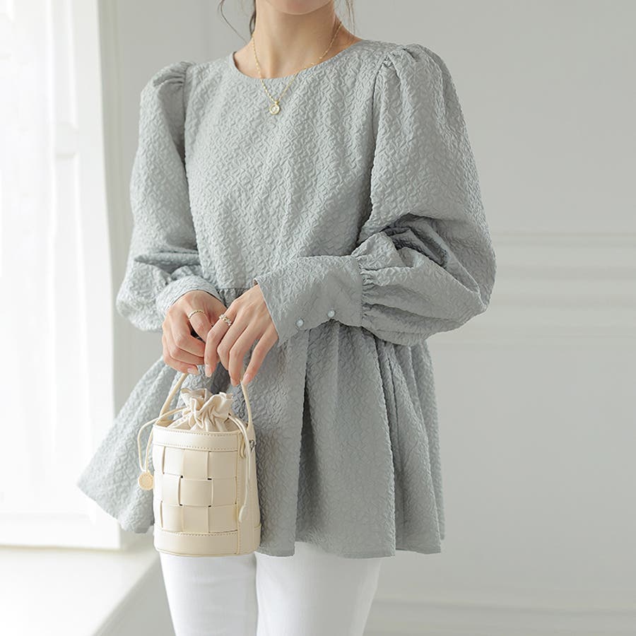 ブラウス ペプラム トップス tops レディース ジャガード ふくれ ふくれジャガード ジャガードブラウス エンボス加工 エンボス 長袖 ゆったり 体型カバー 1枚で決まる プリーツ ギャザー フリル フレア aライン 凹凸 パフスリーブ パフスリーブトップス ボリュームスリーブ ボリューム袖 バルーン袖 バルーンスリーブ ぽわん 袖 シンプル プルオーバー ラウンドネック クルーネック 丸襟 アイロン不要 ノーアイロン オフィス オフィスカジュアル オフィスブラウス フォーマル カジュアル フェミニン 華やか 上品 きれいめ 大人 かわいい 可愛い おしゃれ オシャレ 楽ちん 通勤 通学 入学式 入園式 卒園式 卒業式 ママコーデ ママ 母 肌色 桃色 灰 黒 春服 秋服 冬服 秋冬 春 秋 冬 韓国 韓国ファッション 20代 30代 40代 50代 cocomomo ココモモ
