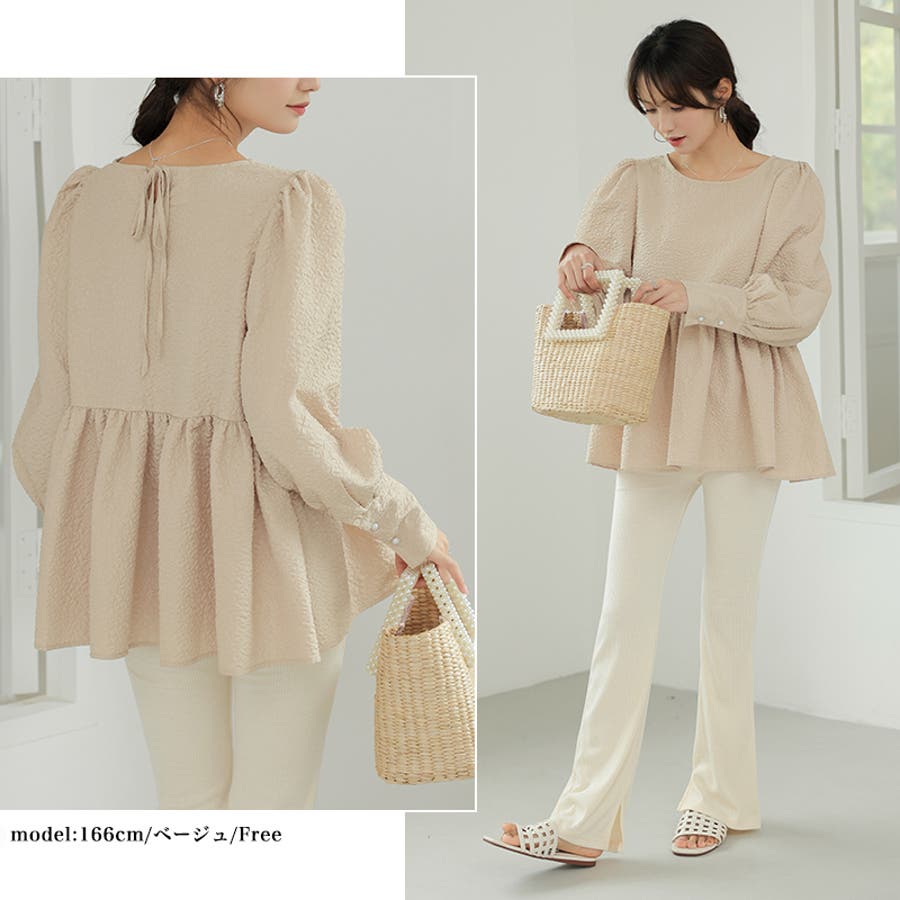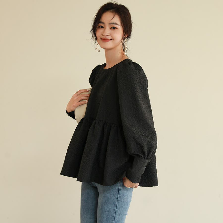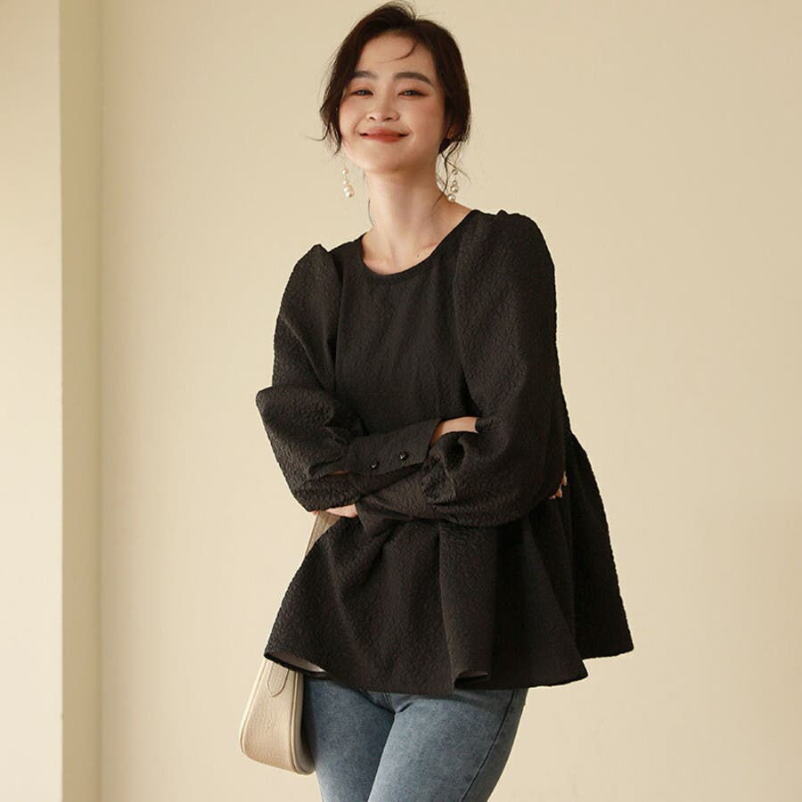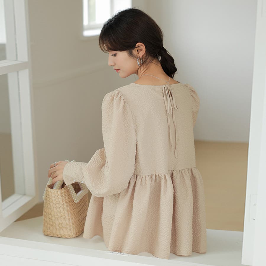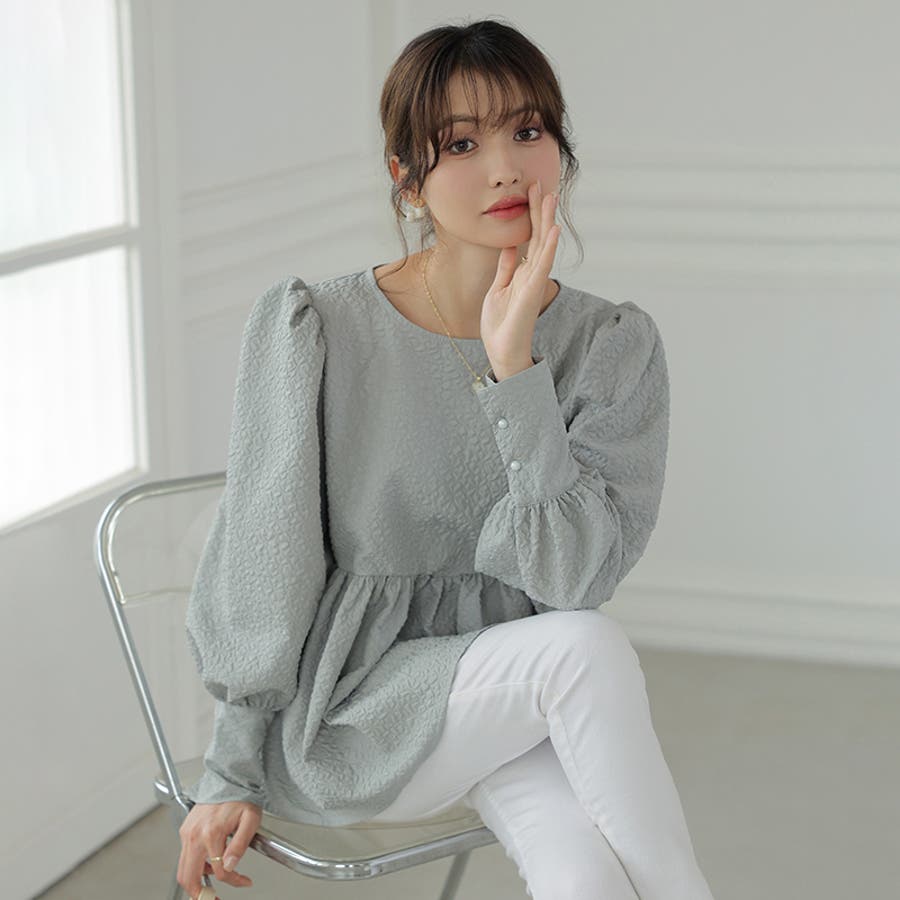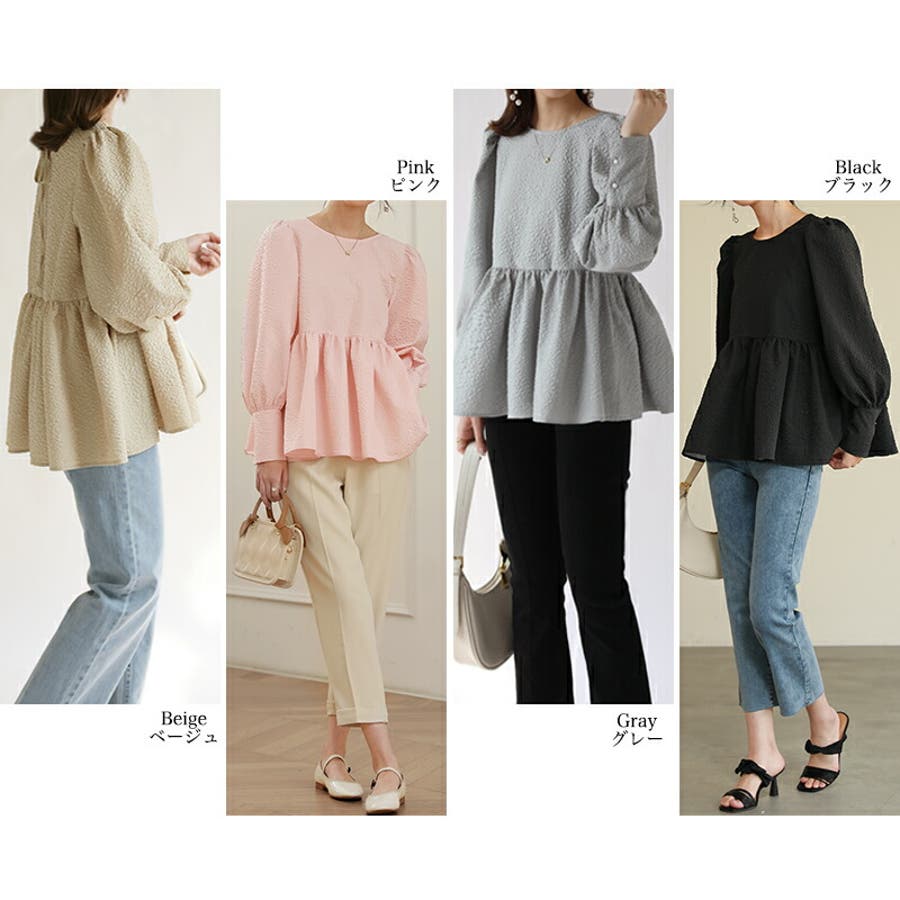 ブラウス ペプラム トップス tops レディース ジャガード ふくれ ふくれジャガード ジャガードブラウス エンボス加工 エンボス 長袖 ゆったり 体型カバー 1枚で決まる プリーツ ギャザー フリル フレア aライン 凹凸 パフスリーブ パフスリーブトップス ボリュームスリーブ ボリューム袖 バルーン袖 バルーンスリーブ ぽわん 袖 シンプル プルオーバー ラウンドネック クルーネック 丸襟 アイロン不要 ノーアイロン オフィス オフィスカジュアル オフィスブラウス フォーマル カジュアル フェミニン 華やか 上品 きれいめ 大人 かわいい 可愛い おしゃれ オシャレ 楽ちん 通勤 通学 入学式 入園式 卒園式 卒業式 ママコーデ ママ 母 肌色 桃色 灰 黒 春服 秋服 冬服 秋冬 春 秋 冬 韓国 韓国ファッション 20代 30代 40代 50代 cocomomo ココモモ