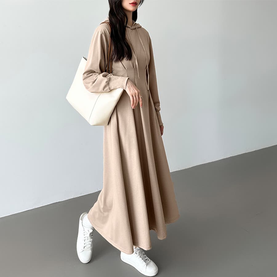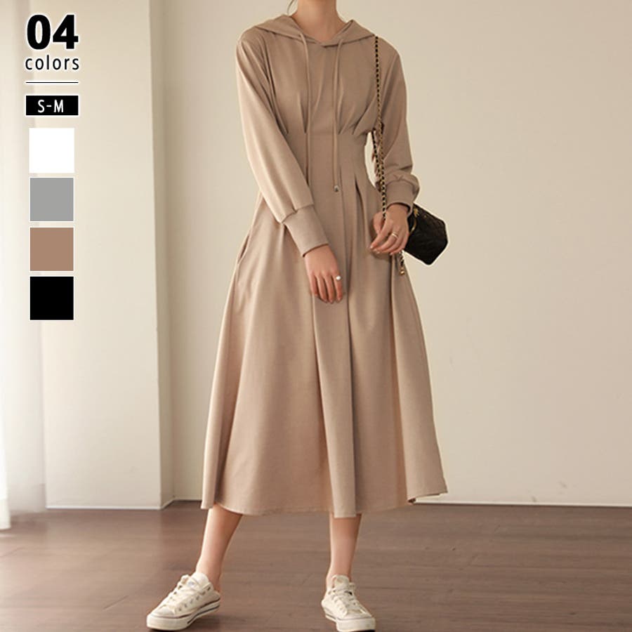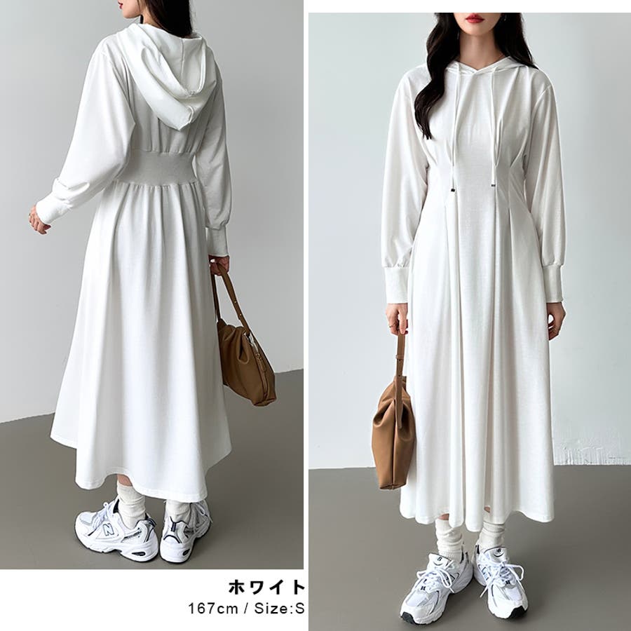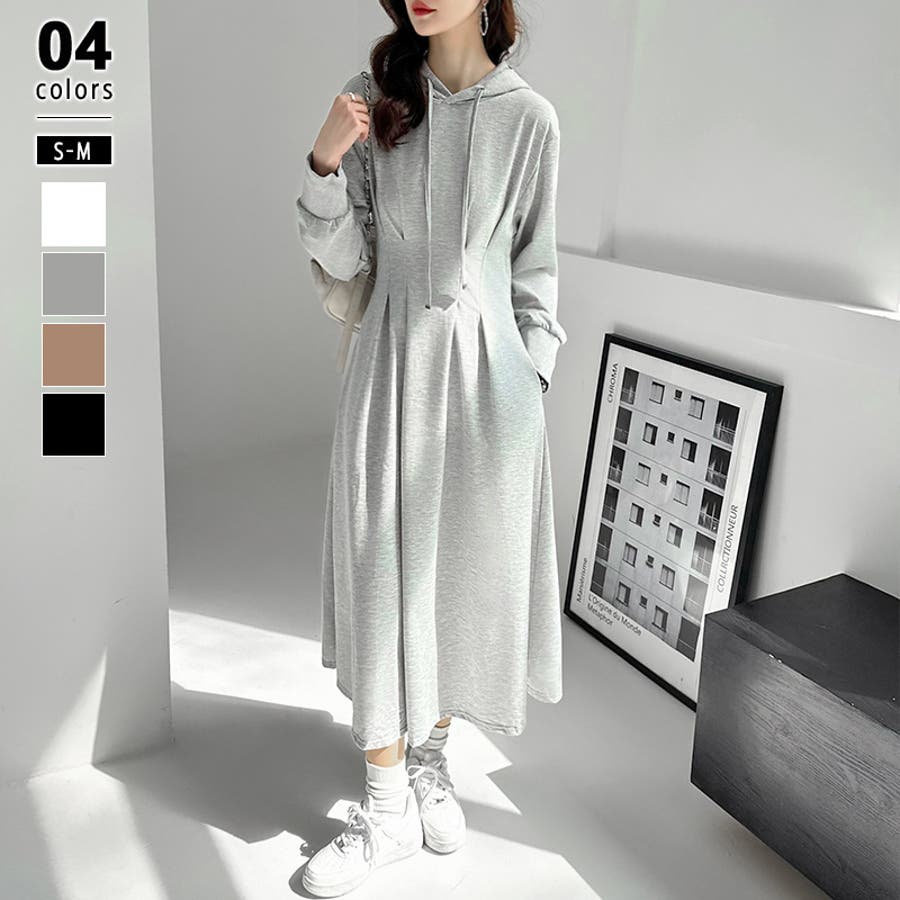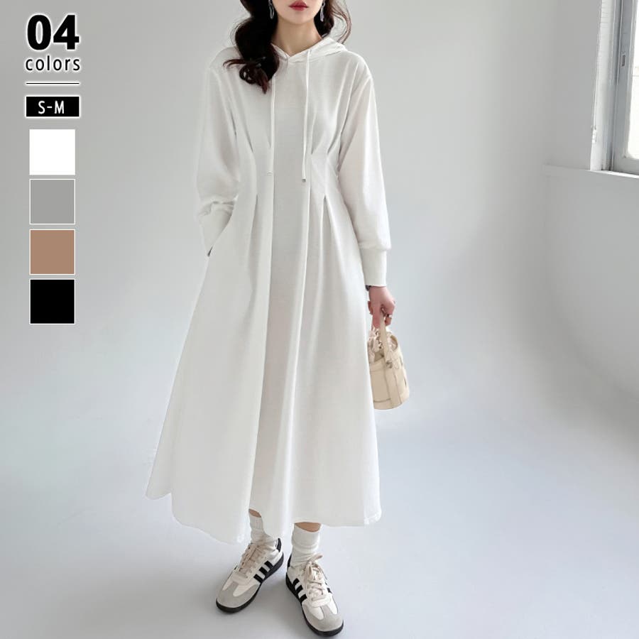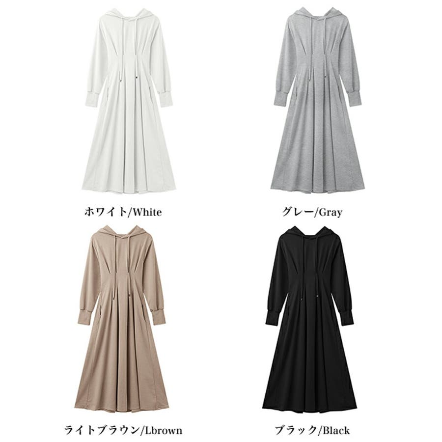 パーカーワンピース スウェットワンピース ウエストシェイプ ワンピース パーカー レディース ウエストタック ウエストタックワンピース ウエストタックゴム ウエストゴム ウエストシェイプ シェイプ ロングワンピース フード付き フード付きパーカー ポケット付き ゆったり 大きいサイズレディース 大きいサイズ 体型カバー マキシ ロング ロング丈 袖あり 長袖 ハイウエスト aライン フレア 細見え 着痩せ 楽ちんワンピース 部屋着 リラックス シンプル 無地 カジュアル ナチュラル 上品 大人 きれいめ かわいい 可愛い 大人可愛い 楽ちん らくちん プチプラ 母 ママ S M サイズ 白 灰 茶 黒 春服 秋服 春 秋 韓国 韓国ファッション 20代 30代 40代 50代 cocomomo ココモモ