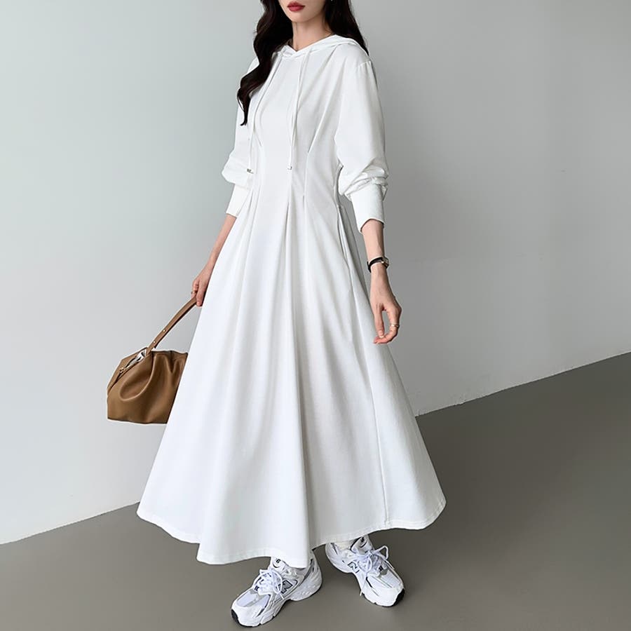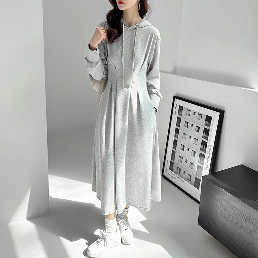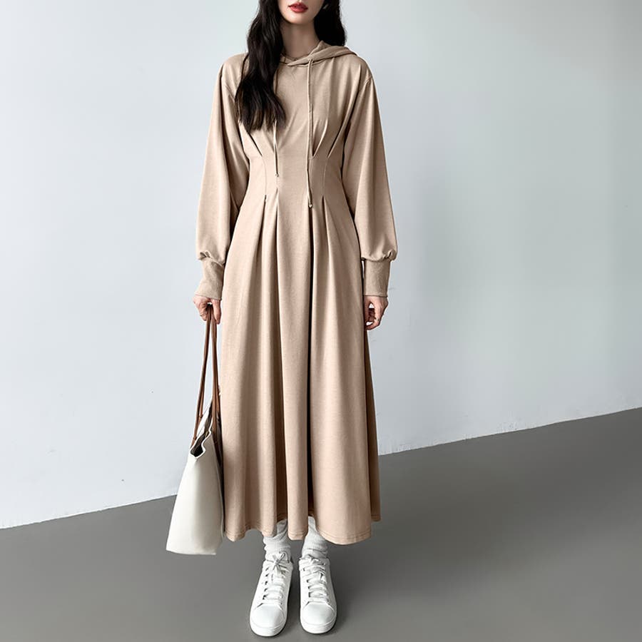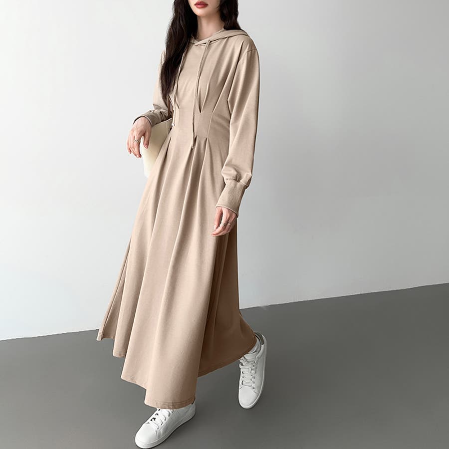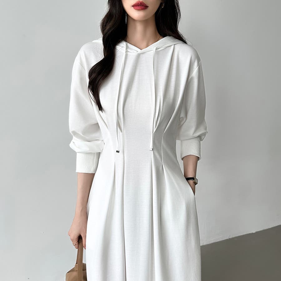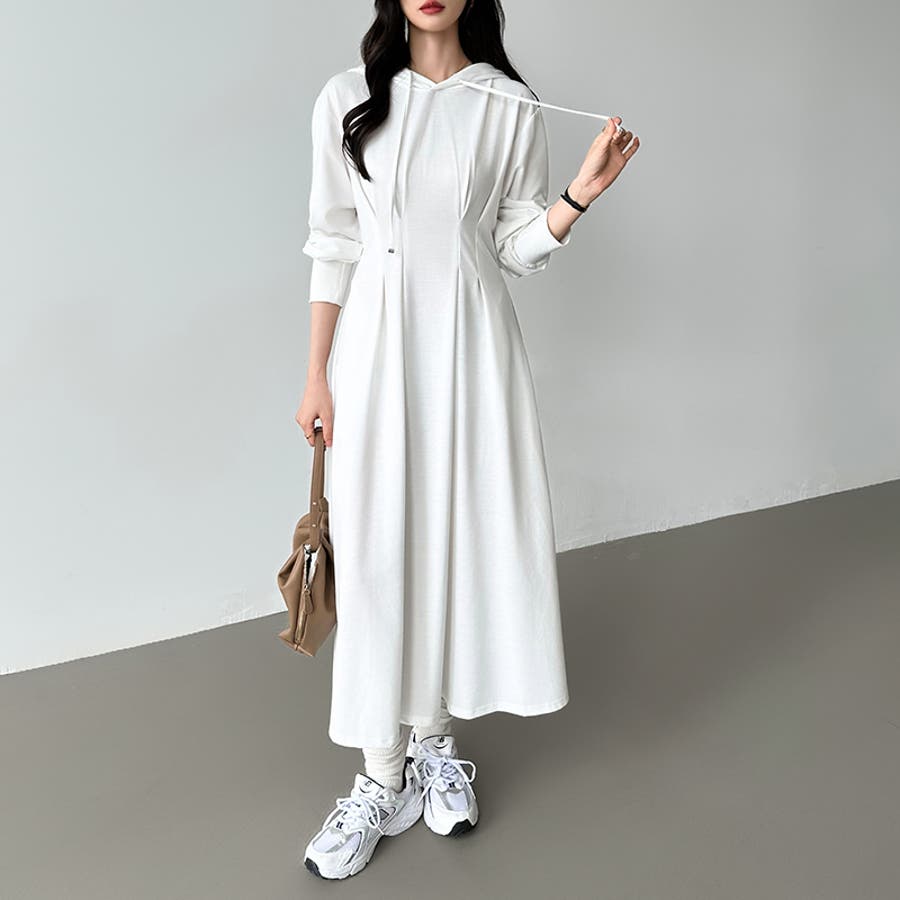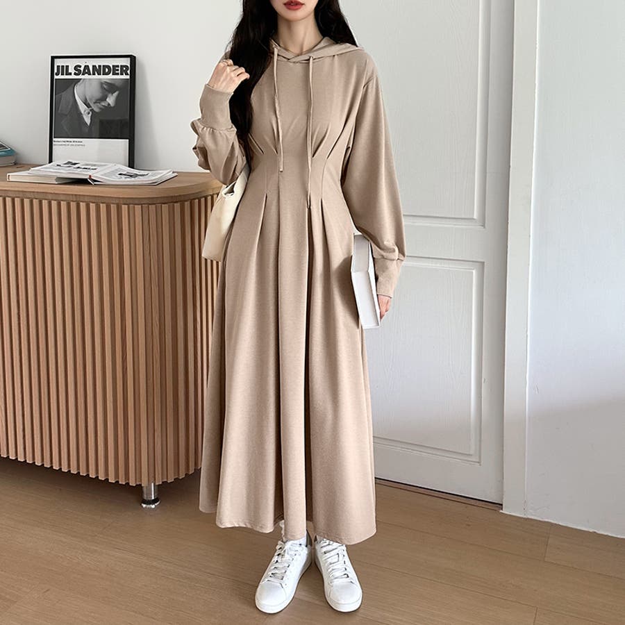 パーカーワンピース スウェットワンピース ウエストシェイプ ワンピース パーカー レディース ウエストタック ウエストタックワンピース ウエストタックゴム ウエストゴム ウエストシェイプ シェイプ ロングワンピース フード付き フード付きパーカー ポケット付き ゆったり 大きいサイズレディース 大きいサイズ 体型カバー マキシ ロング ロング丈 袖あり 長袖 ハイウエスト aライン フレア 細見え 着痩せ 楽ちんワンピース 部屋着 リラックス シンプル 無地 カジュアル ナチュラル 上品 大人 きれいめ かわいい 可愛い 大人可愛い 楽ちん らくちん プチプラ 母 ママ S M サイズ 白 灰 茶 黒 春服 秋服 春 秋 韓国 韓国ファッション 20代 30代 40代 50代 cocomomo ココモモ